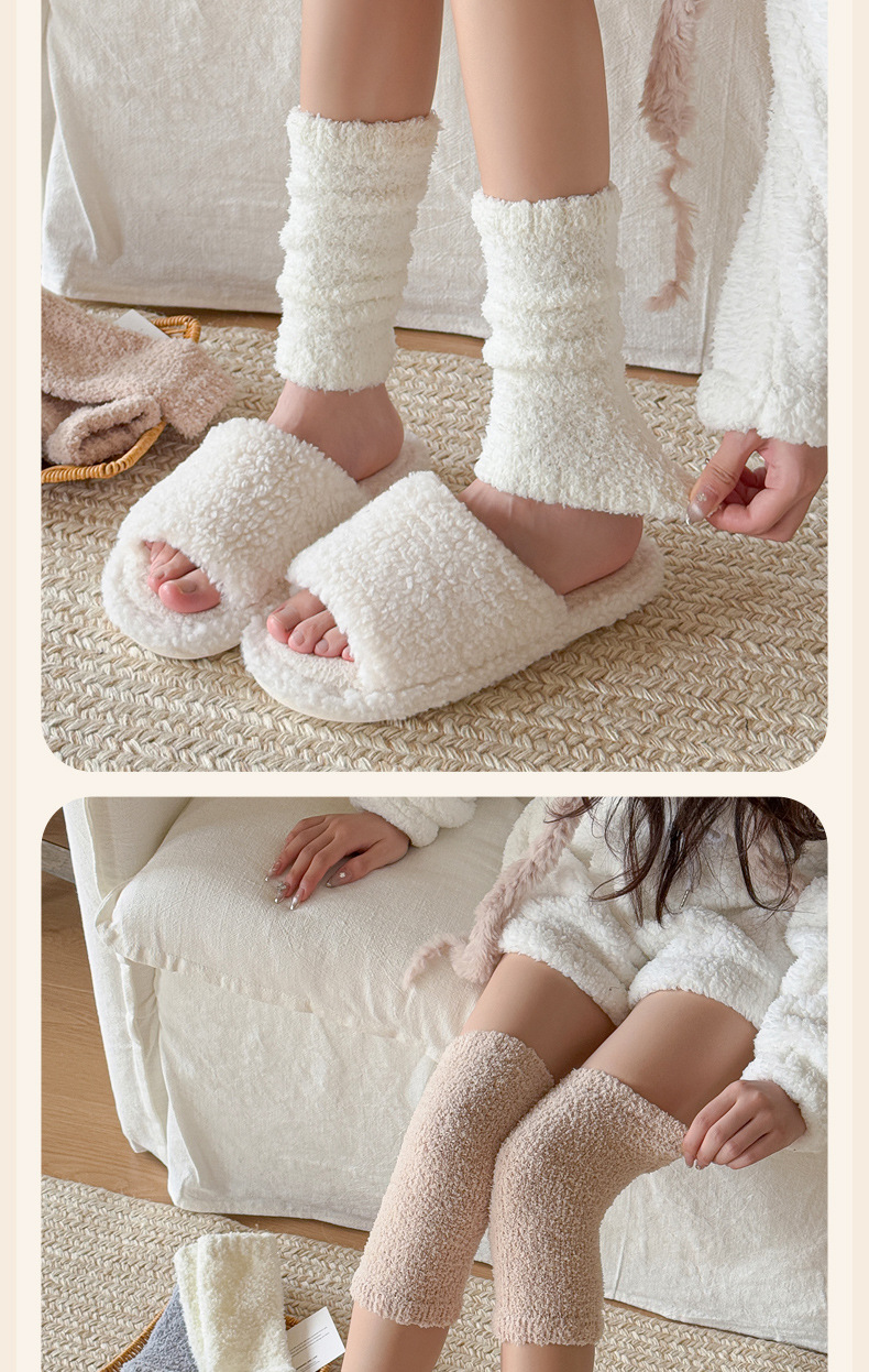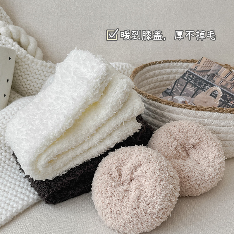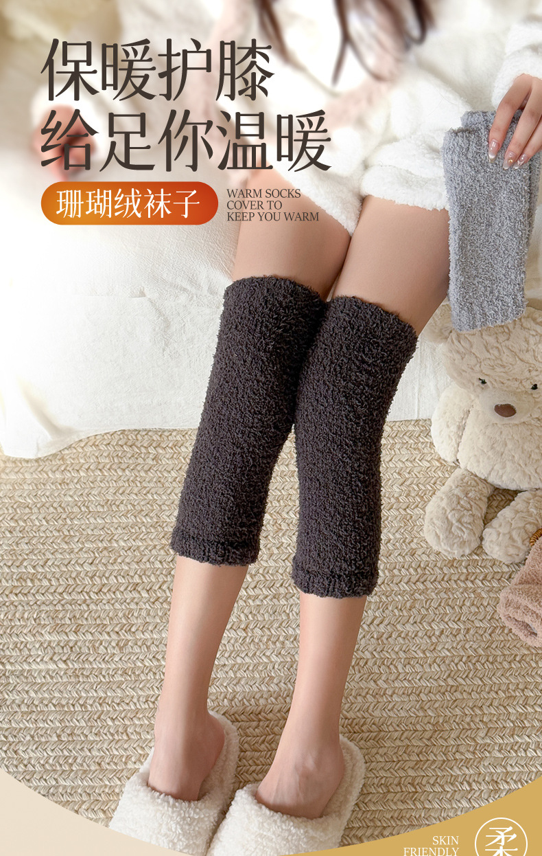 保暖护膝冬季加厚珊瑚绒袜子女老寒腿护膝盖袜套不掉毛抗寒睡眠袜