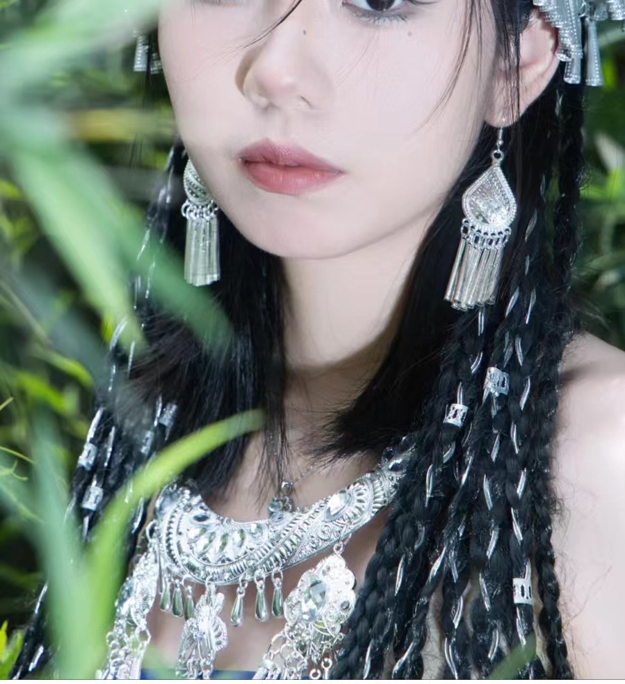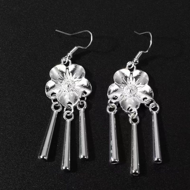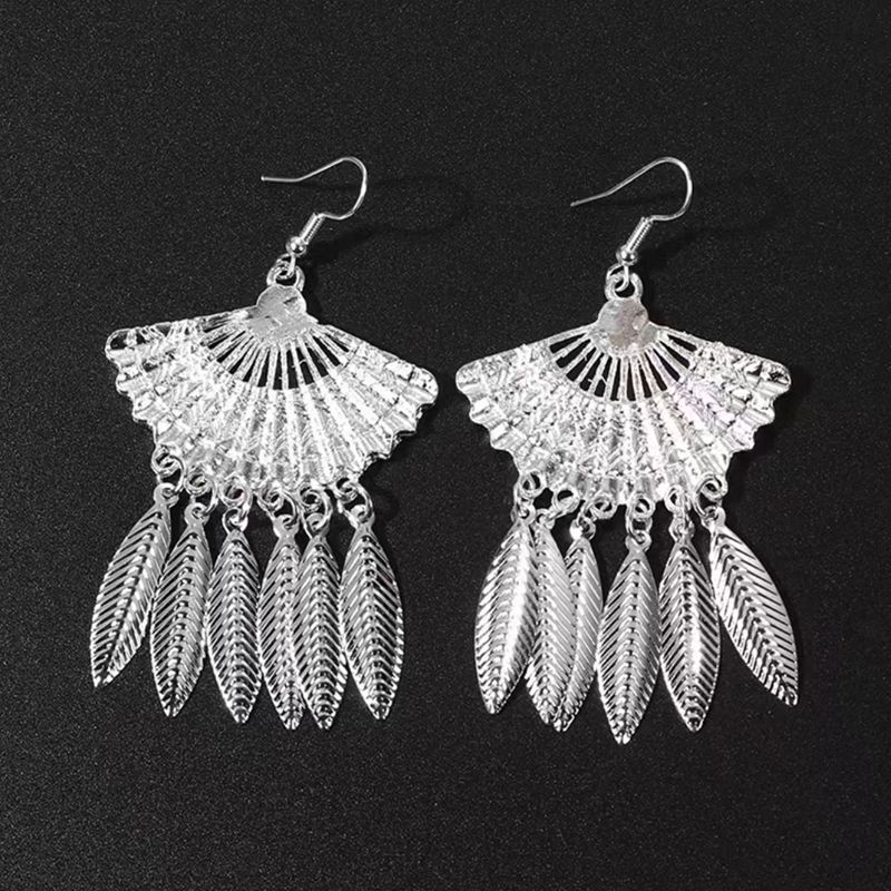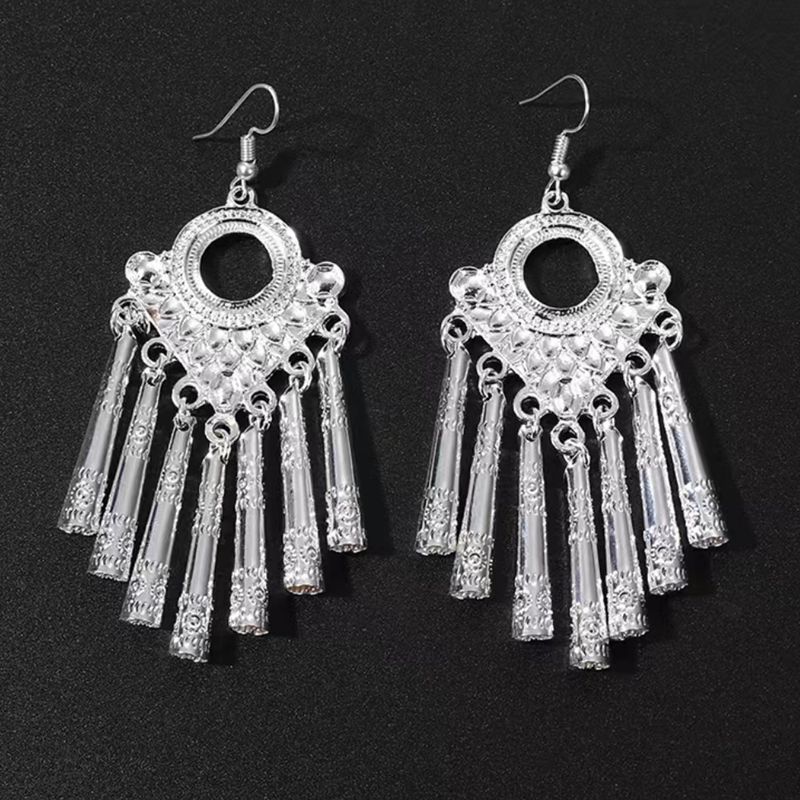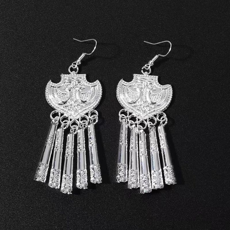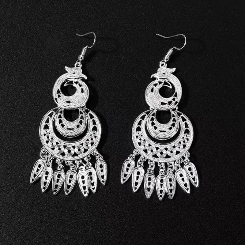 仿苗银耳环少数民族风孔雀铃铛流苏耳坠镂空树叶耳饰国风苗寨配饰