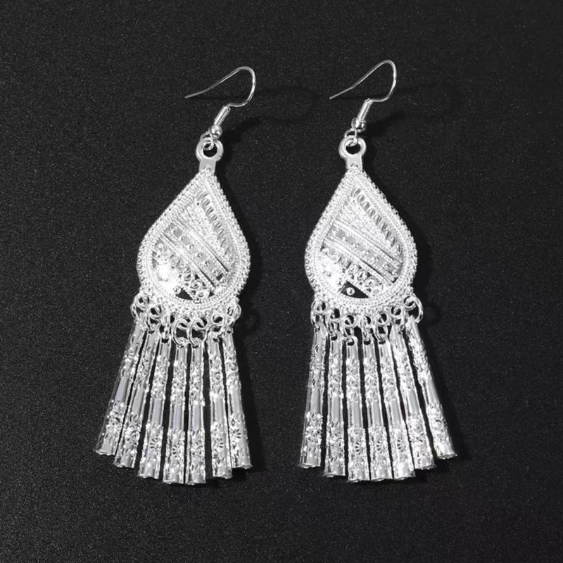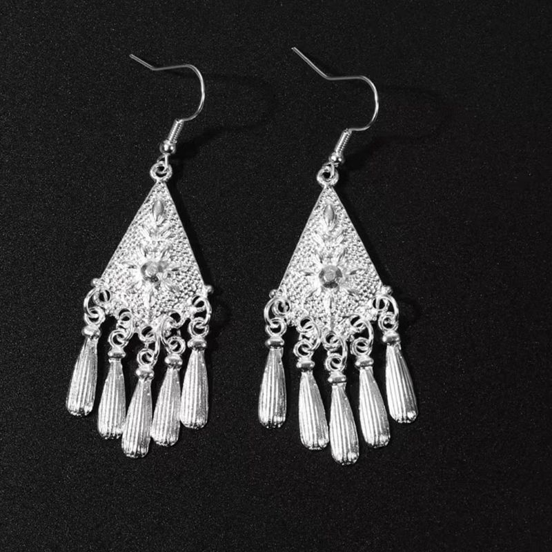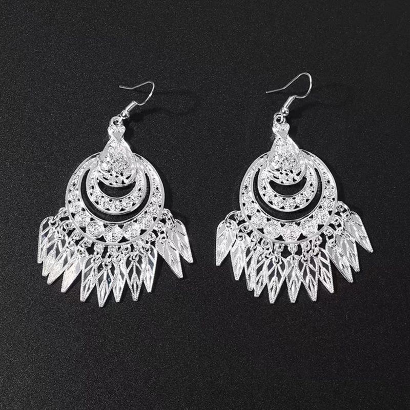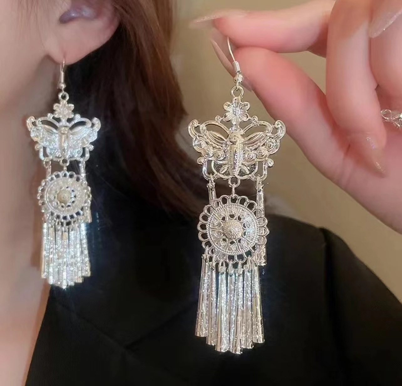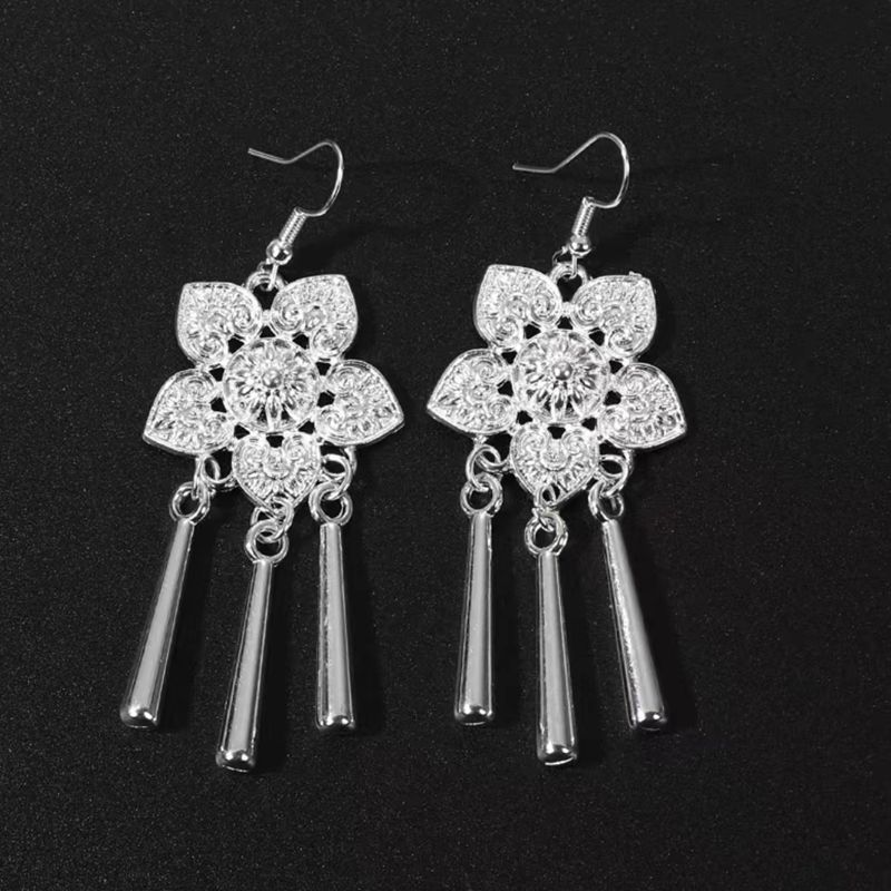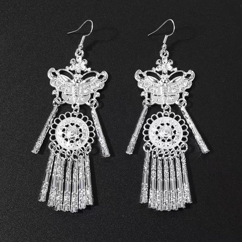 仿苗银耳环少数民族风孔雀铃铛流苏耳坠镂空树叶耳饰国风苗寨配饰
