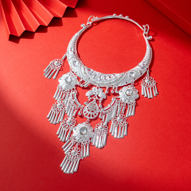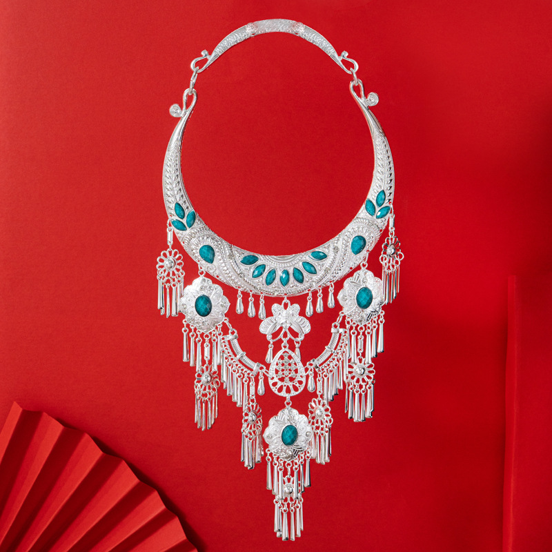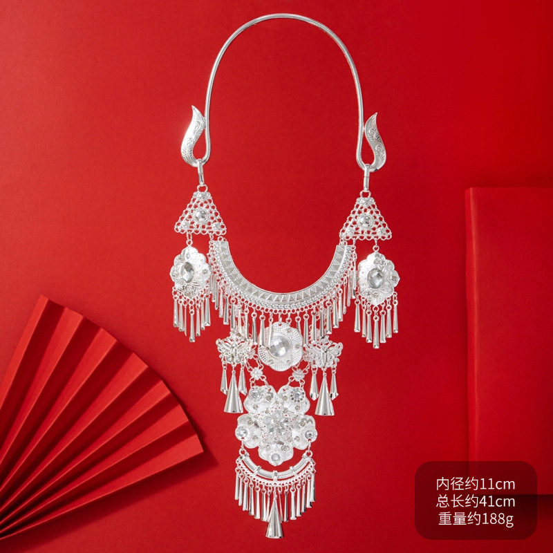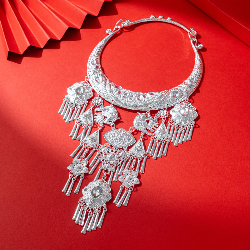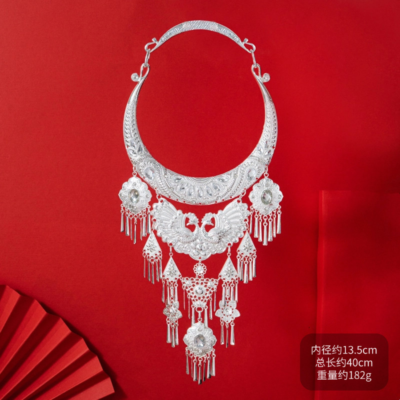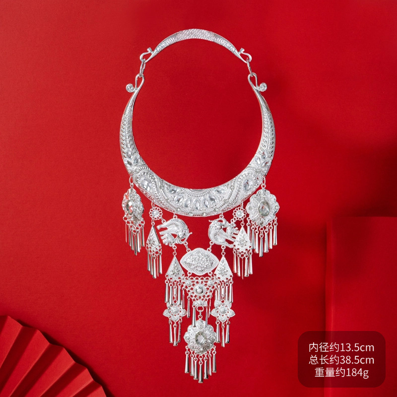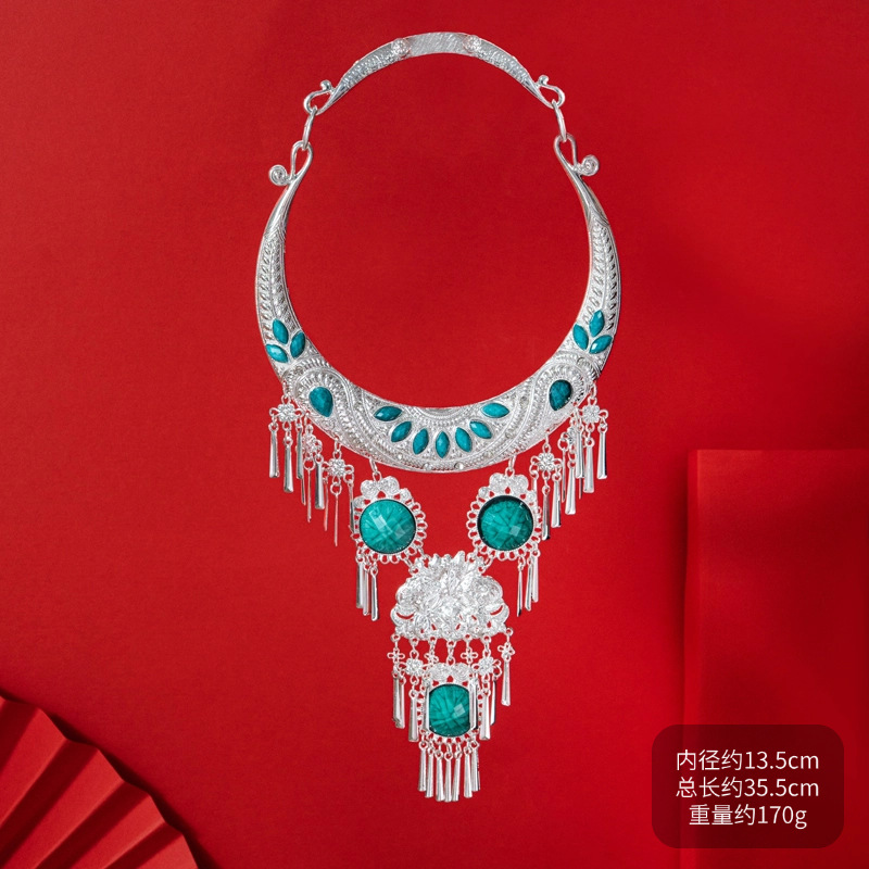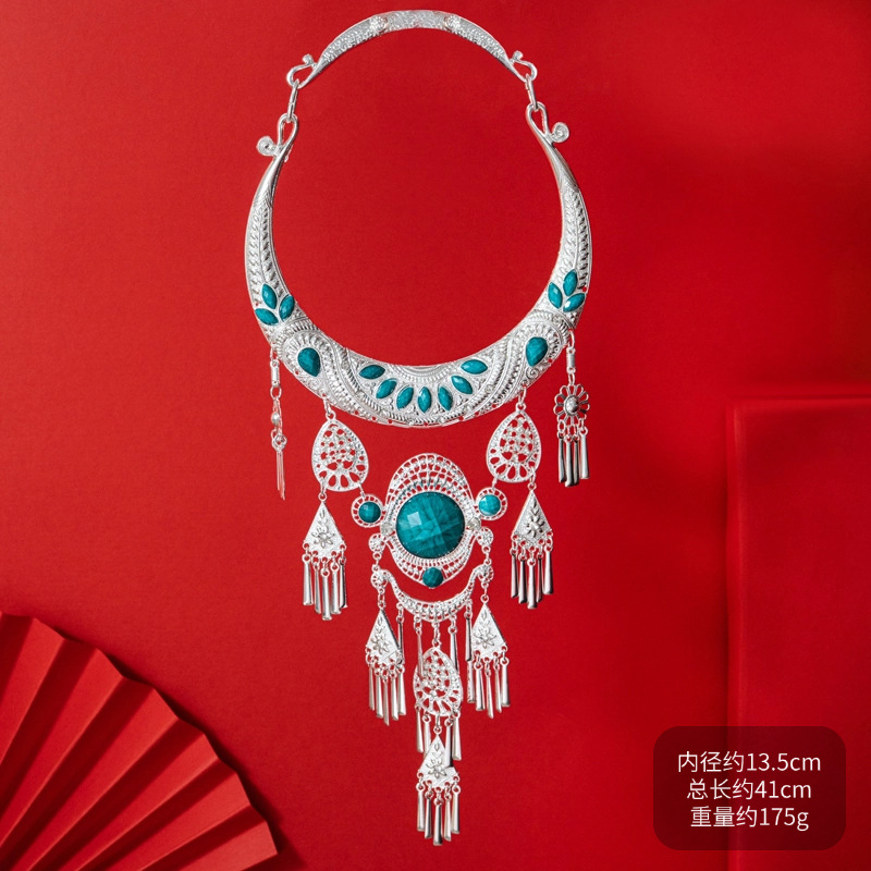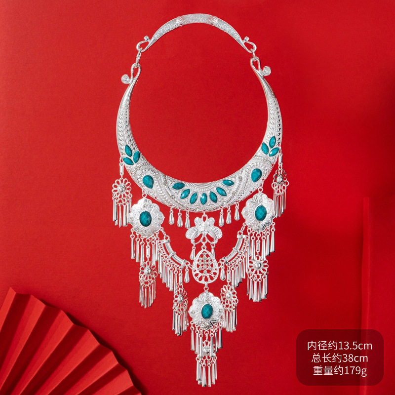 苗族大项圈银饰项链少数民族风苗银长款流苏贵州侗族舞蹈演出配饰