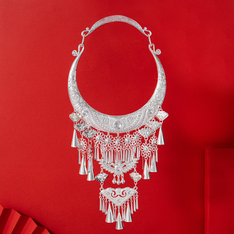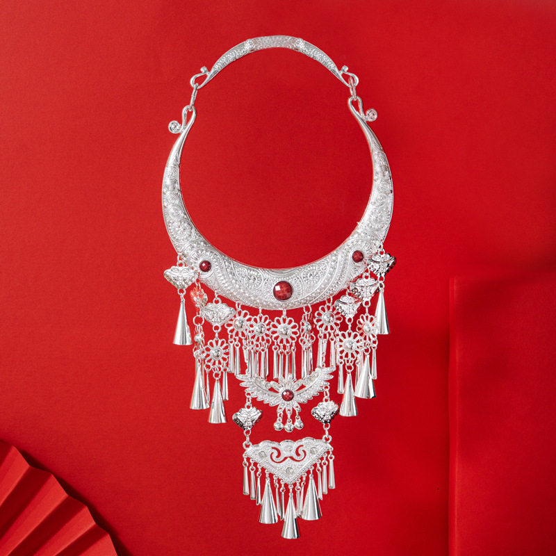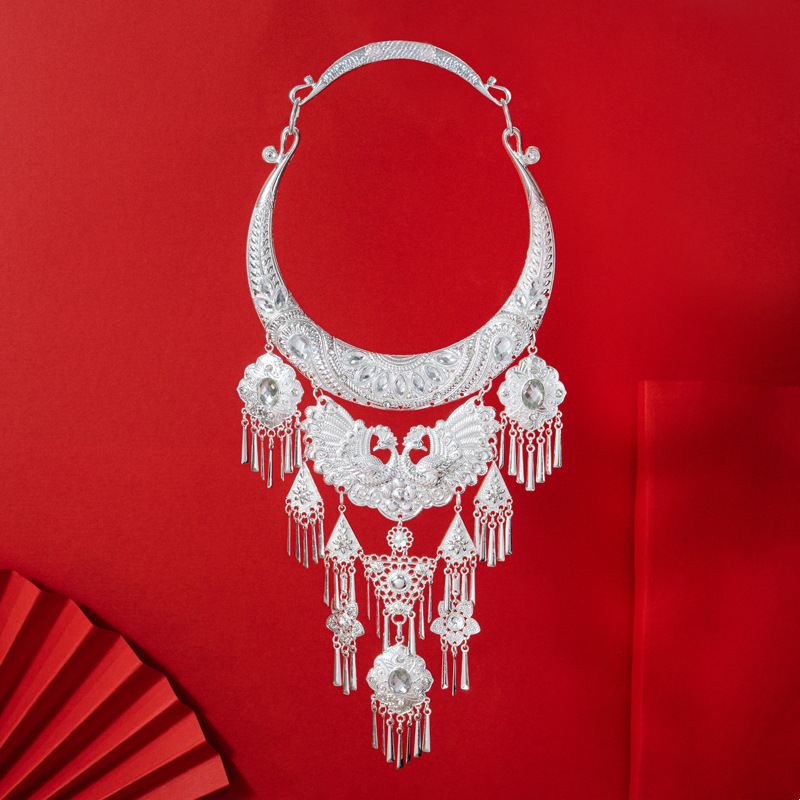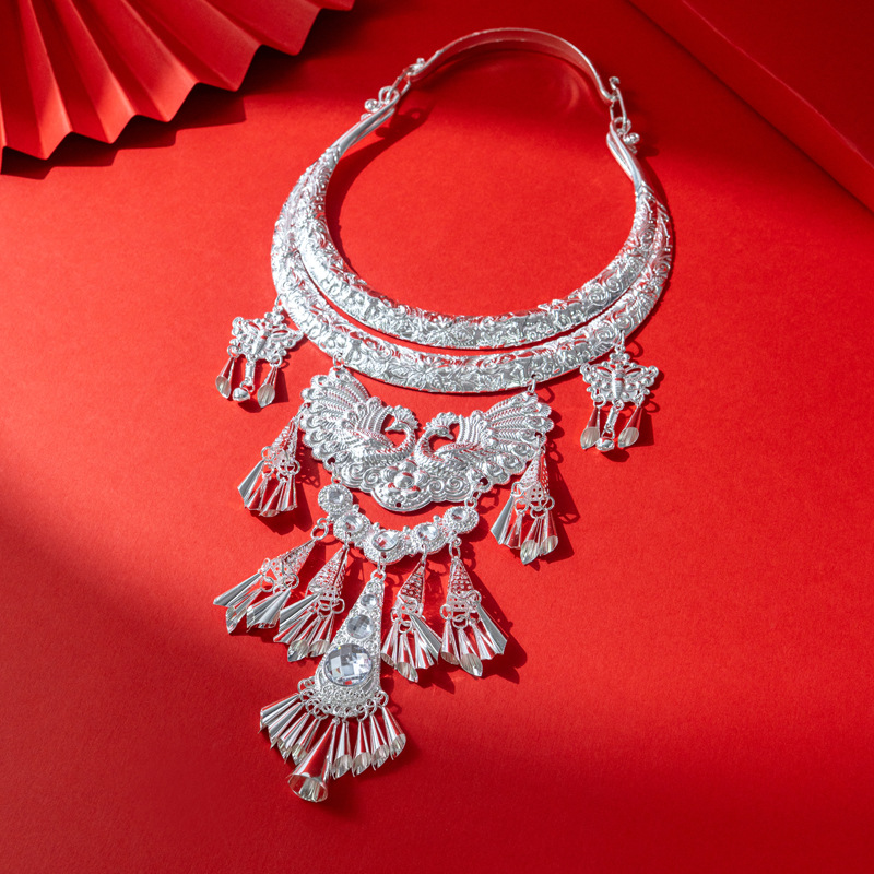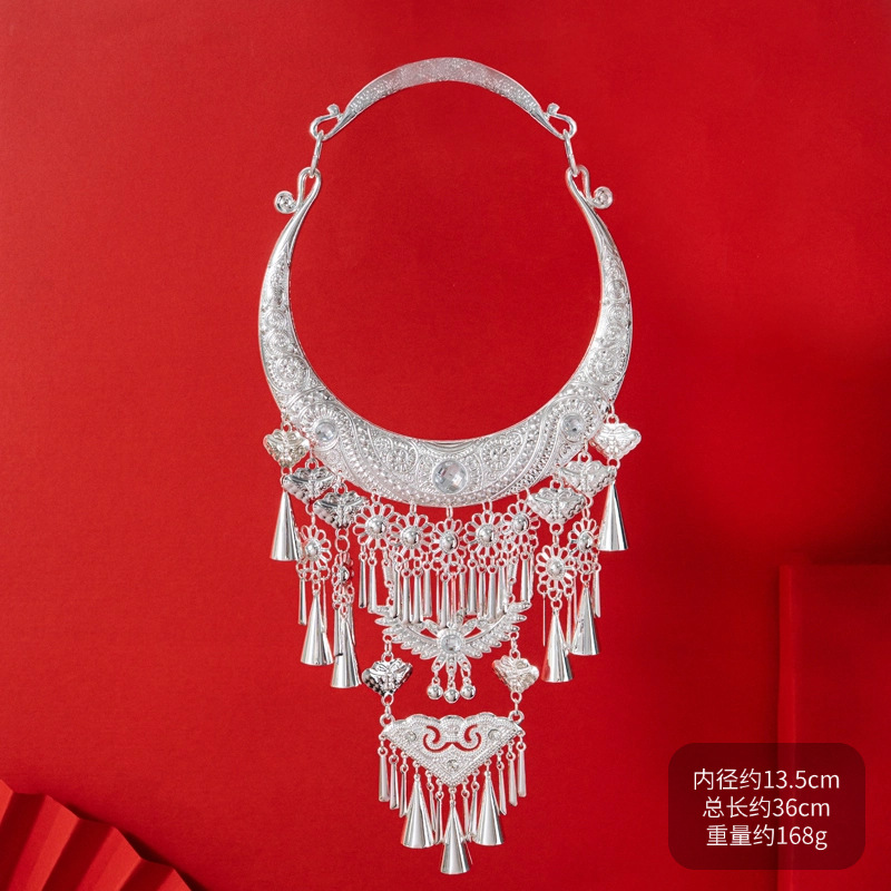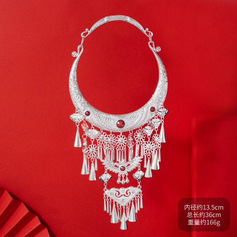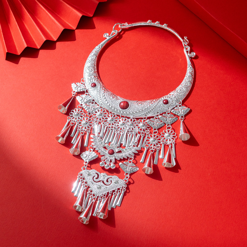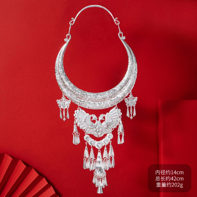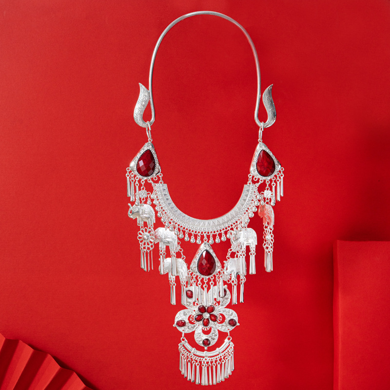 苗族大项圈银饰项链少数民族风苗银长款流苏贵州侗族舞蹈演出配饰