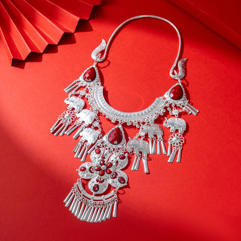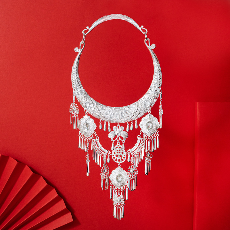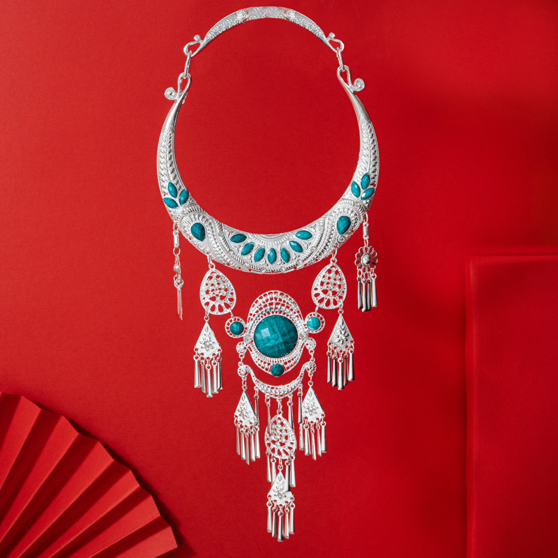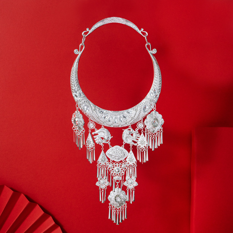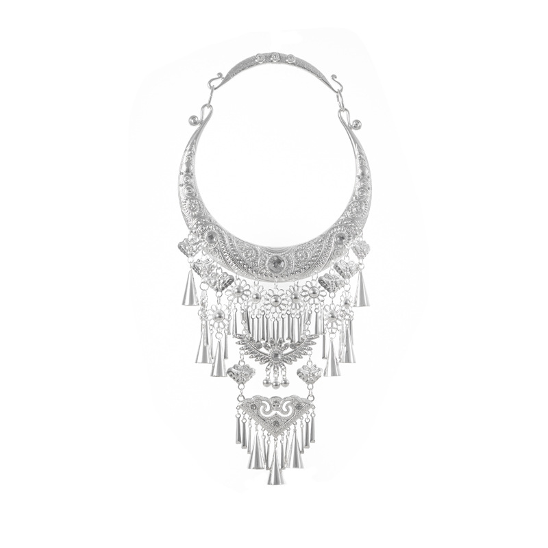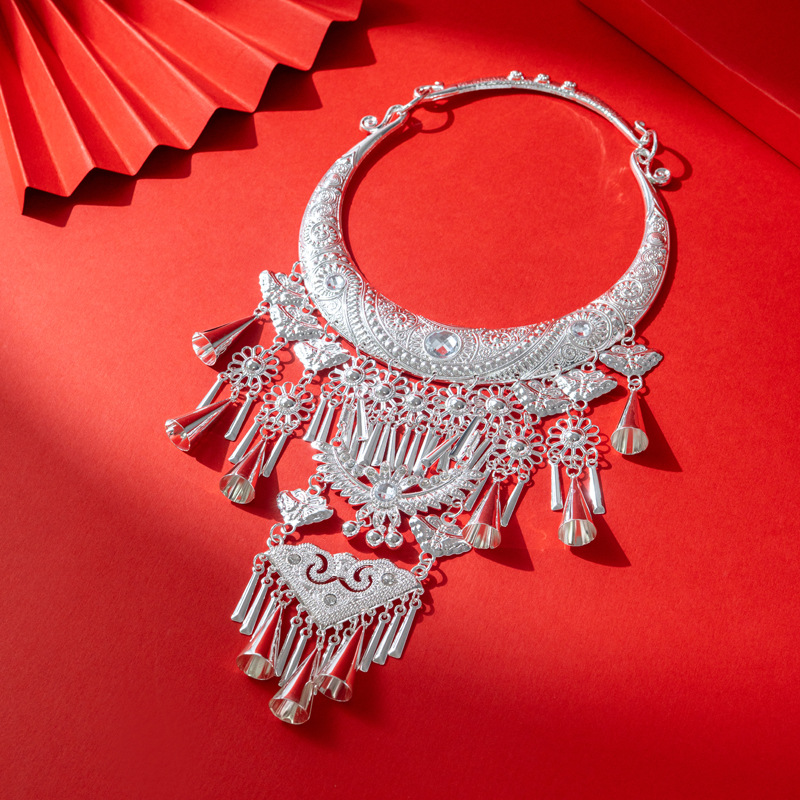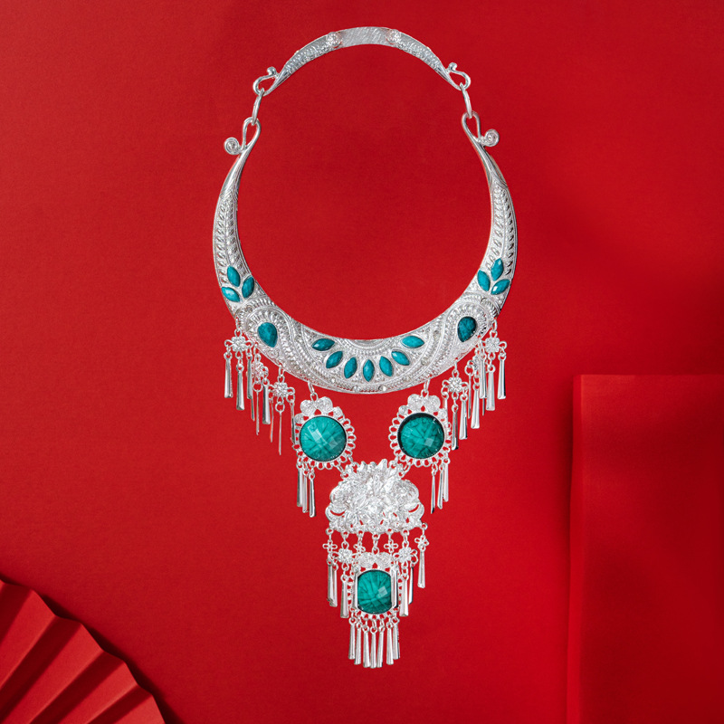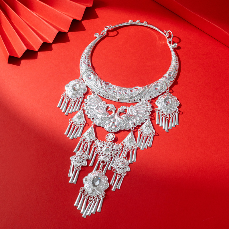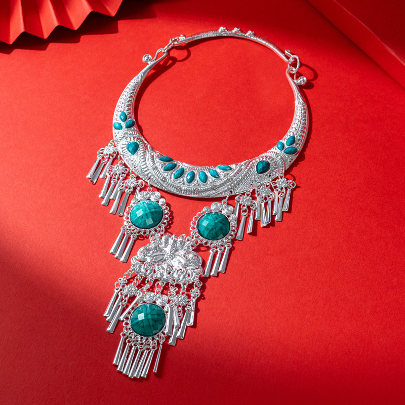 苗族大项圈银饰项链少数民族风苗银长款流苏贵州侗族舞蹈演出配饰