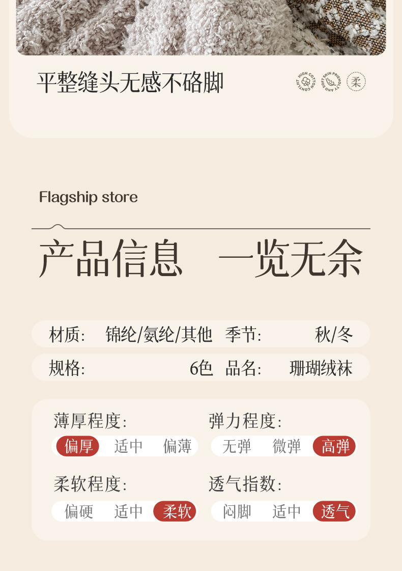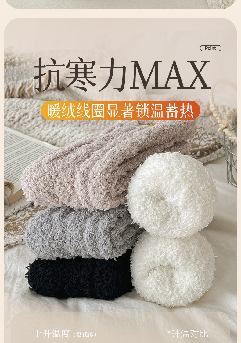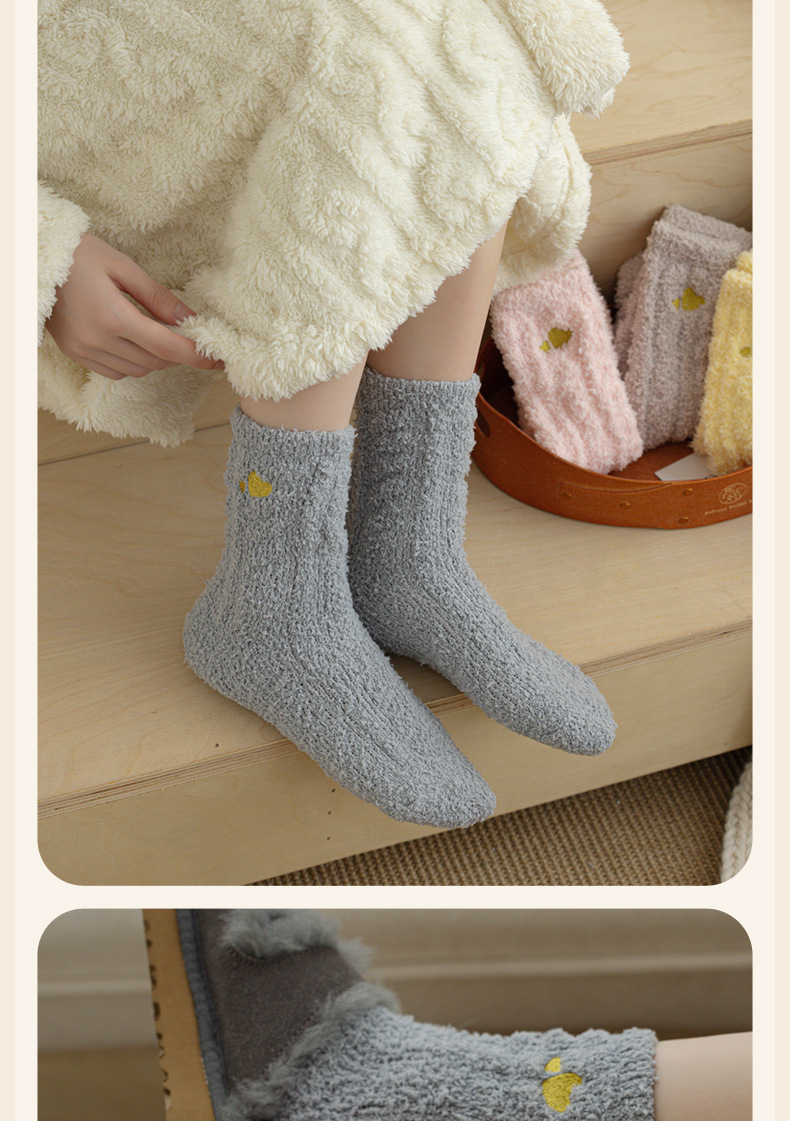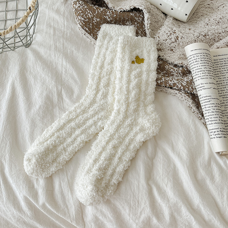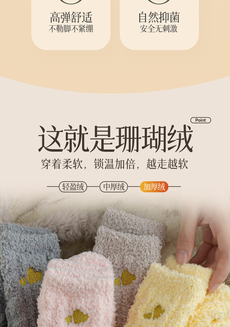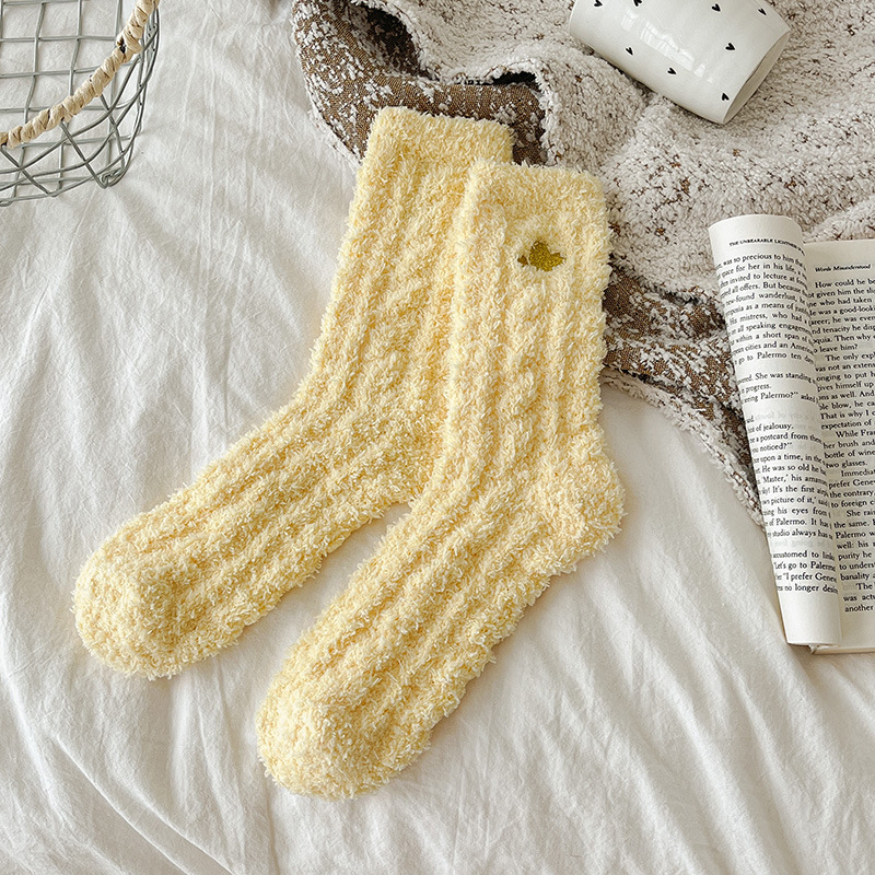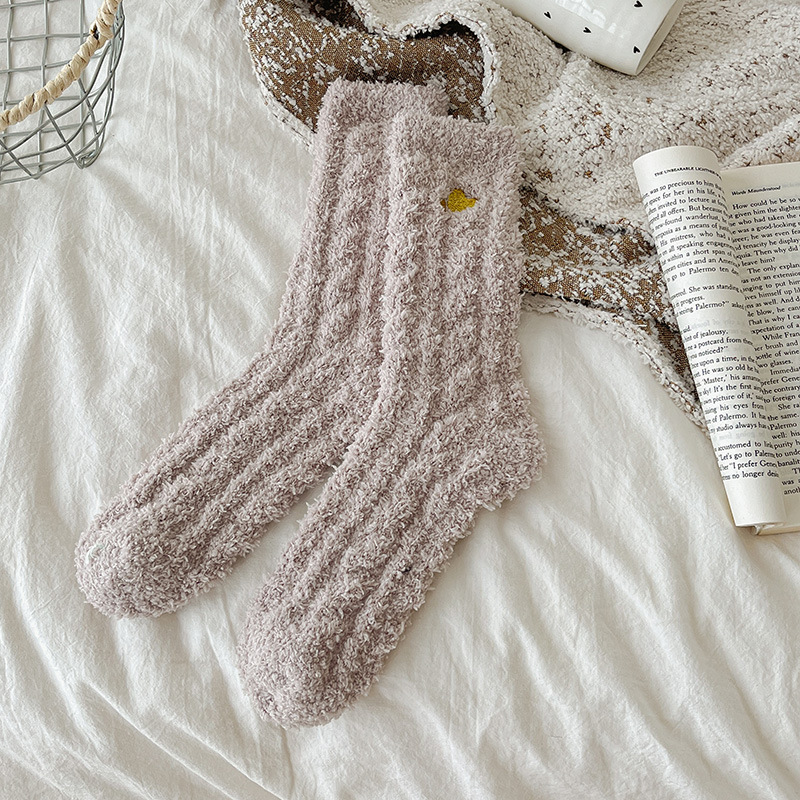 珊瑚绒袜子女甜美爱心刺绣中筒袜冬季加厚保暖袜子不掉毛睡眠袜女
