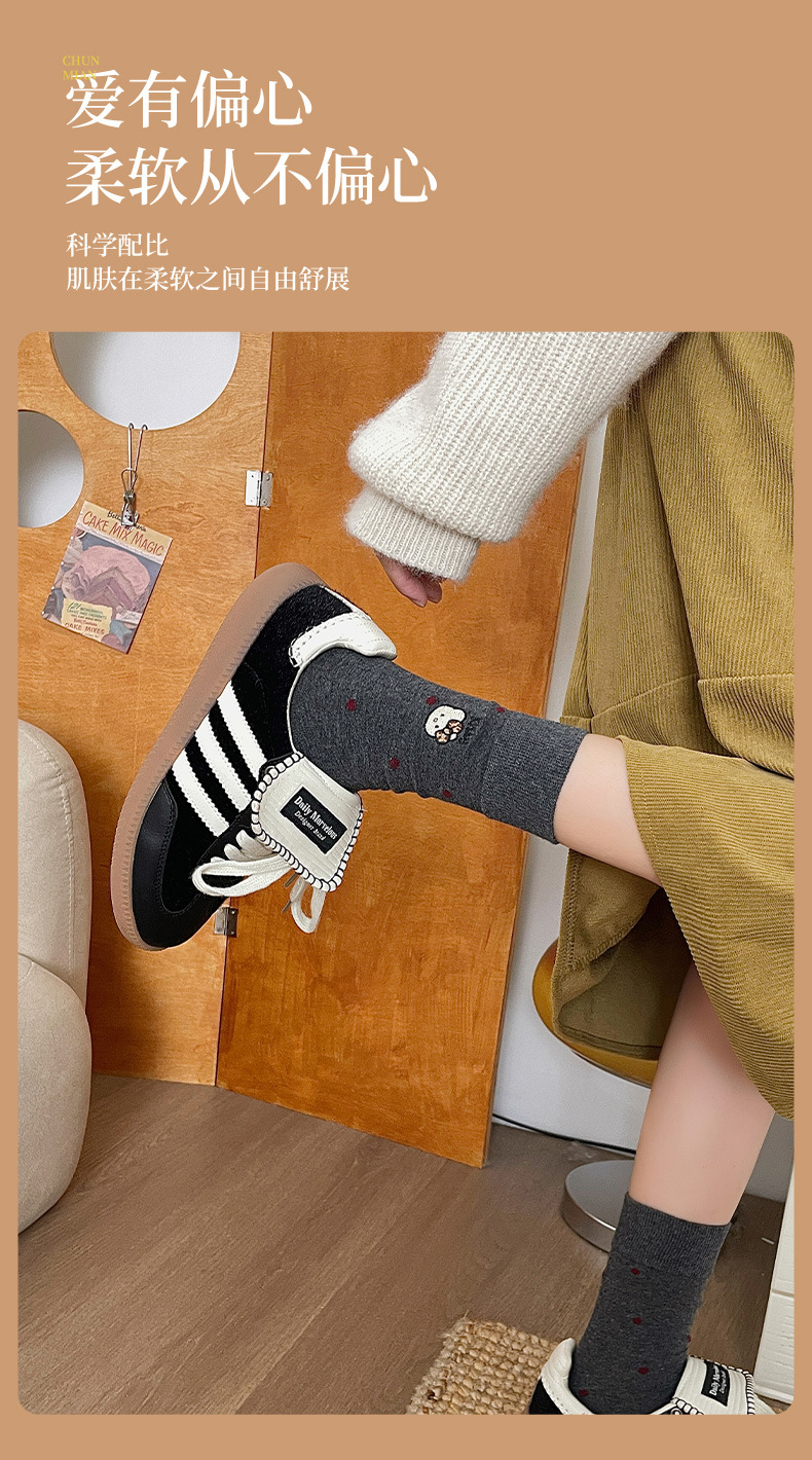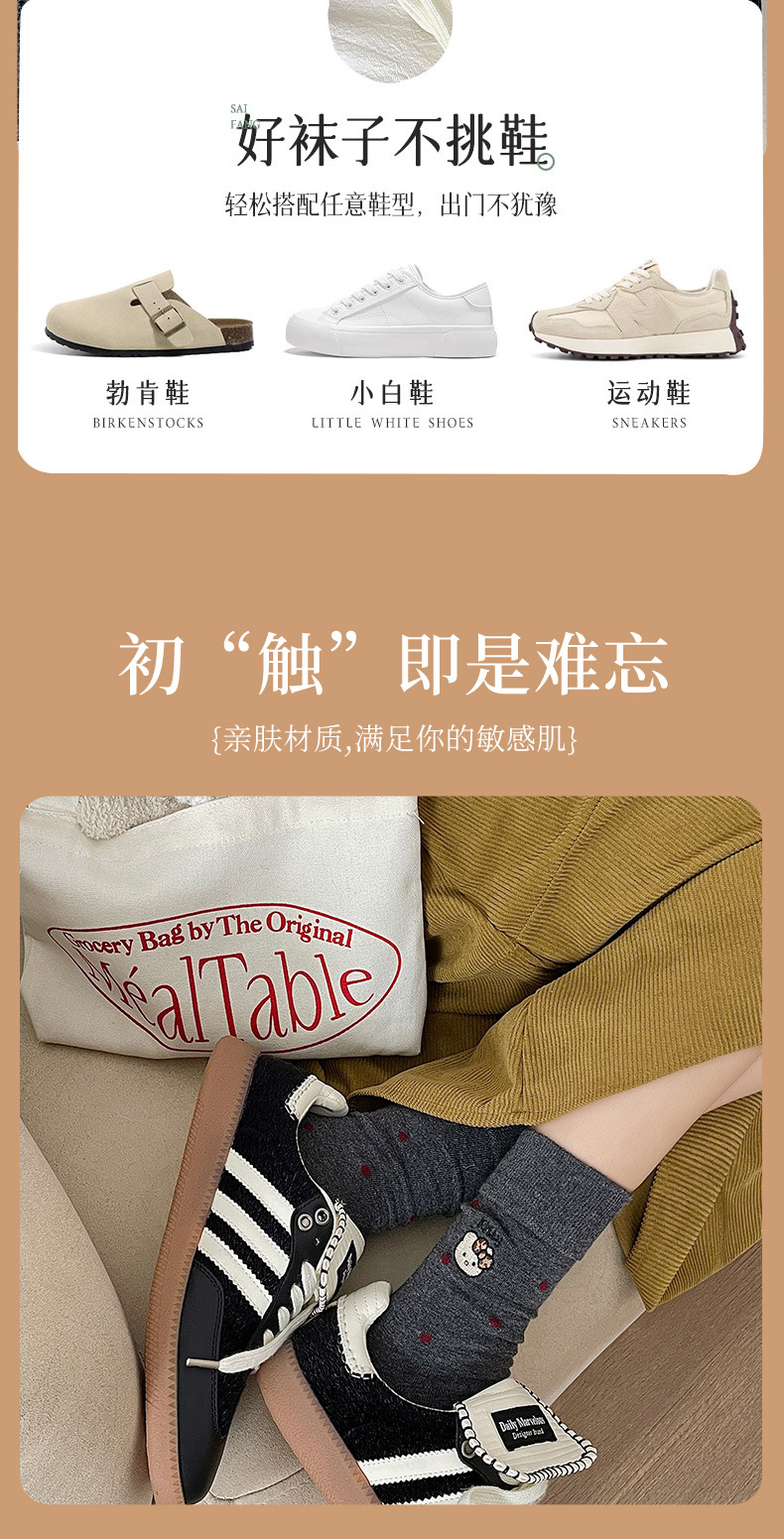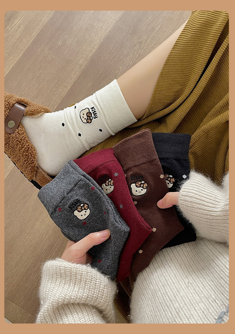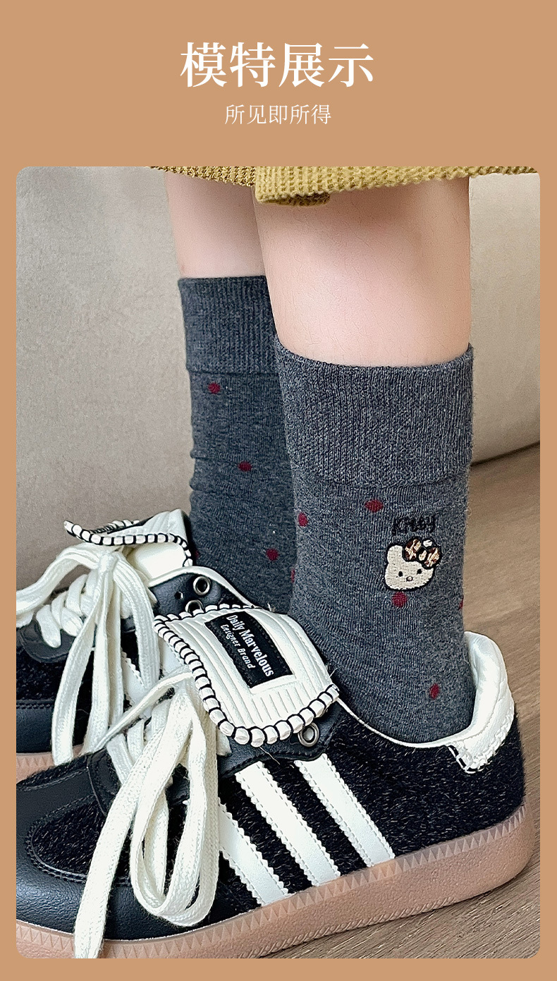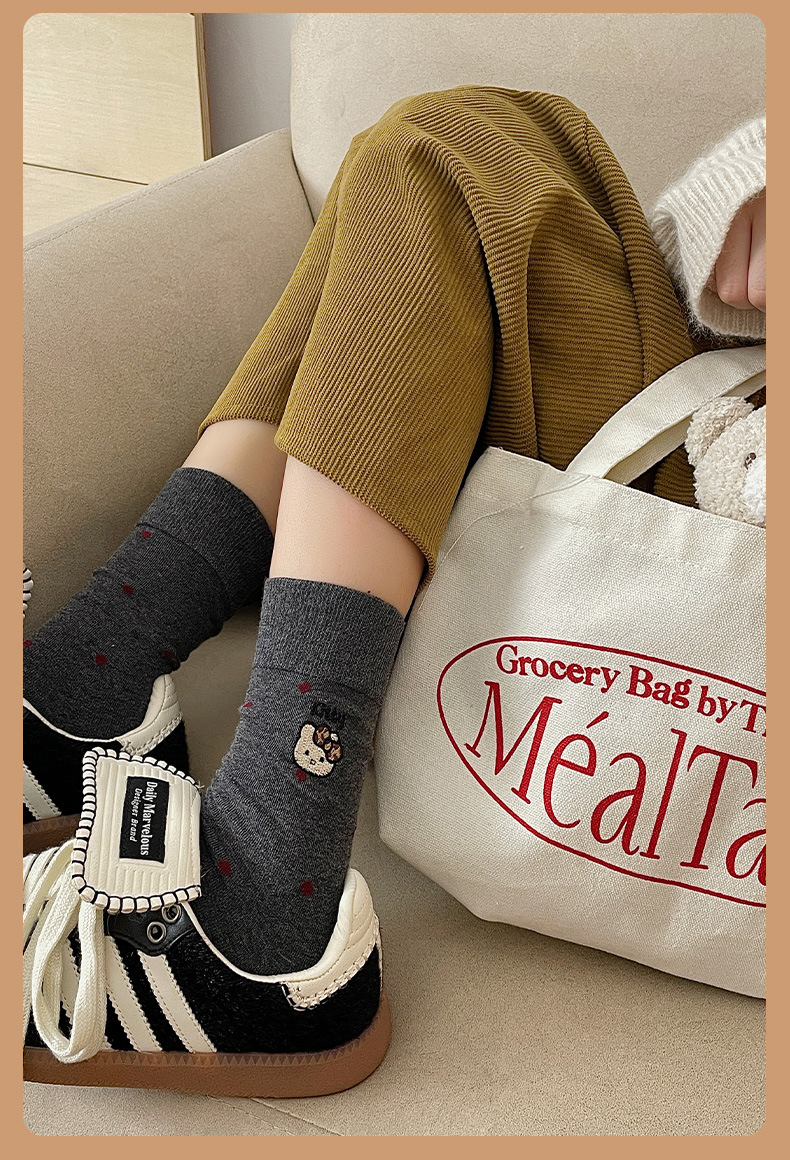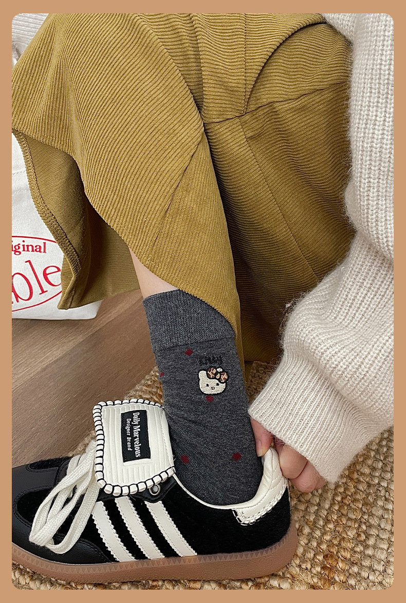 刺绣猫咪袜子女棉袜日系波点中筒袜网红卡通可爱袜子韩版堆堆袜女