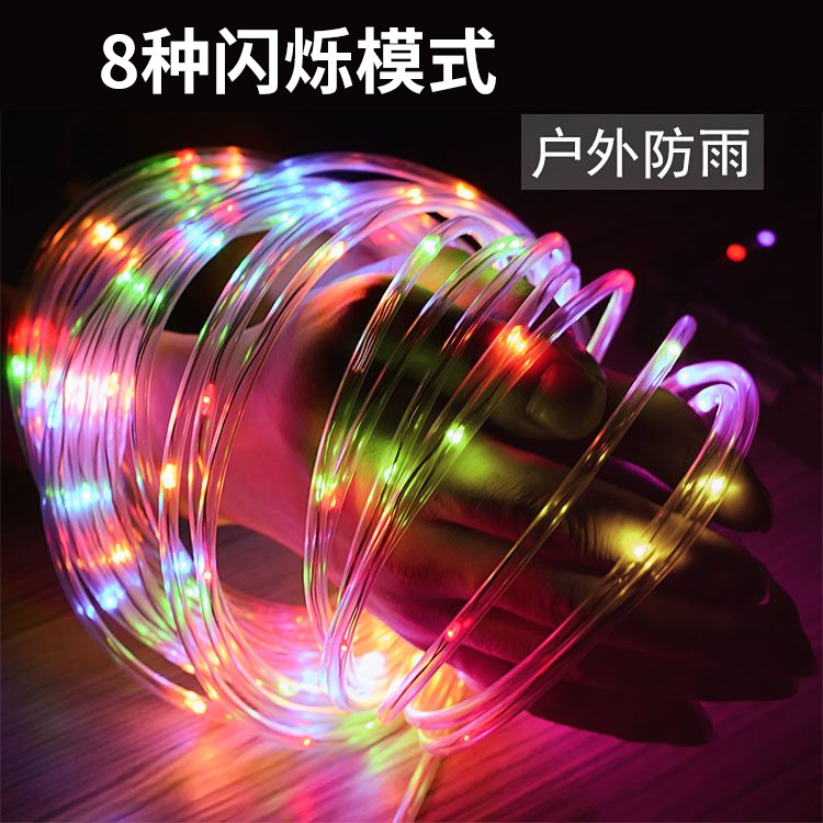 跨境LED太阳能灯串PVC软管子灯皮管灯户外防水庭院小彩灯装饰灯串