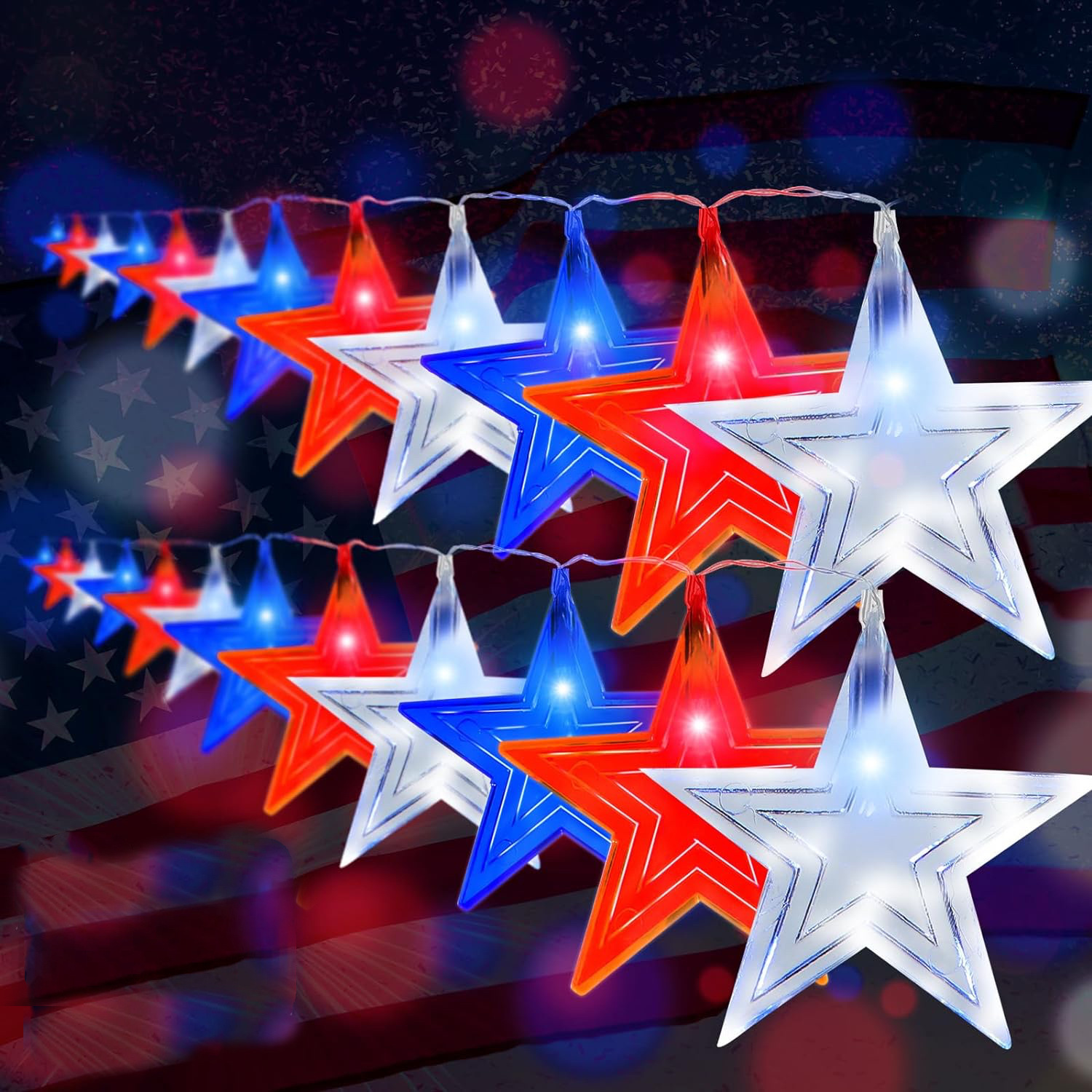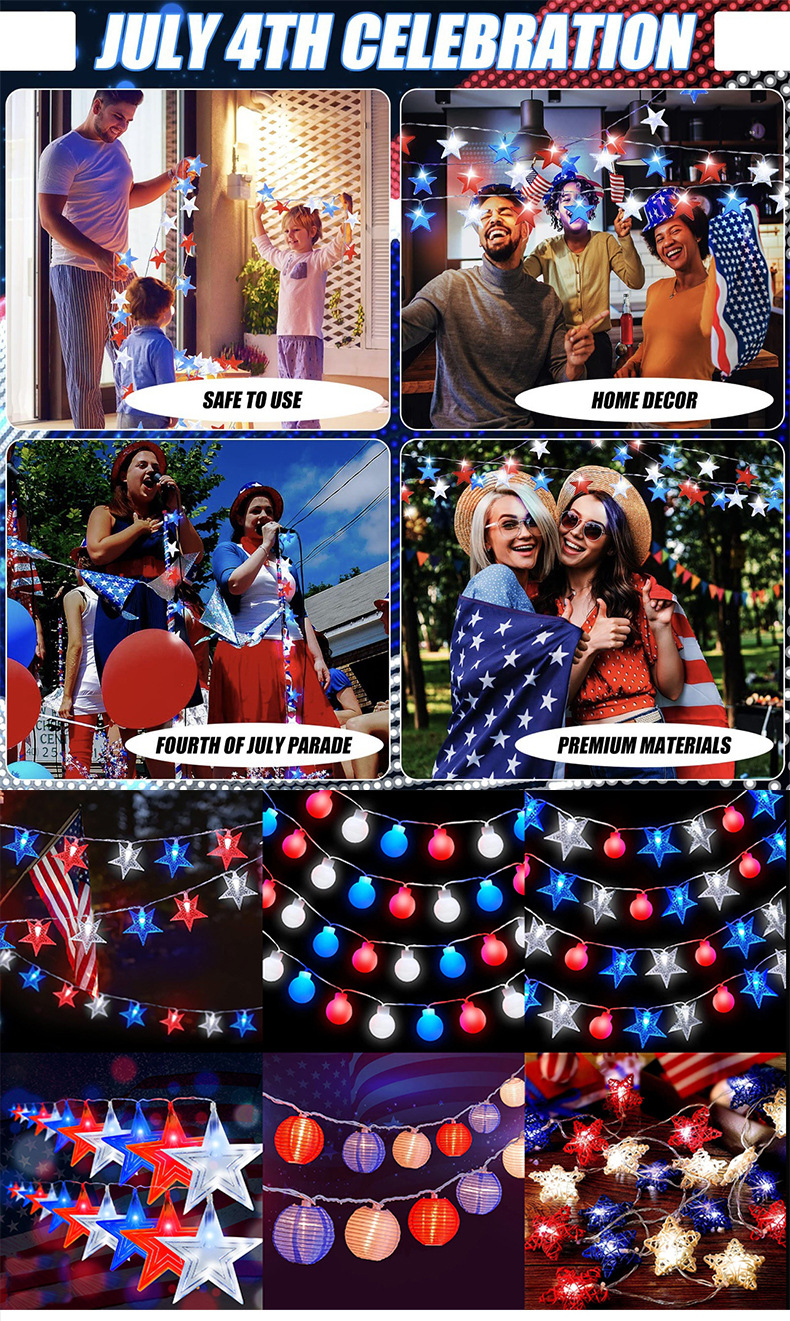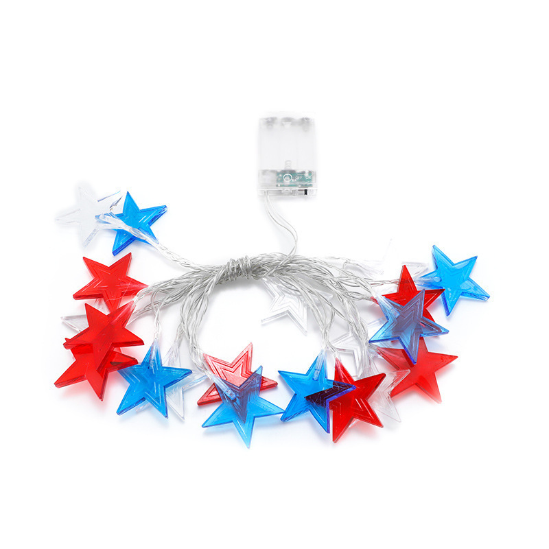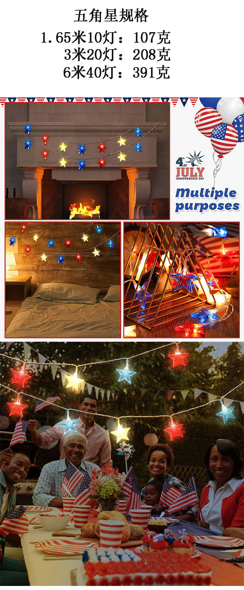 跨境美国独立日灯串红白蓝五角星圆球串灯国旗独立日装饰彩灯批发