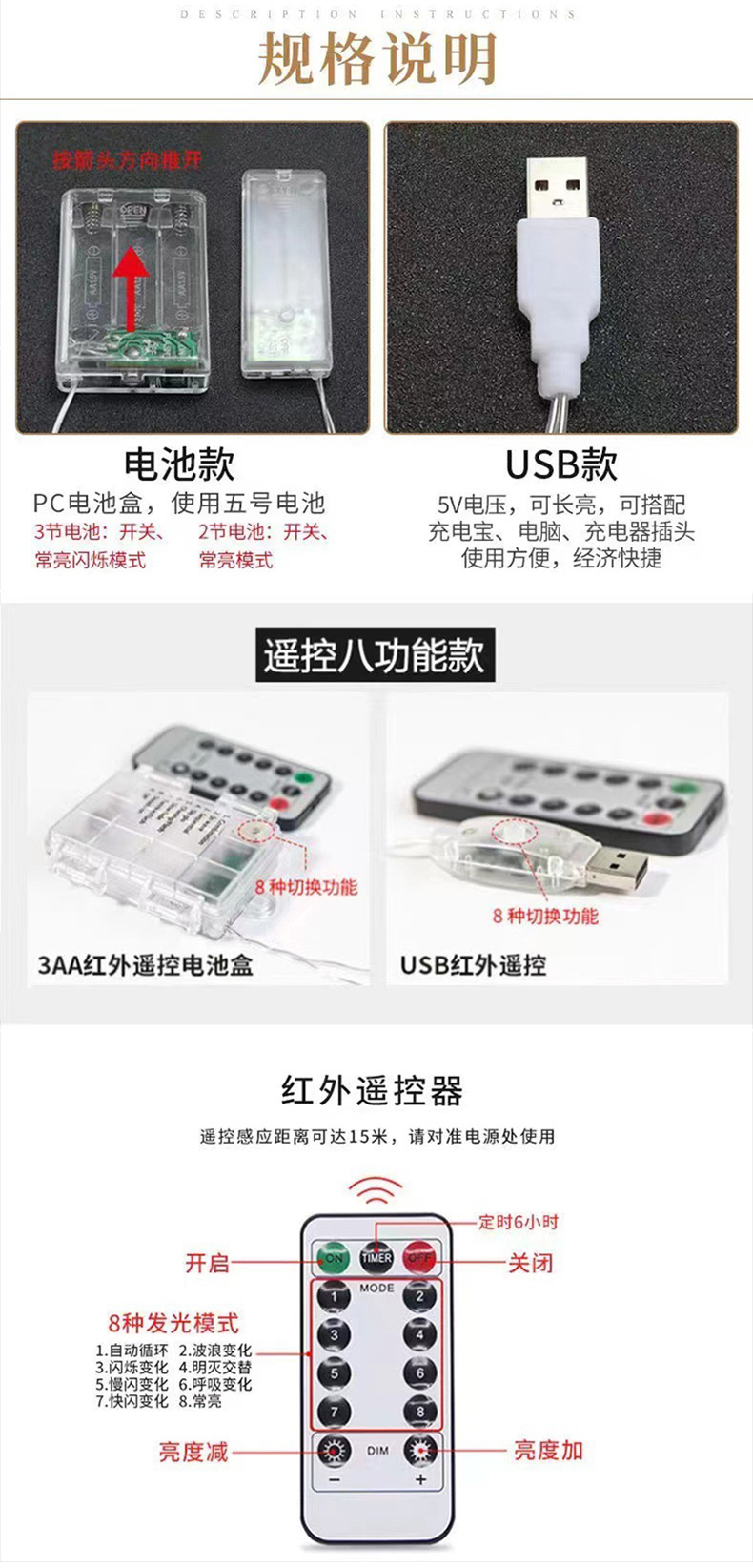 | 3米20灯【常亮+闪烁】三节电池 | USD $4.86 | 9999 set available |