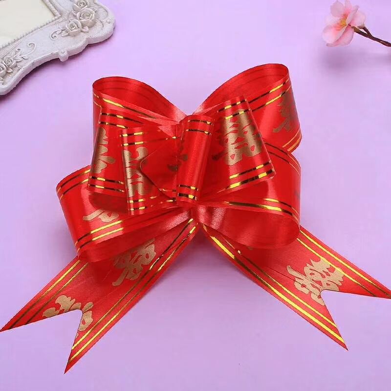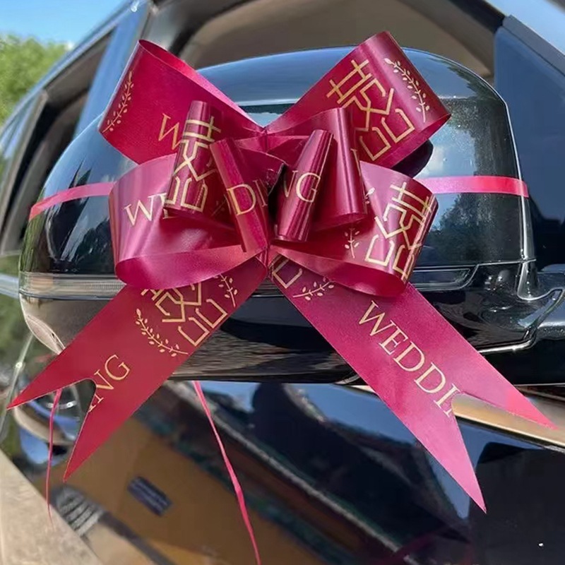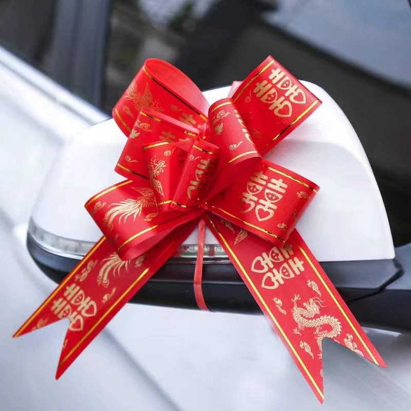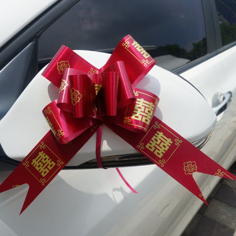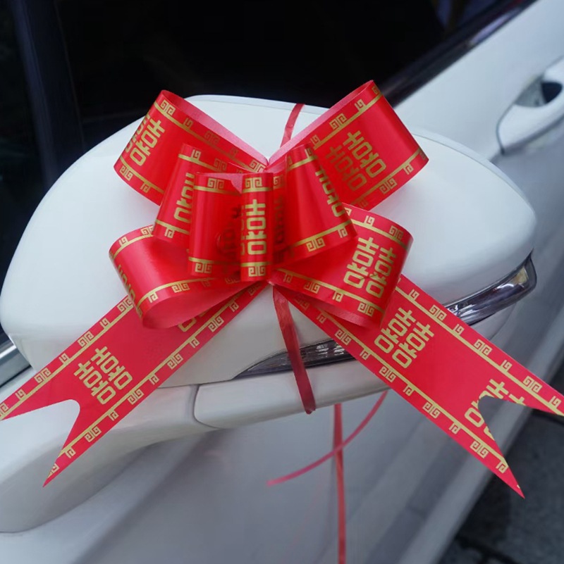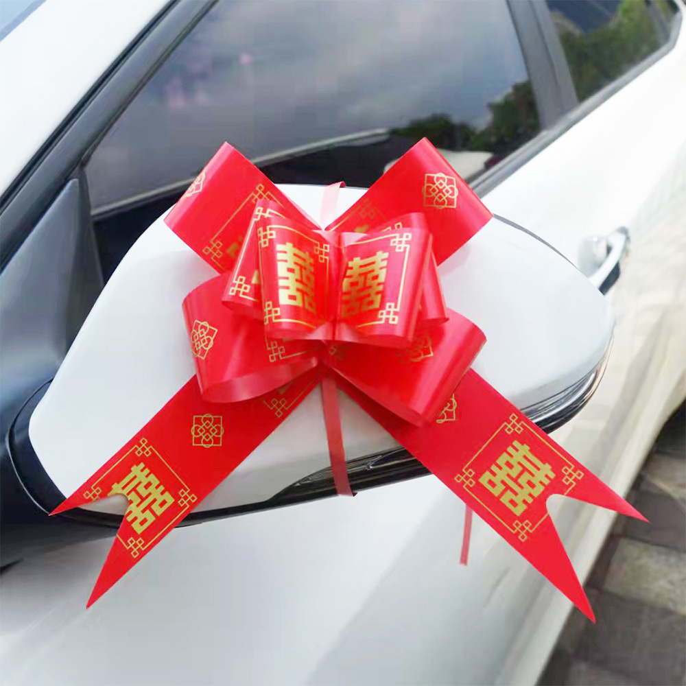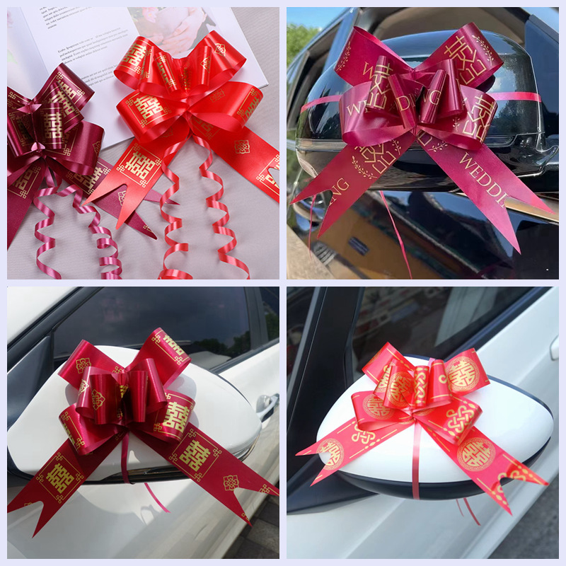 厂家批发拉花彩带婚车拉花车队后视镜装饰花手抽花蝴蝶结结婚用品