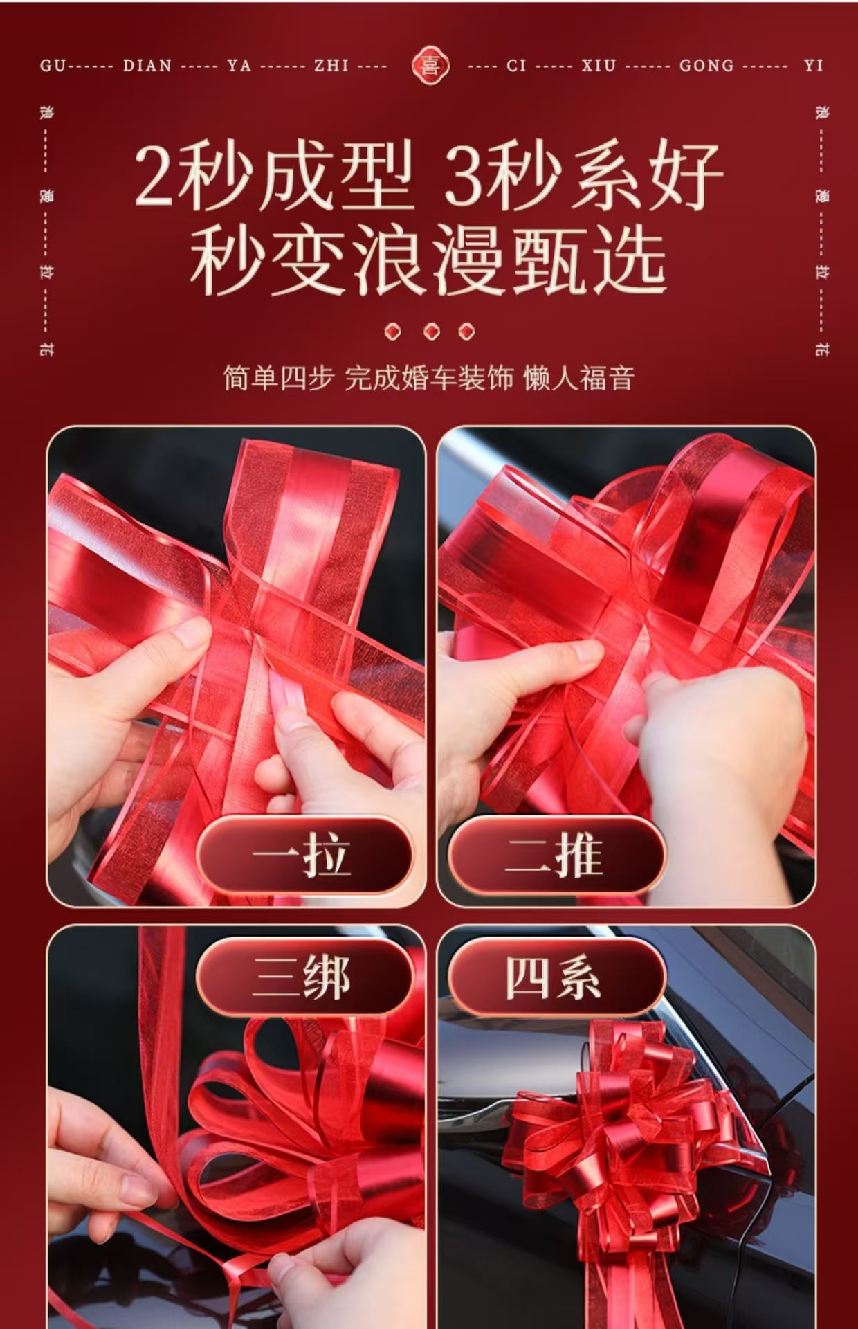 结婚婚车拉花婚房装饰用品婚礼布置副车队镜子把手绑楼梯手拉花