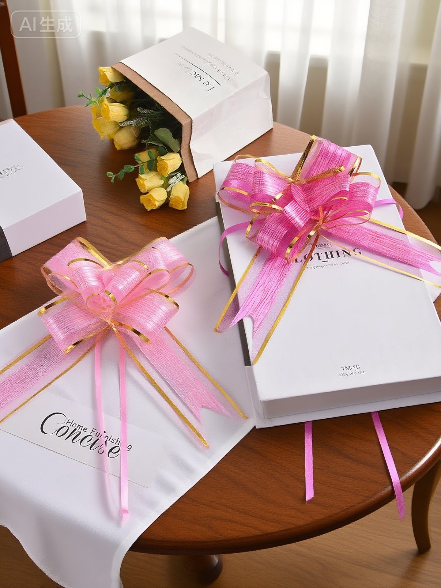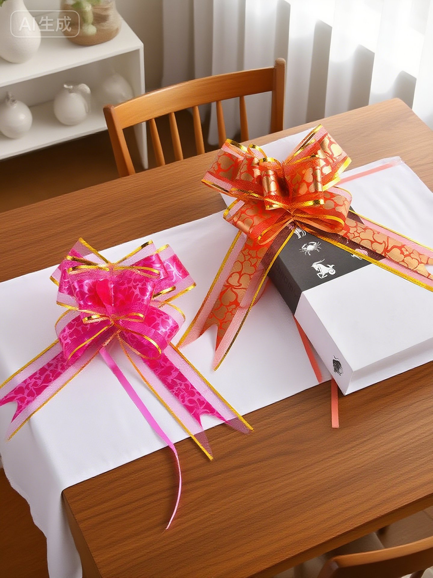 包邮 跨境50大号雪纱树纹蝴蝶结手拉花彩带 婚车礼品包装树皮拉花