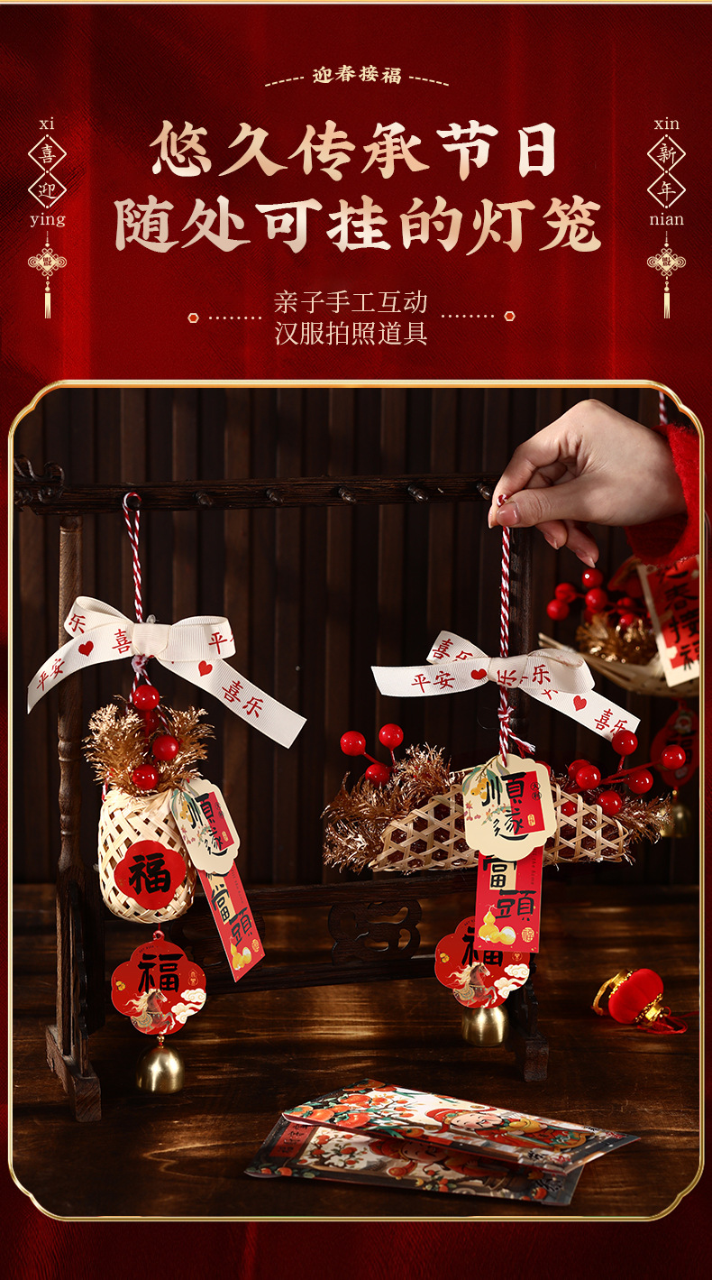 2026新年春节装饰新款非遗竹编灯笼挂件马年过年手工diy挂饰氛围