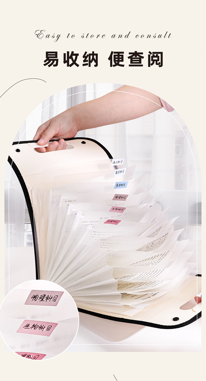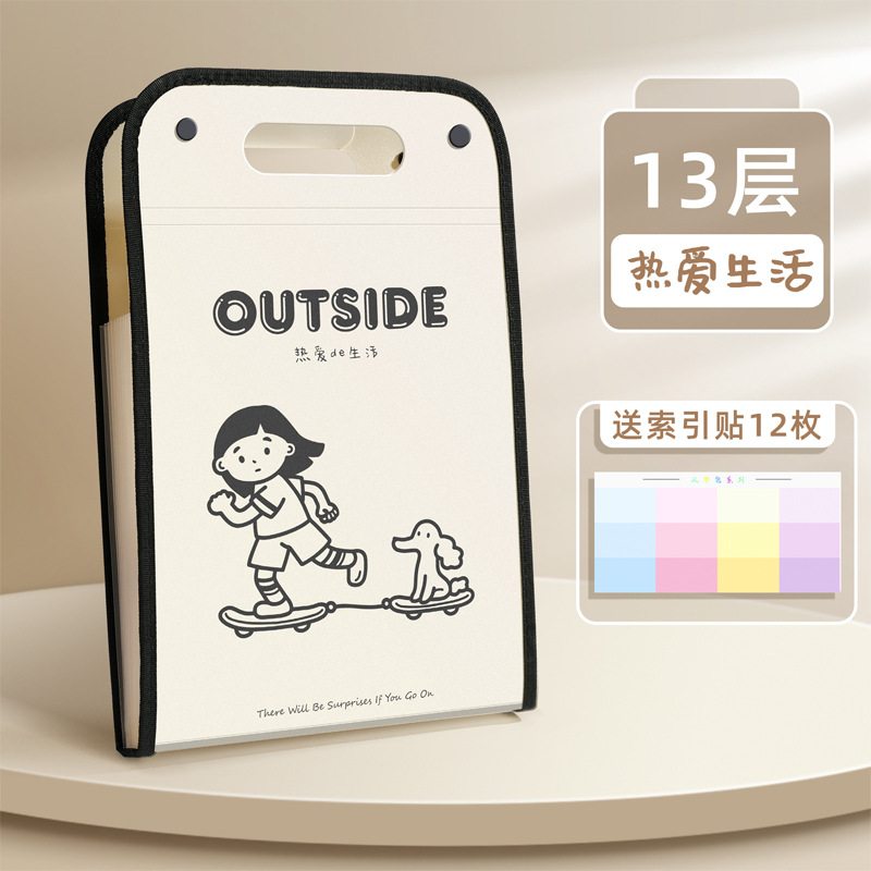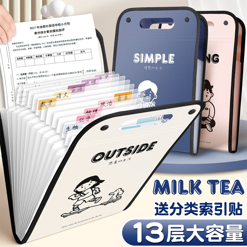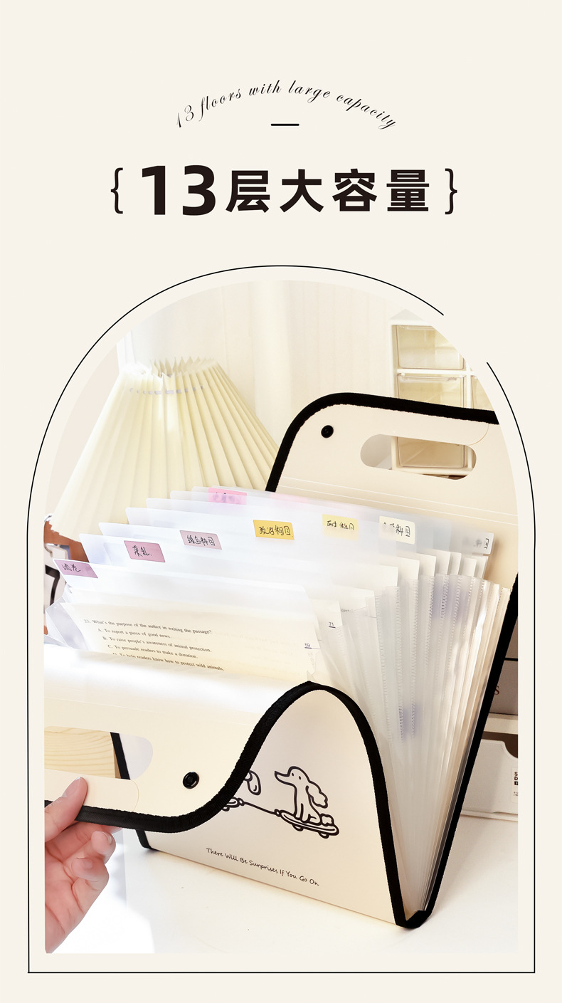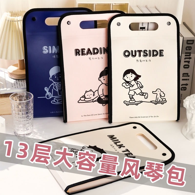 咔巴熊A4文件袋大容量13层竖款手提便携风琴包资料文件夹手提袋子