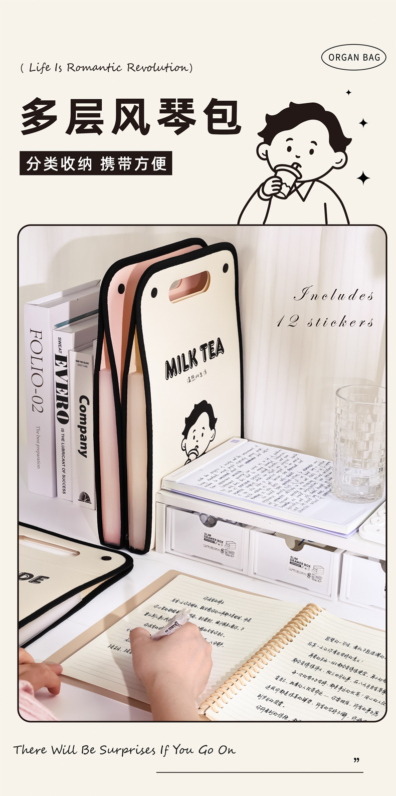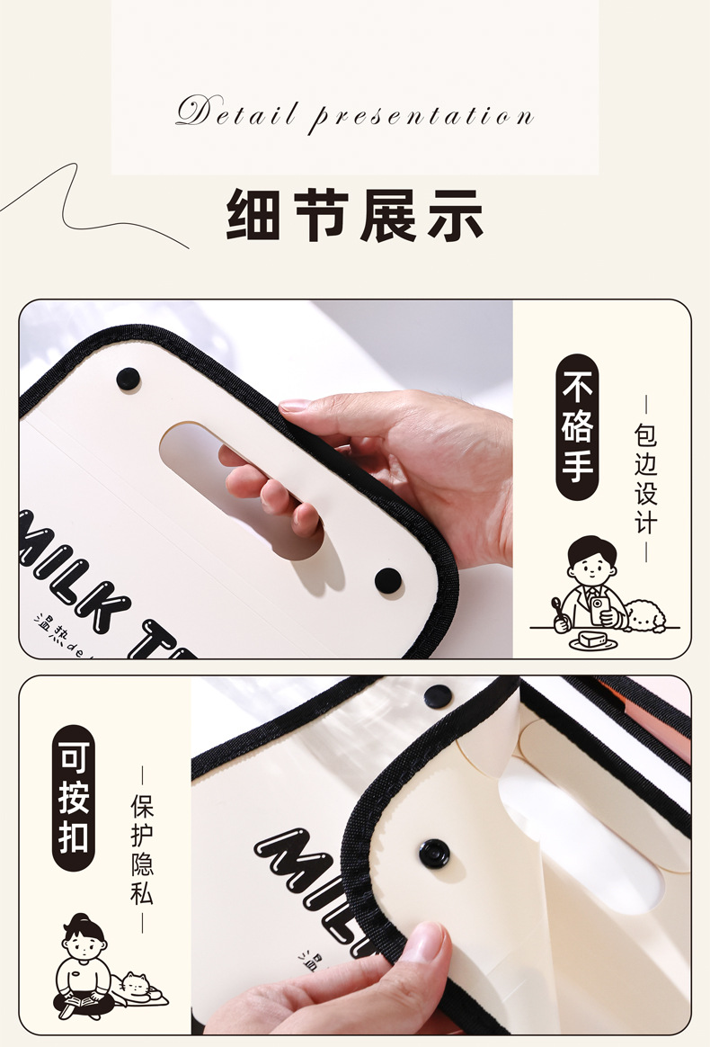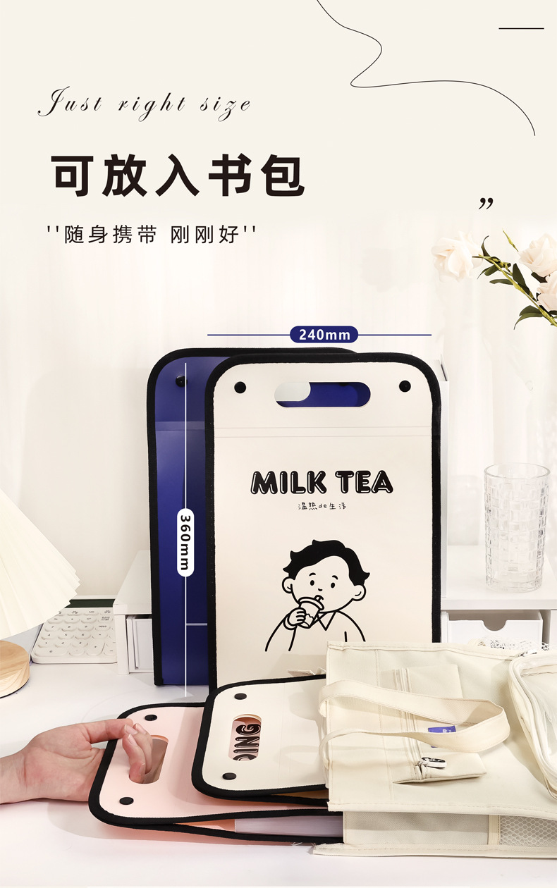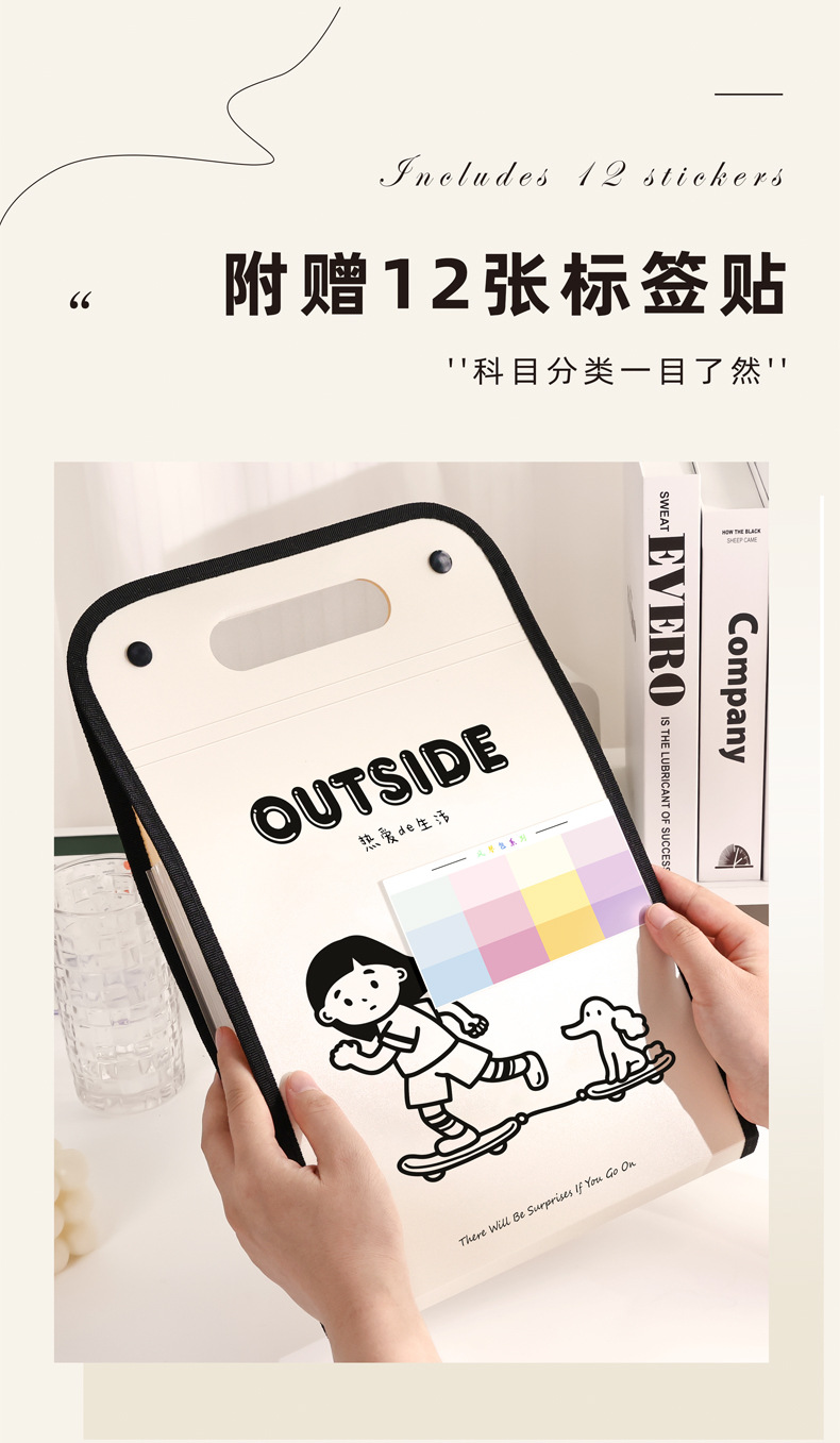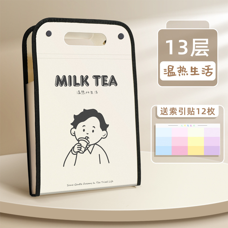 咔巴熊A4文件袋大容量13层竖款手提便携风琴包资料文件夹手提袋子