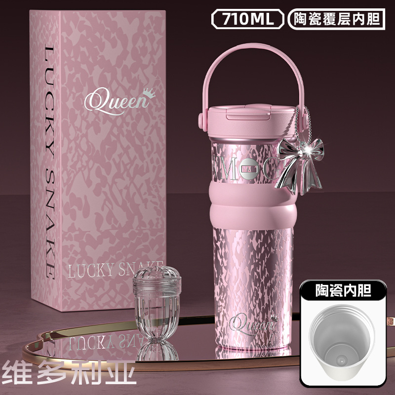新款高颜值保温杯女大容量车载陶瓷咖啡随行冰霸杯子轻奢手提水杯