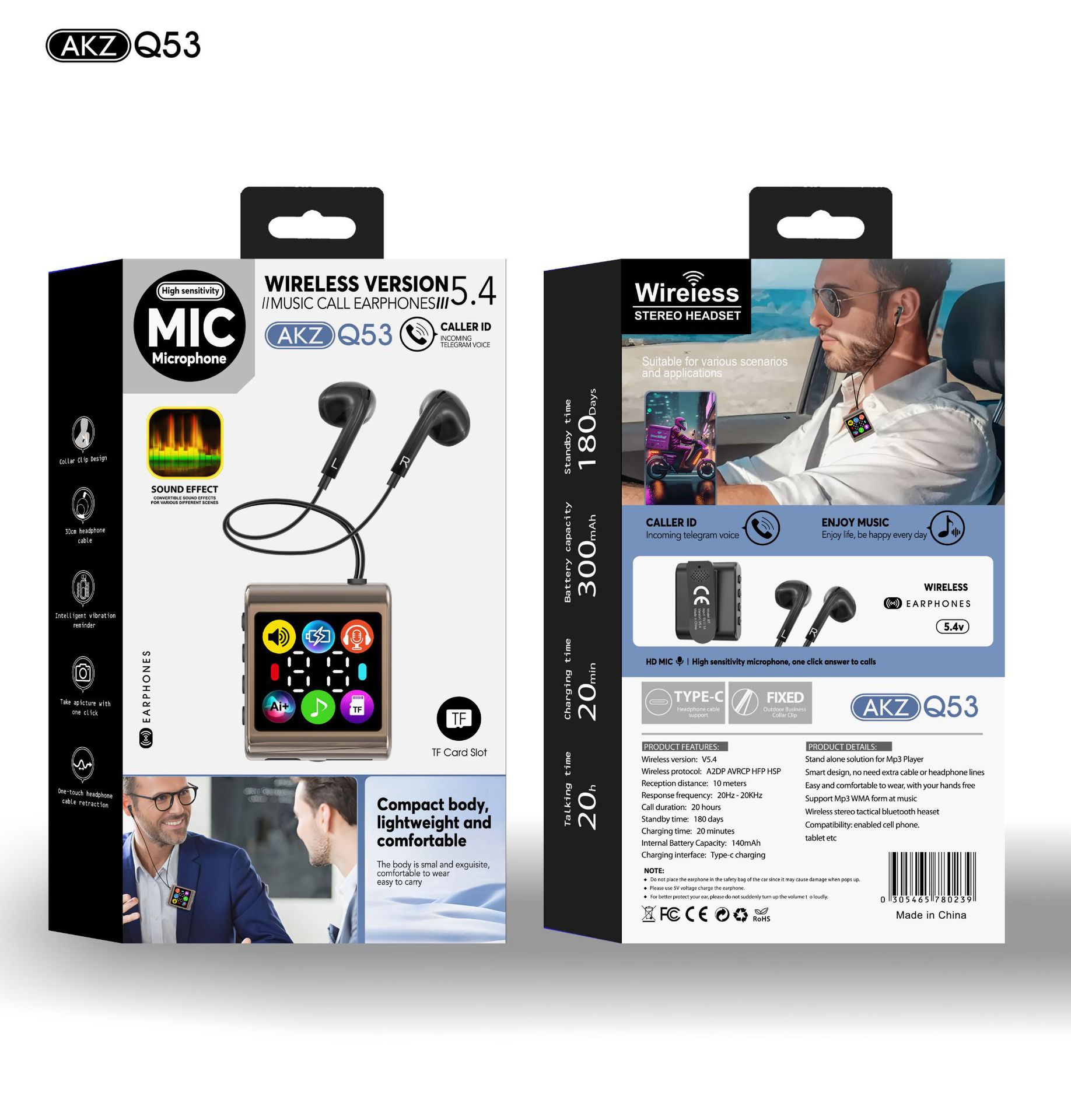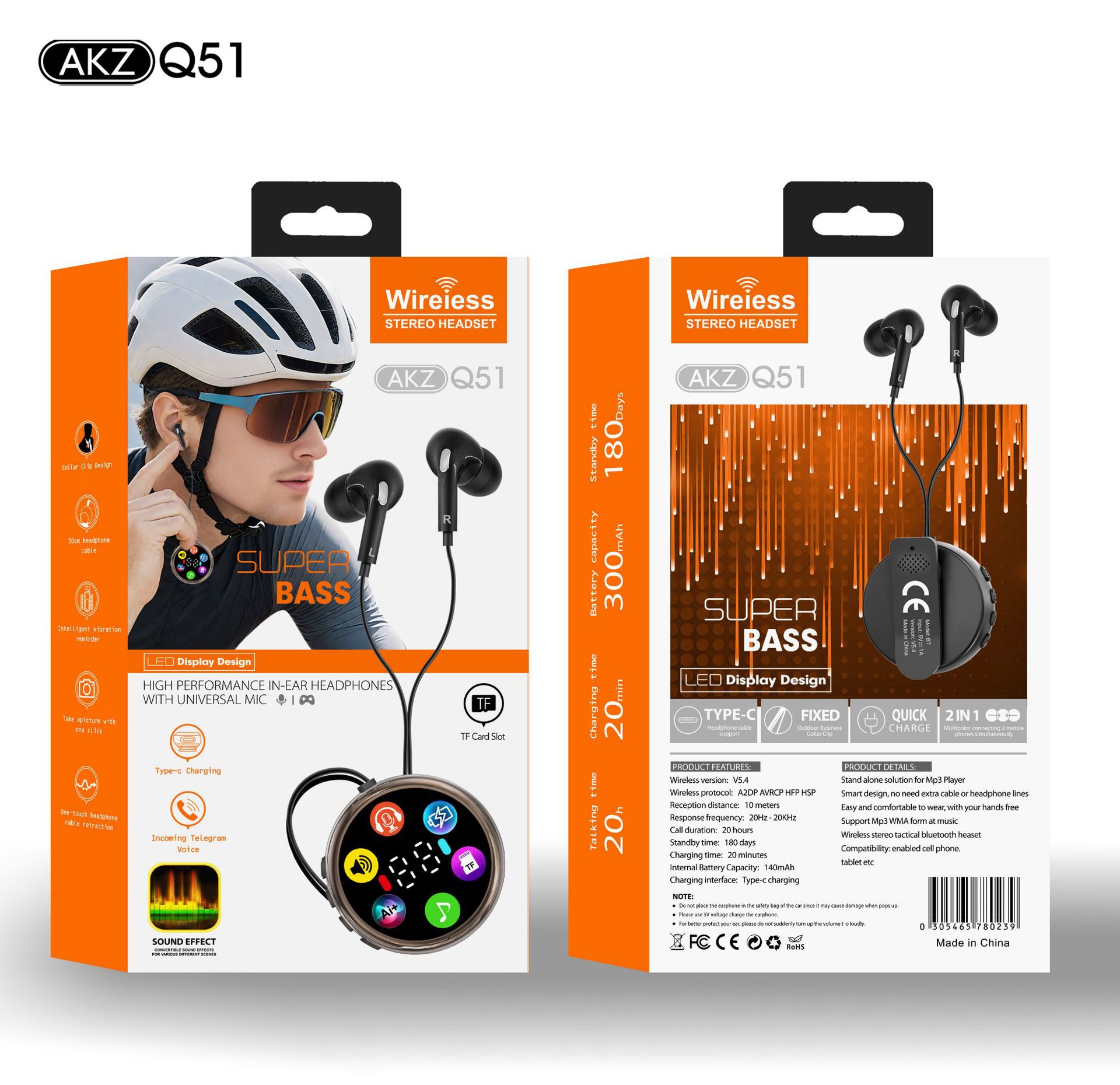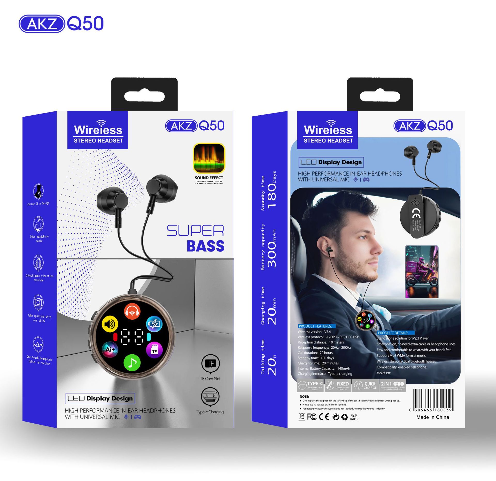 AKZ-Q50跨境蓝牙耳机长续航耳返 运动款插卡入耳游戏无线耳机数显