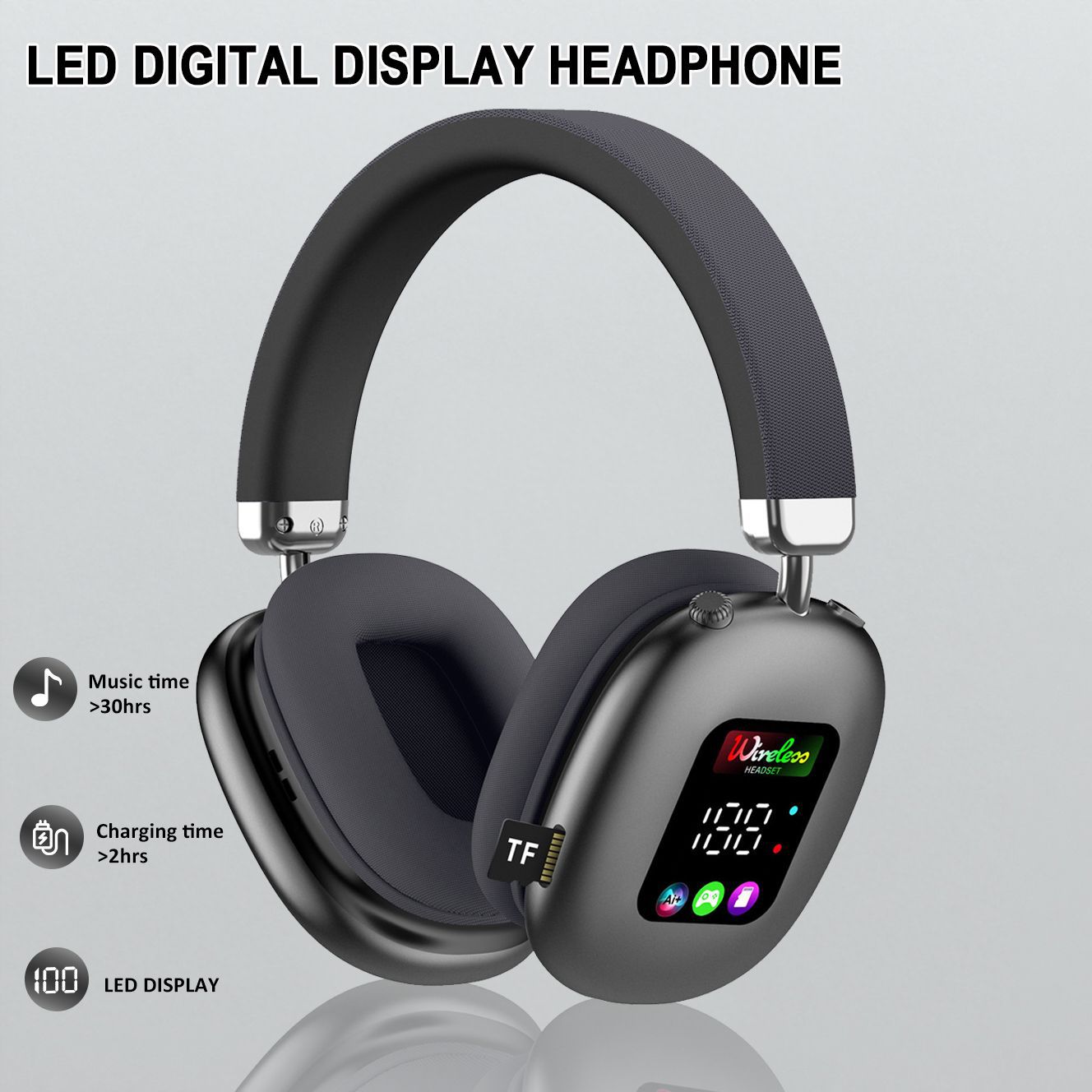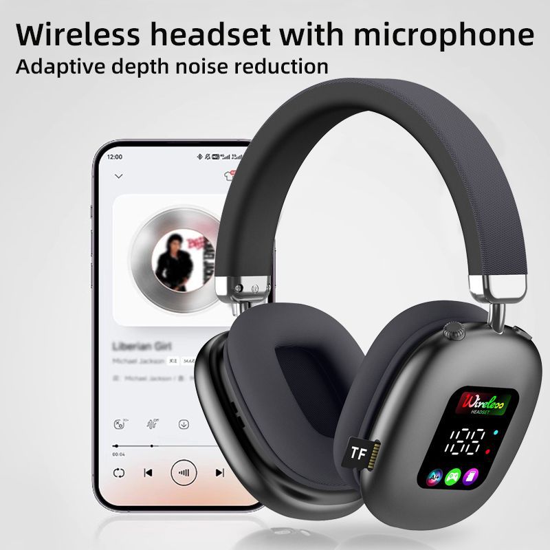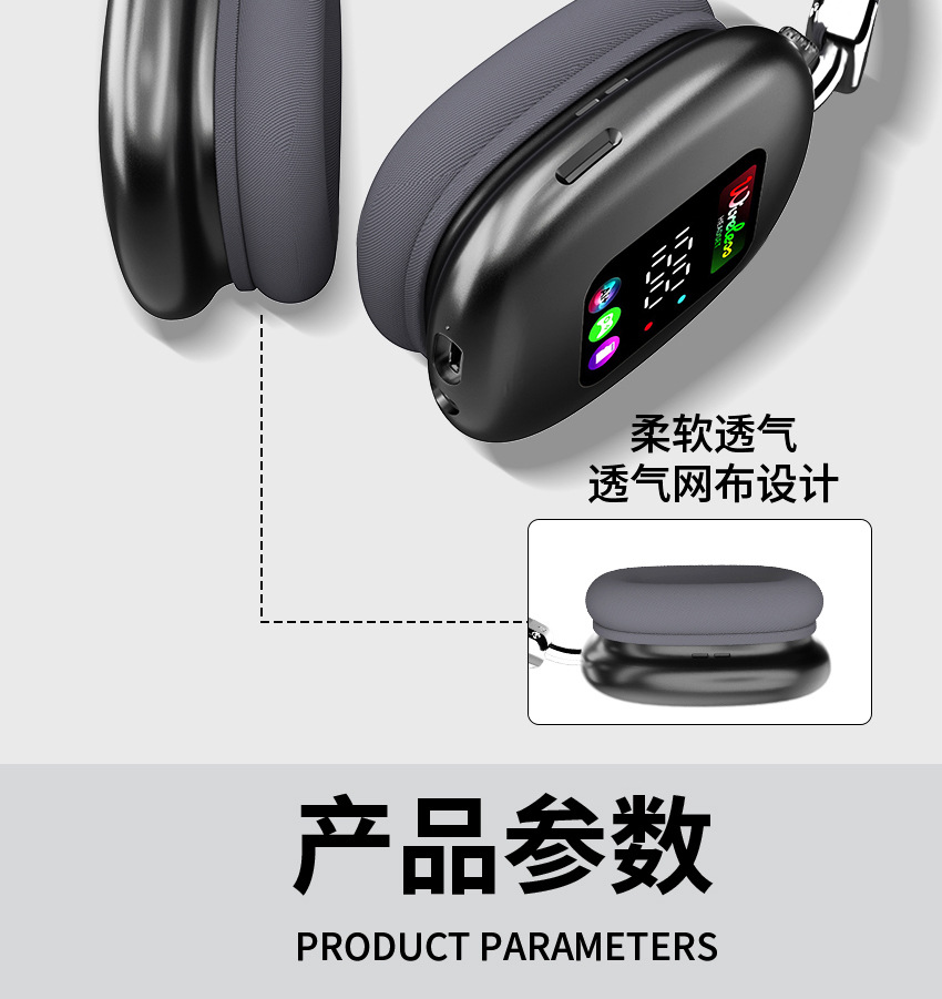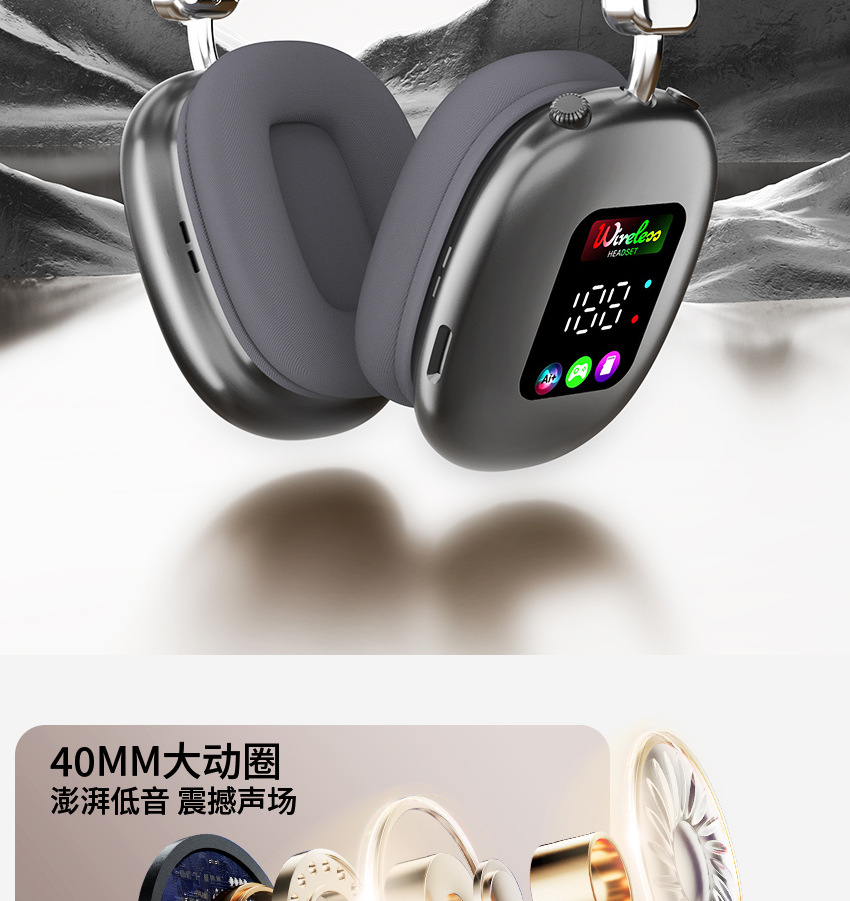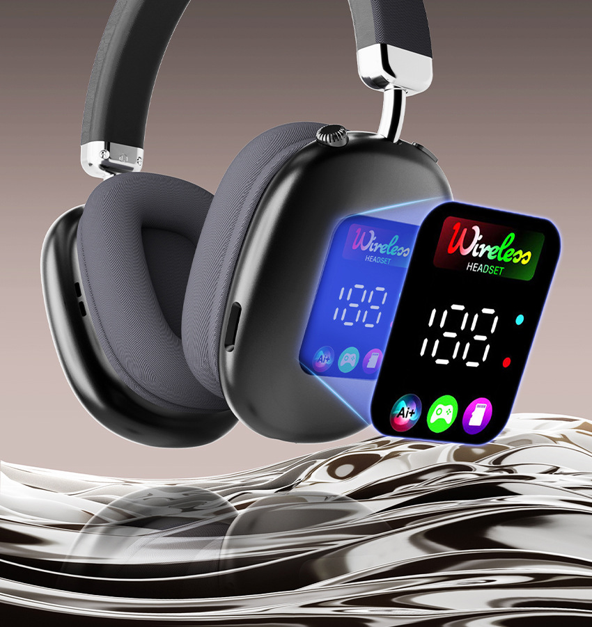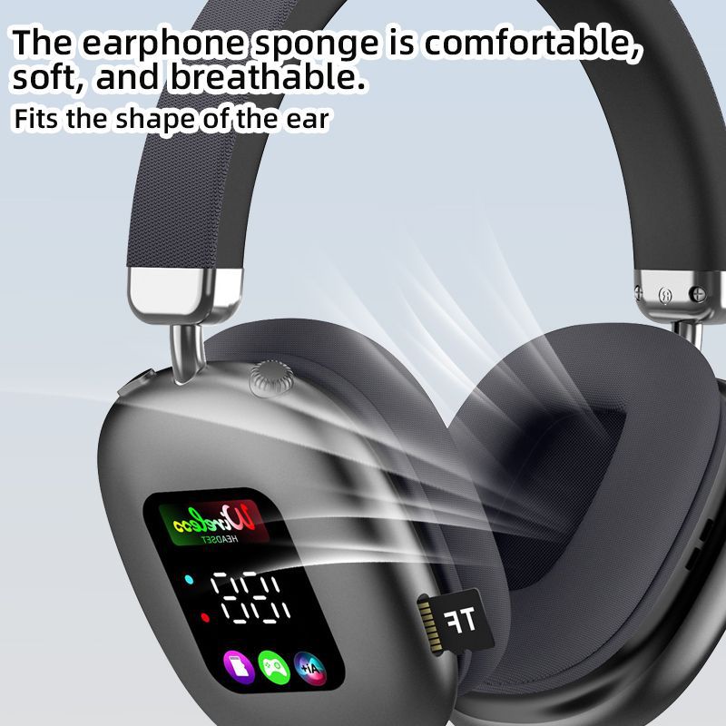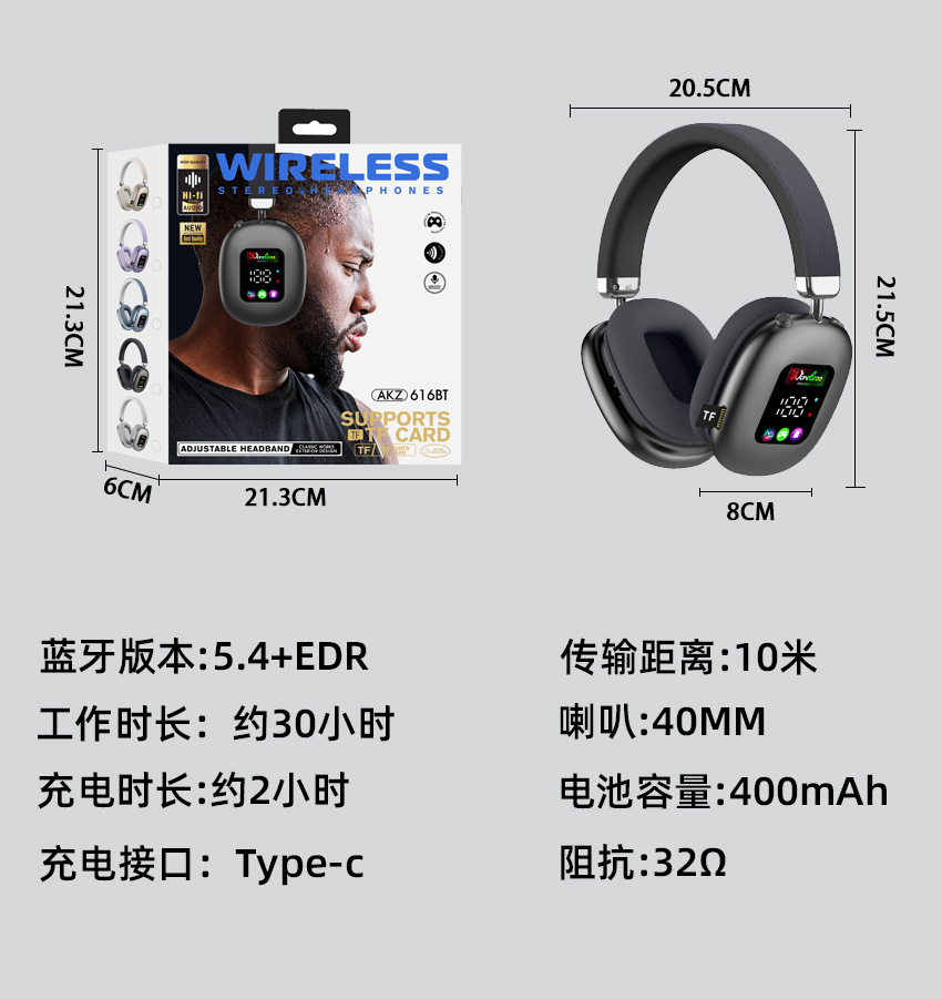 AKZ616BT 跨境新款无线头戴式蓝牙耳机 RGB数显屏幕耳麦读卡耳机