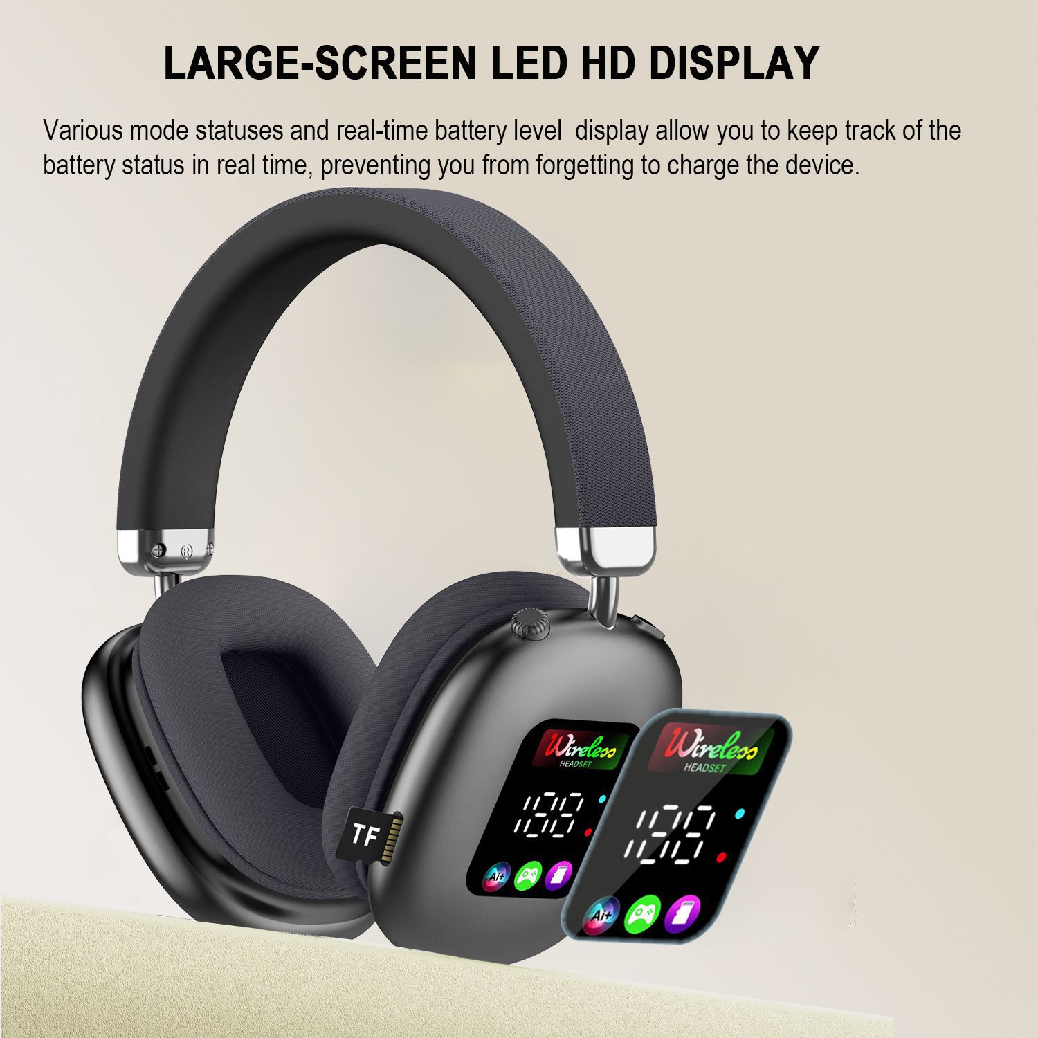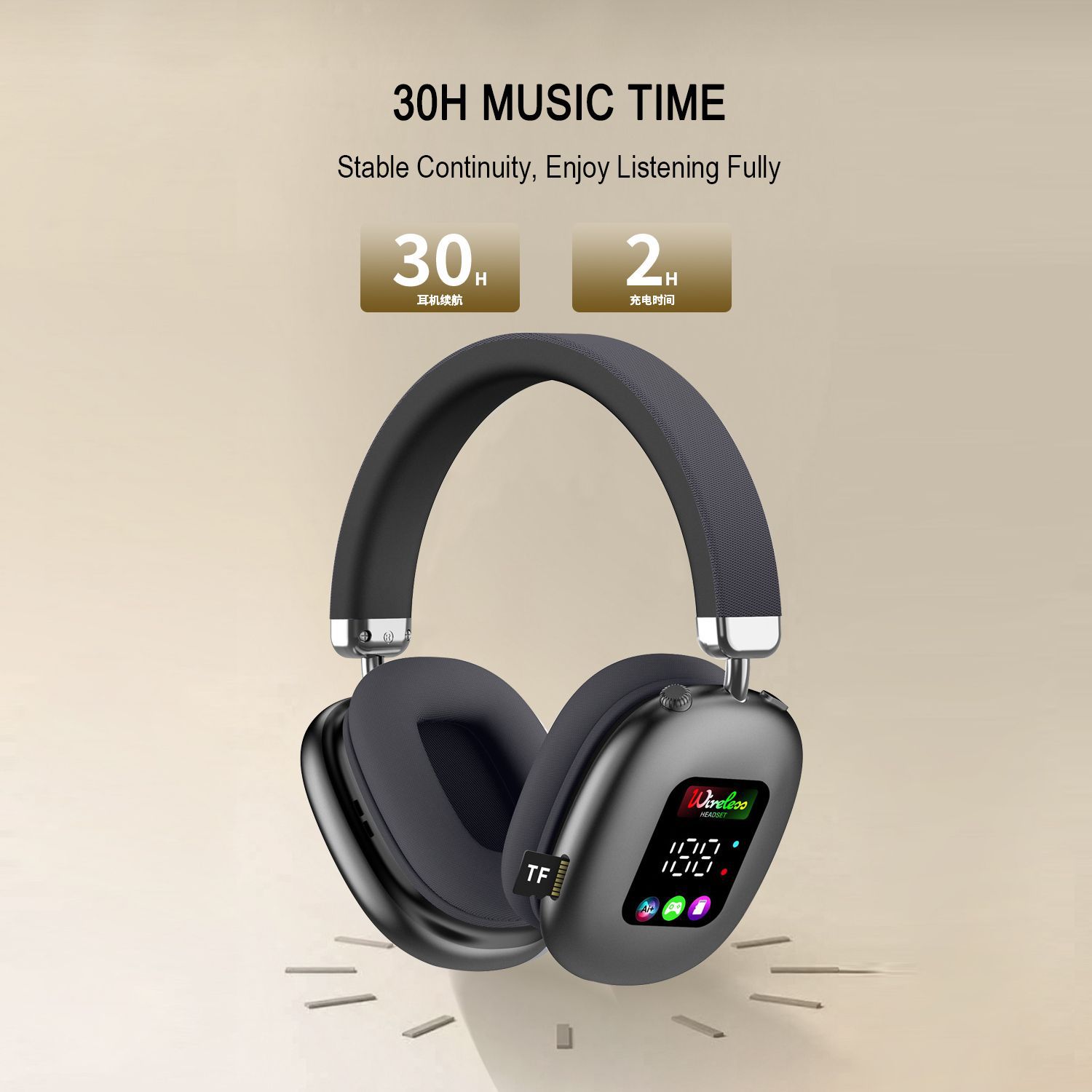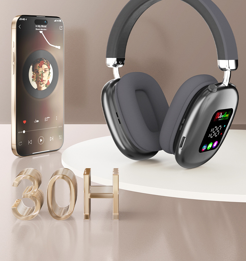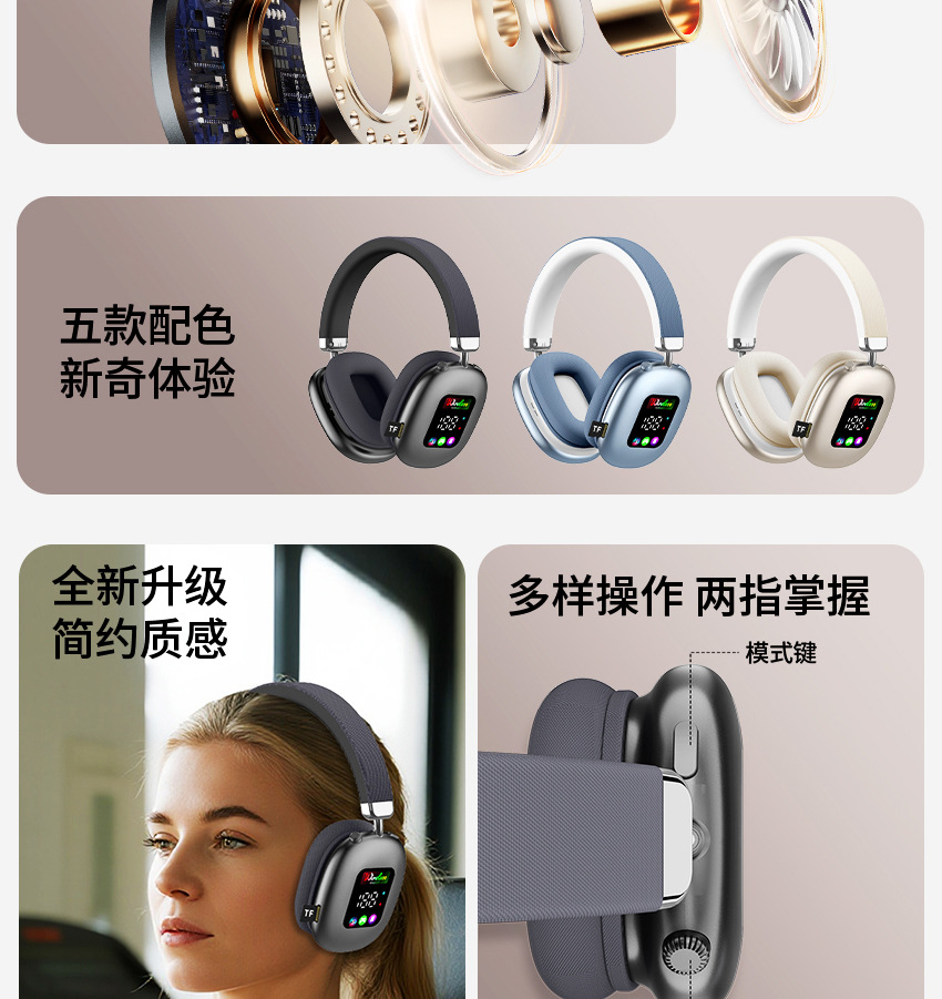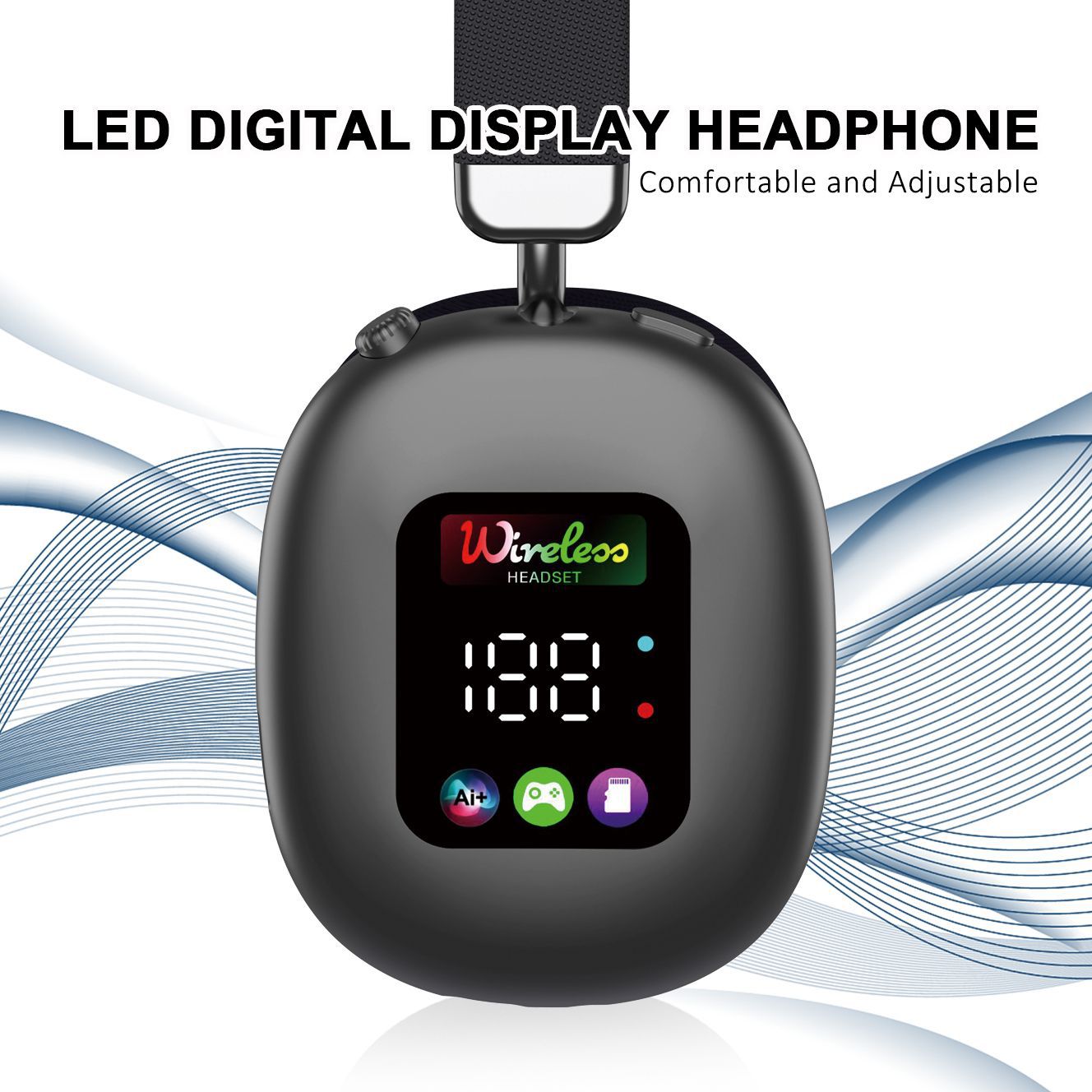 AKZ616BT 跨境新款无线头戴式蓝牙耳机 RGB数显屏幕耳麦读卡耳机
