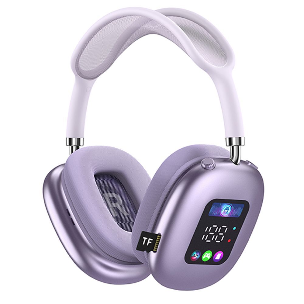 AKZ MAX500跨境新款无线头戴式蓝牙耳机 RGB数显屏幕耳麦读卡耳机