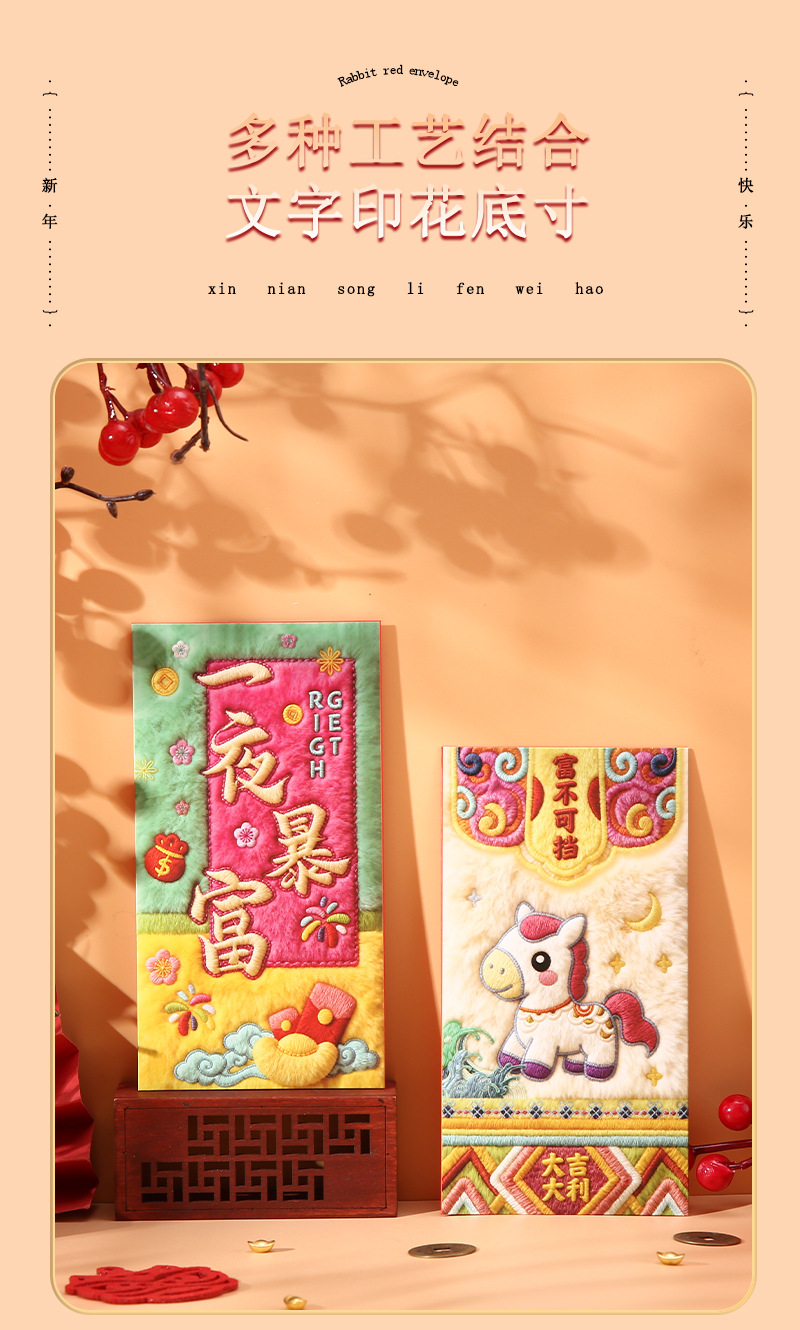 2026马年红包创意立体生肖仿布艺利是封过新年春节高档压岁钱红包