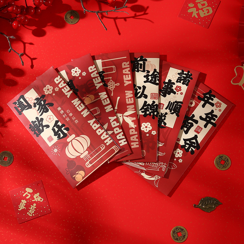 马年新年红包年年有余书法字体印花红包袋儿童除夕压岁利是封现货