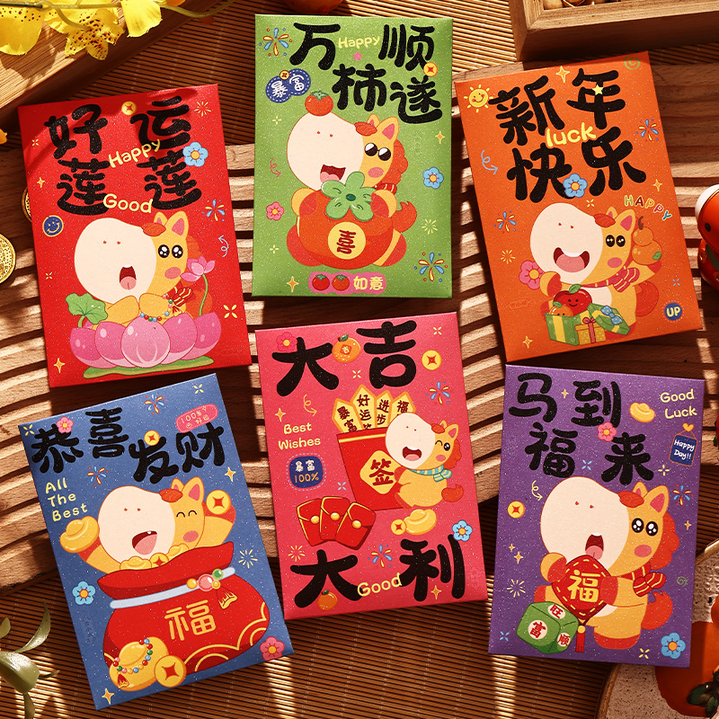 新款马年卡通红包卡通生肖可爱创意马到成功利是新春中号硬卡压岁