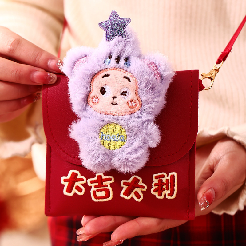 新款2026新年创意毛绒玩偶红包新款拜年包斜挎可爱个性春节儿童压