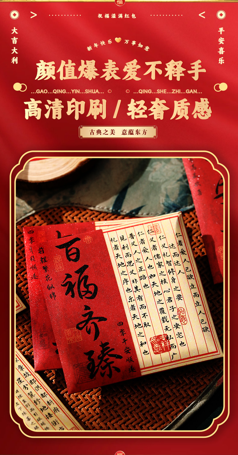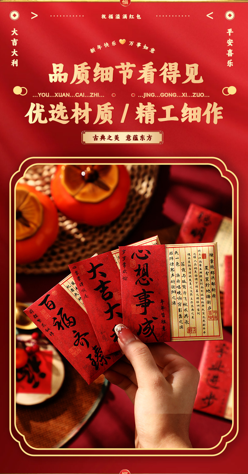 2026新年新款加厚国潮金葱小红包马年正方形利是封过年春节压岁钱