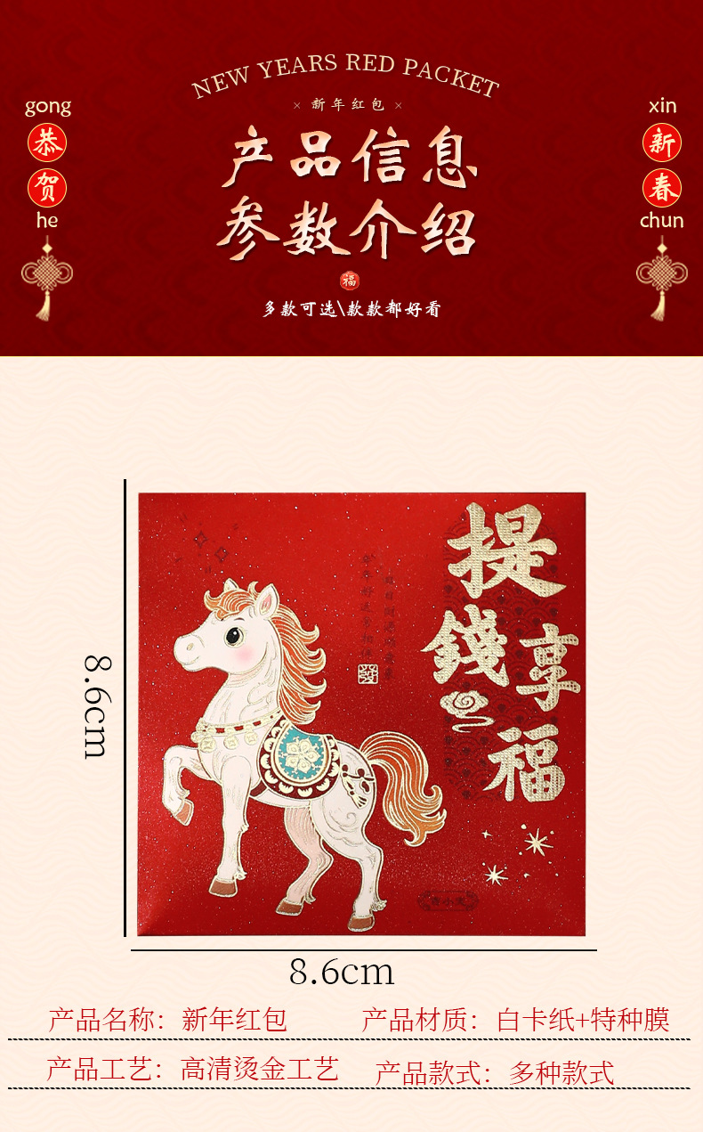 马年新款小红包可爱创意金葱磨砂烫金利是新年红包袋儿童压岁福袋