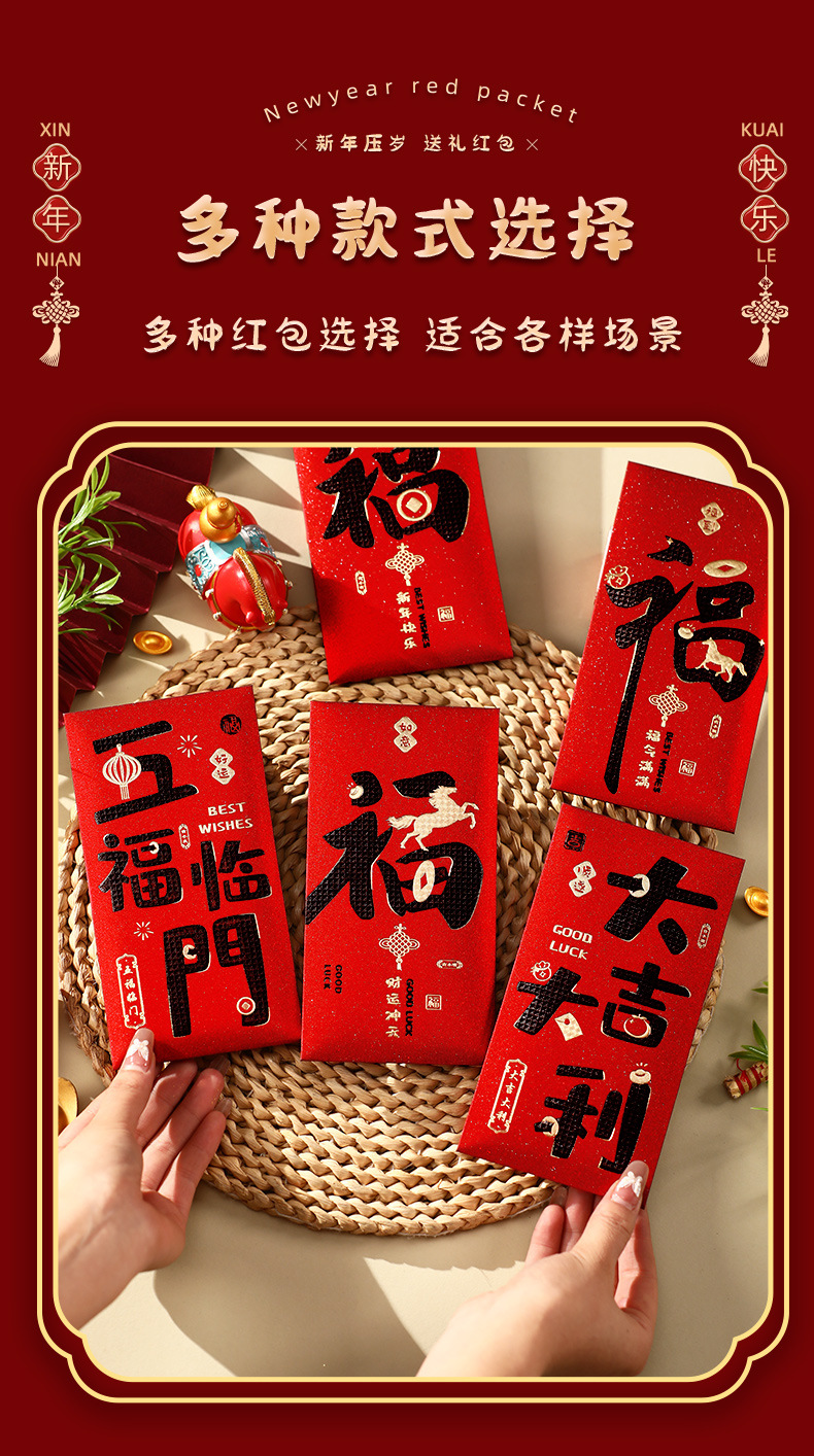 新款创意红包2026马年书法大吉大利红包新款春节利是封创意工厂