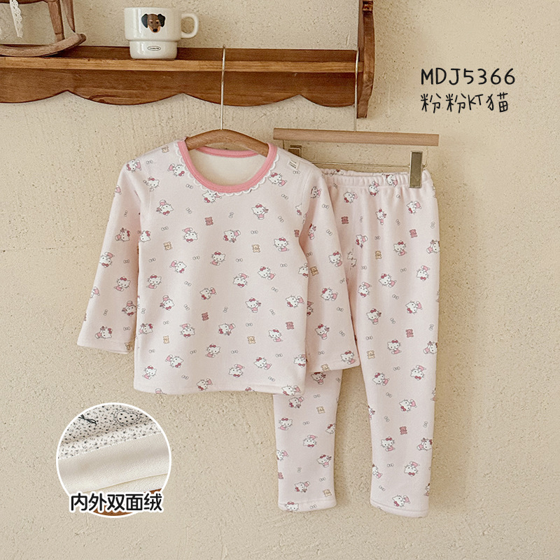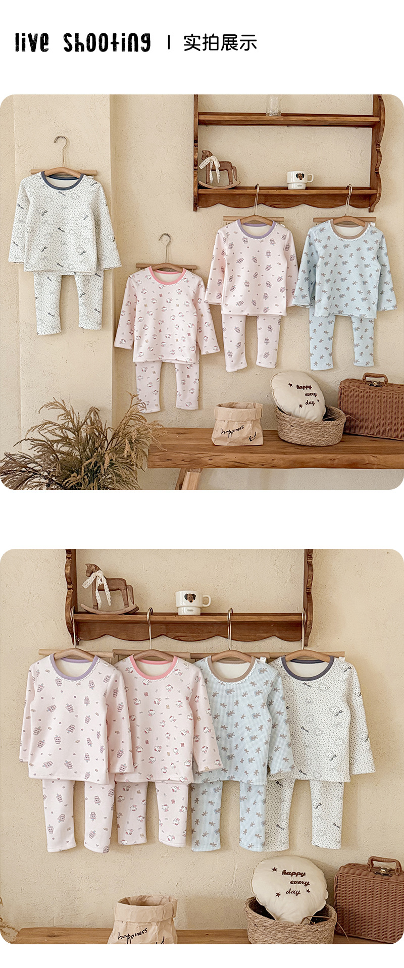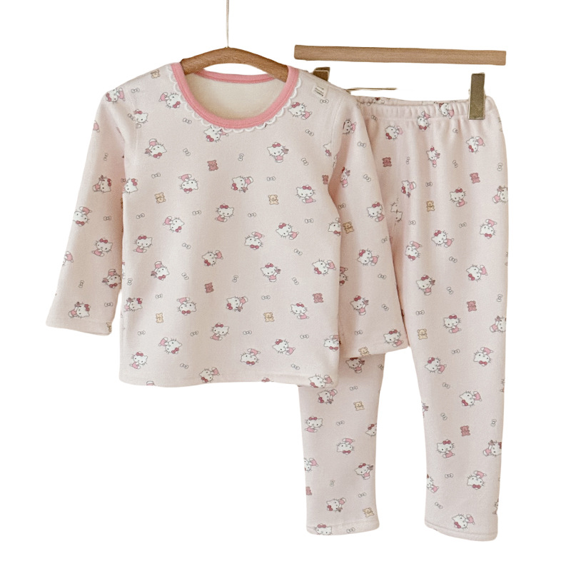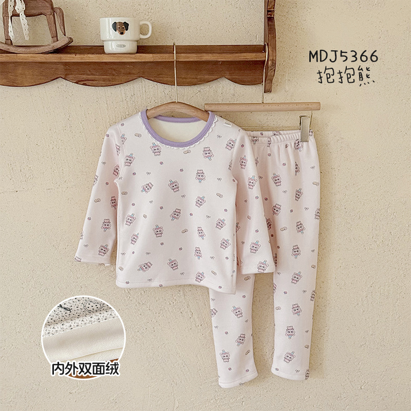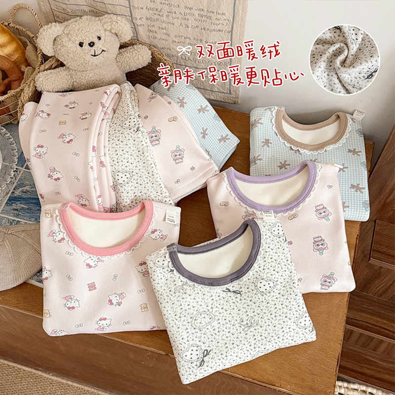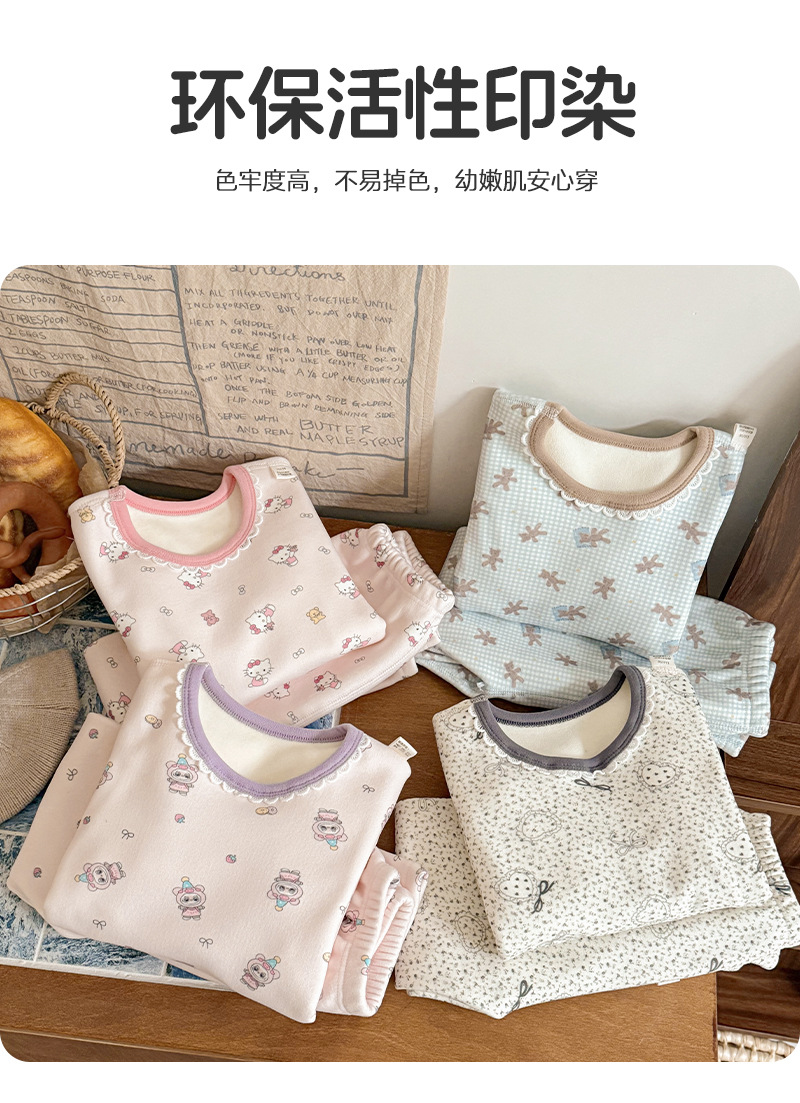 儿童秋衣套装2025秋冬新款韩版卡通圆领保暖加厚男女童家居服套装