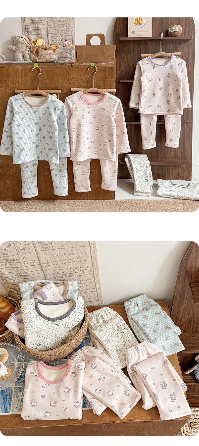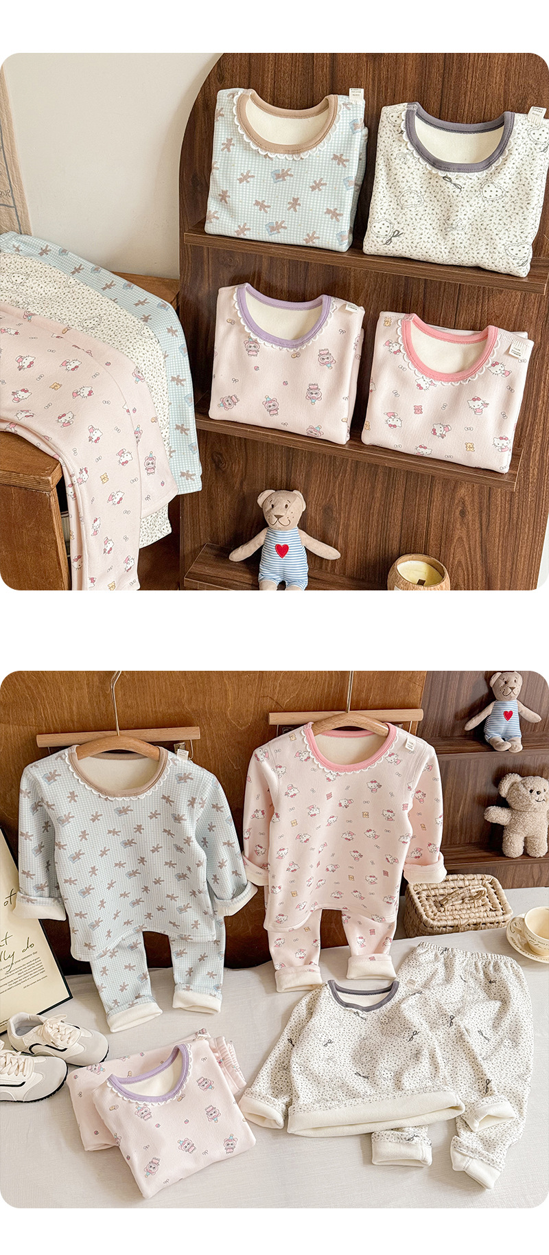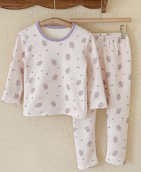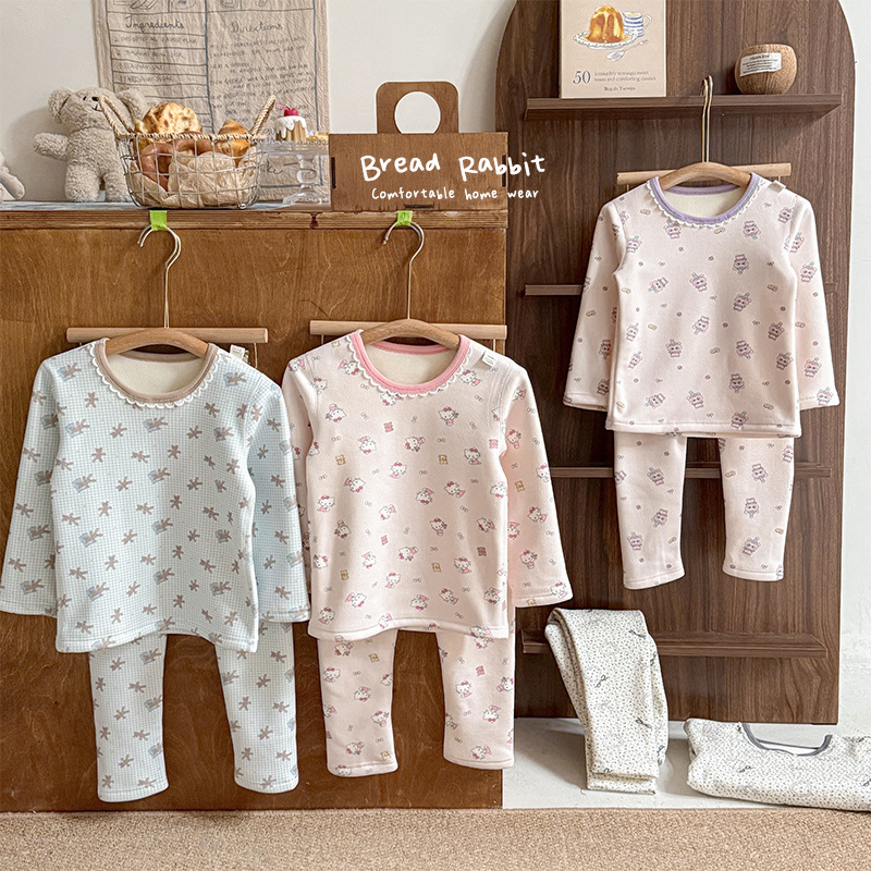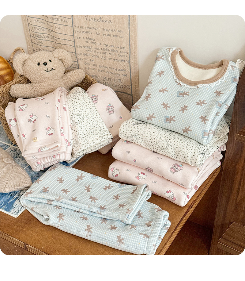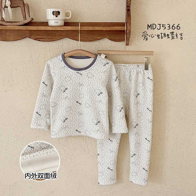 儿童秋衣套装2025秋冬新款韩版卡通圆领保暖加厚男女童家居服套装