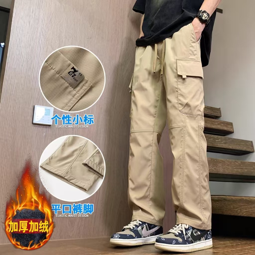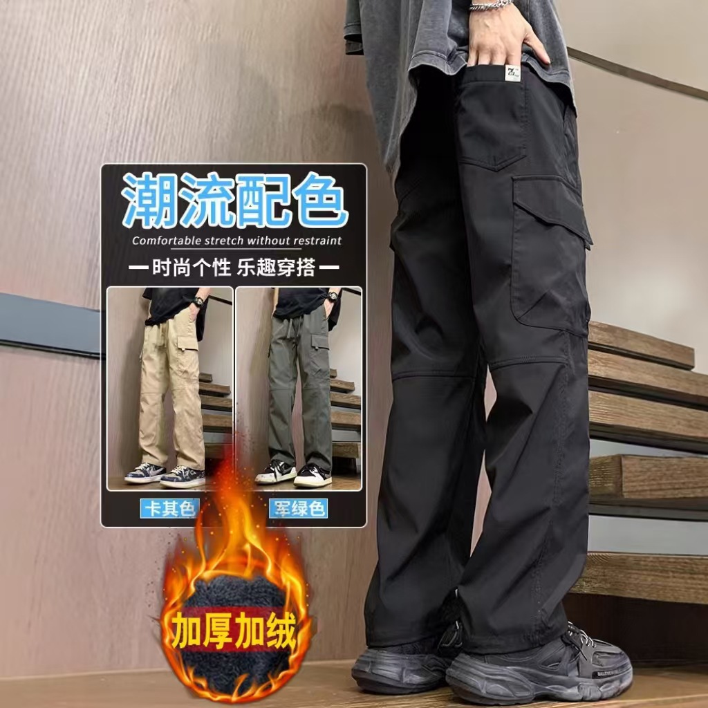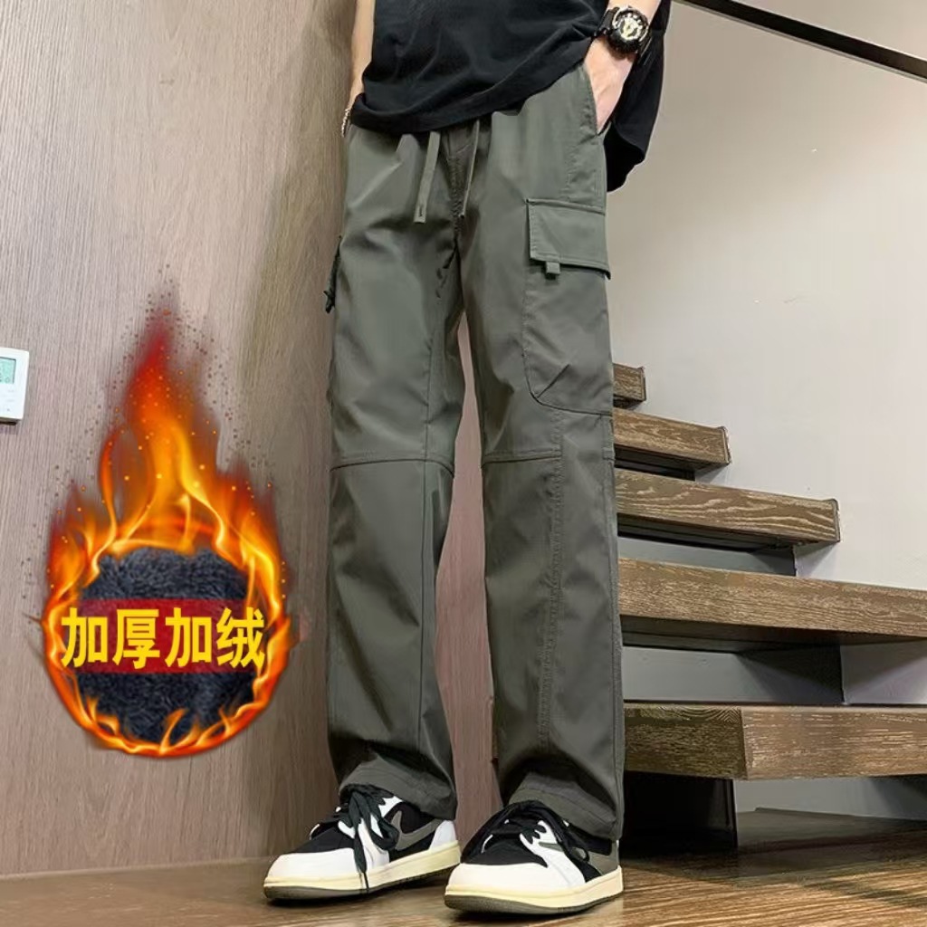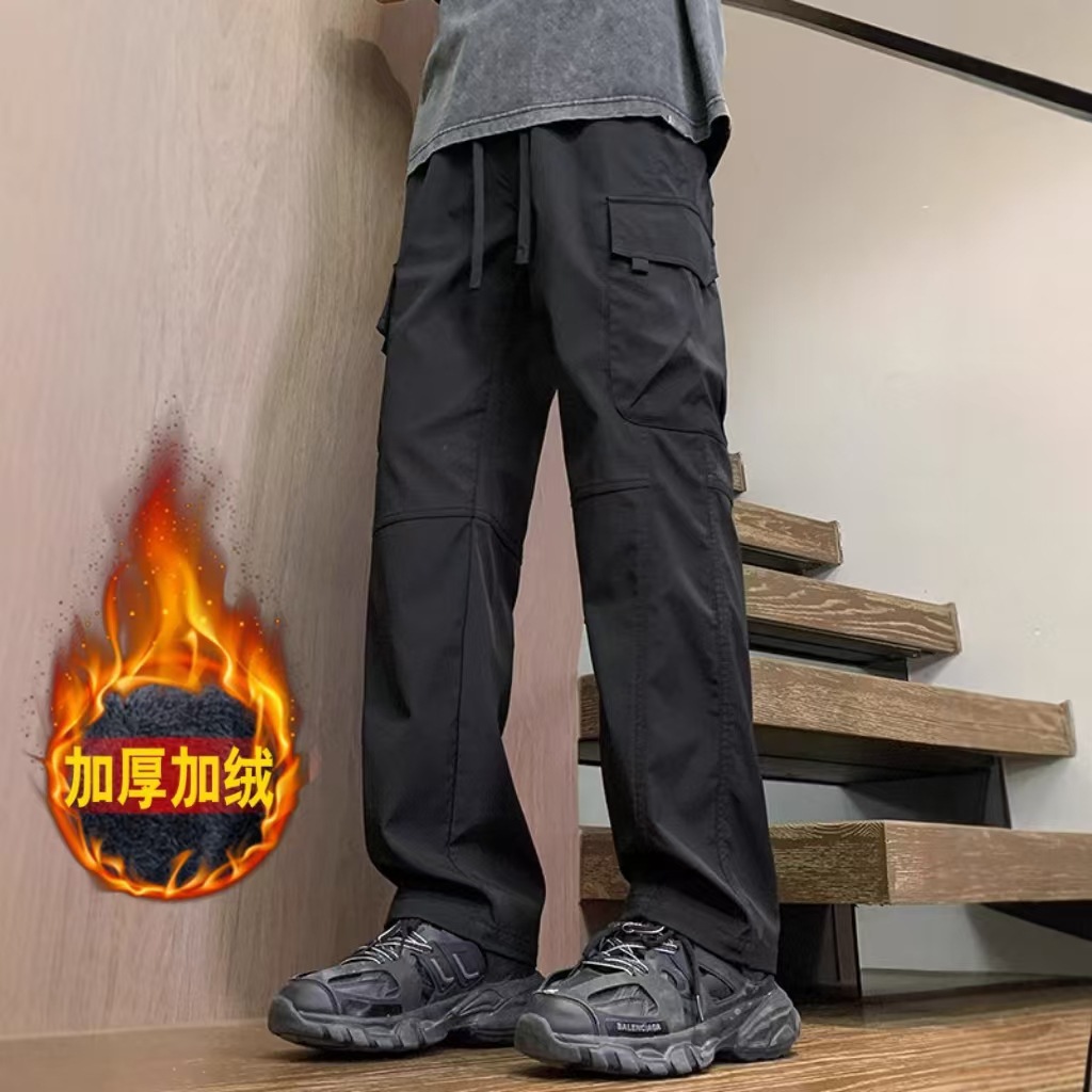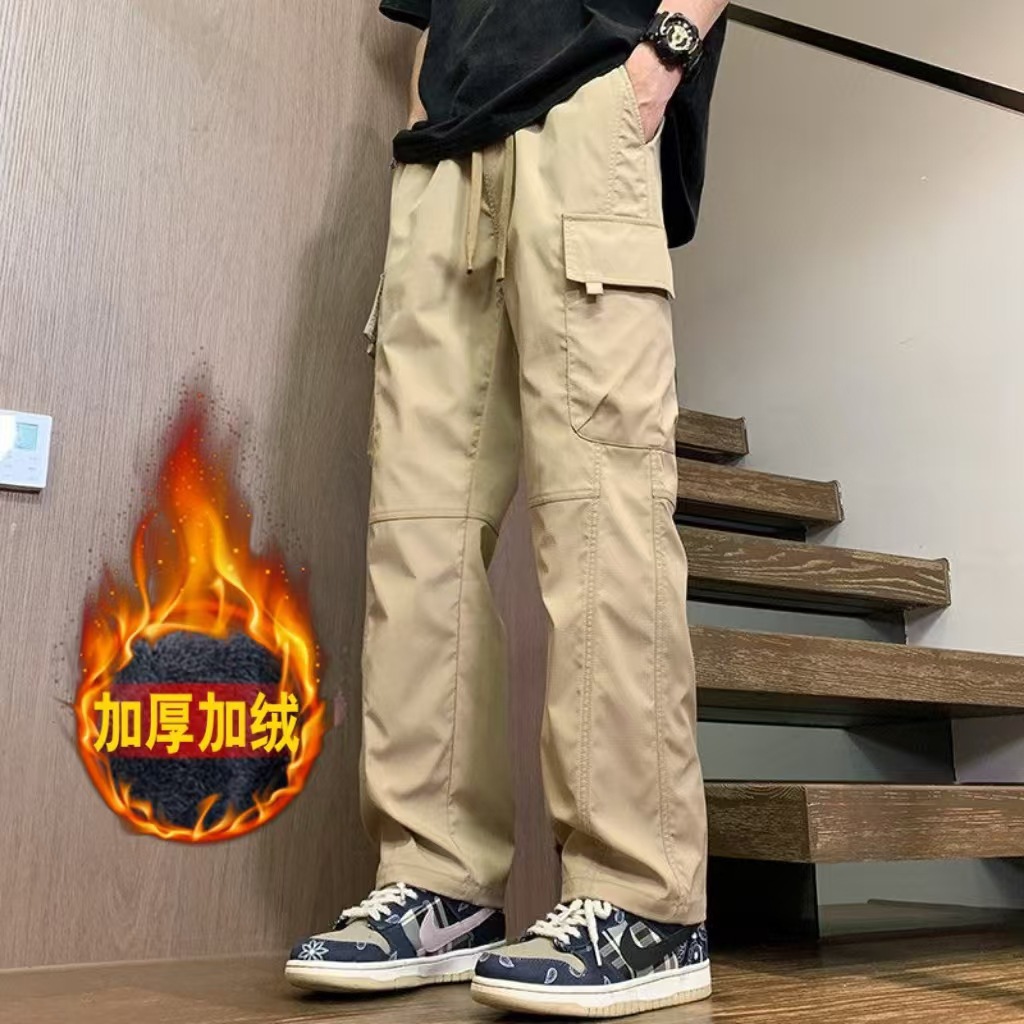 秋冬男士美式复古时尚百搭加绒工装裤男潮流运动直筒户外冲锋长裤