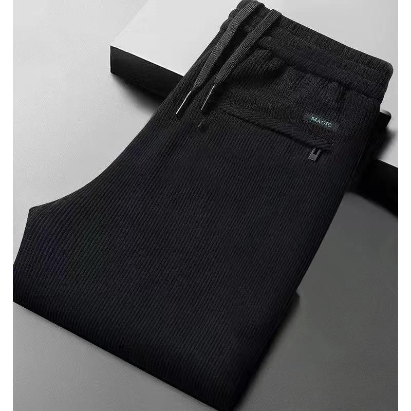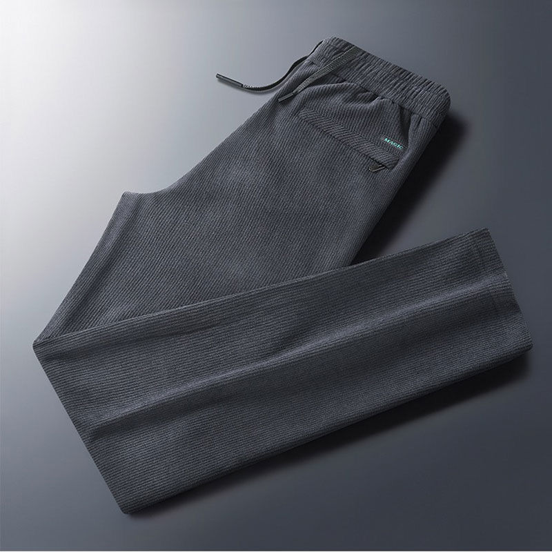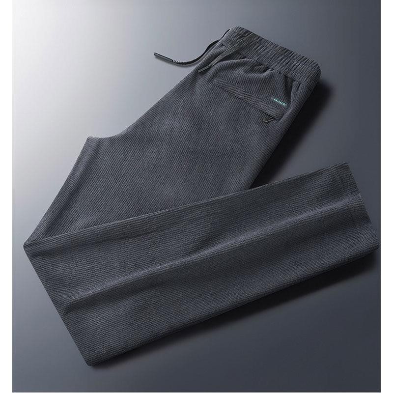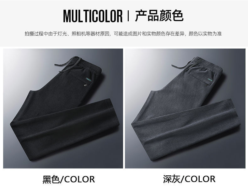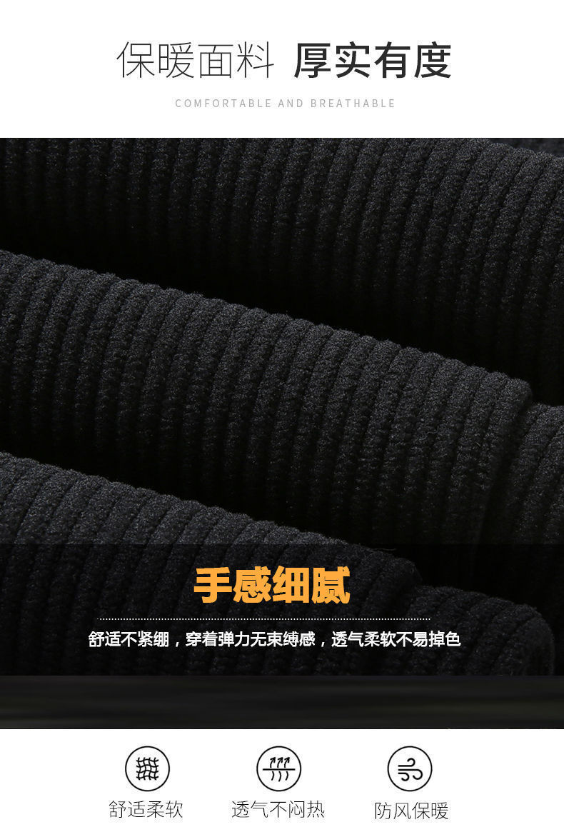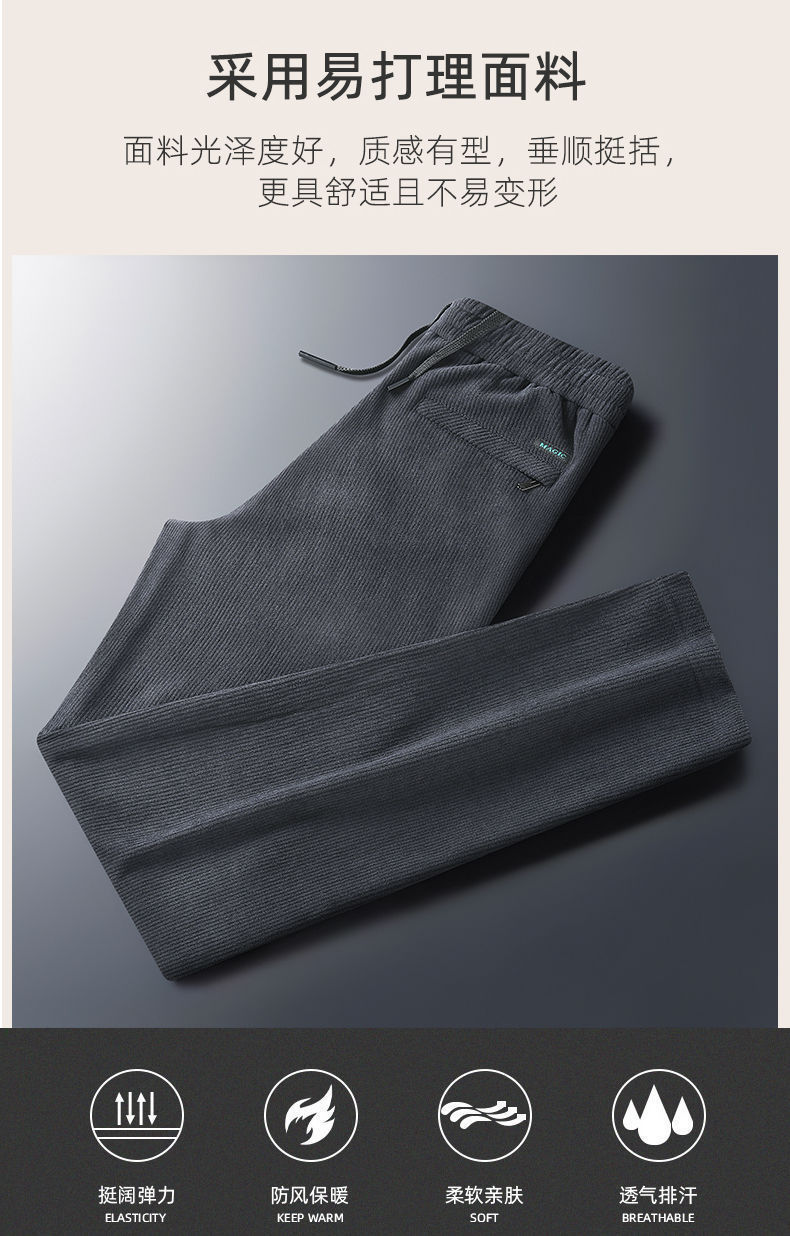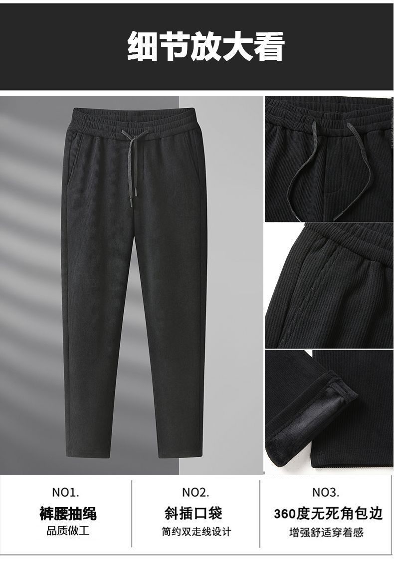 秋冬季加绒加厚灯芯绒男士休闲直筒裤宽松条纹裤中年爸爸男长裤子