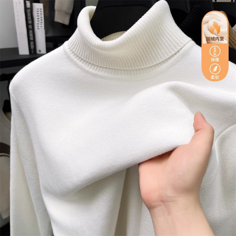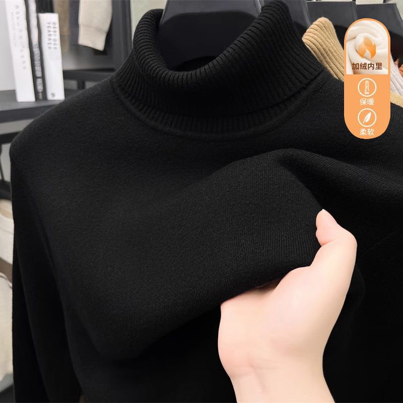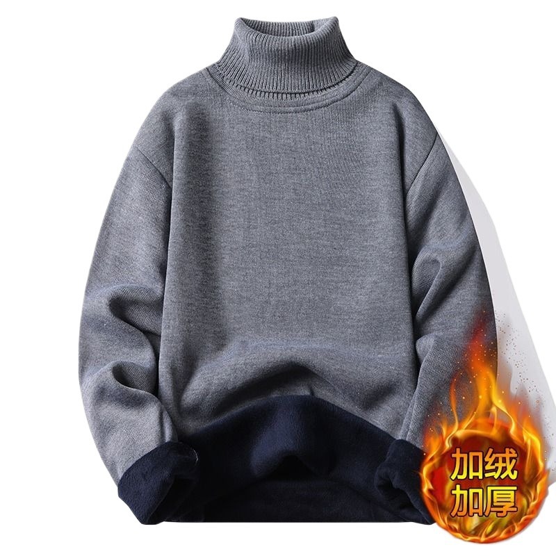 淘宝爆款加绒高领毛衣男爸爸新款冬季纯色加厚保暖针织打底毛线衫