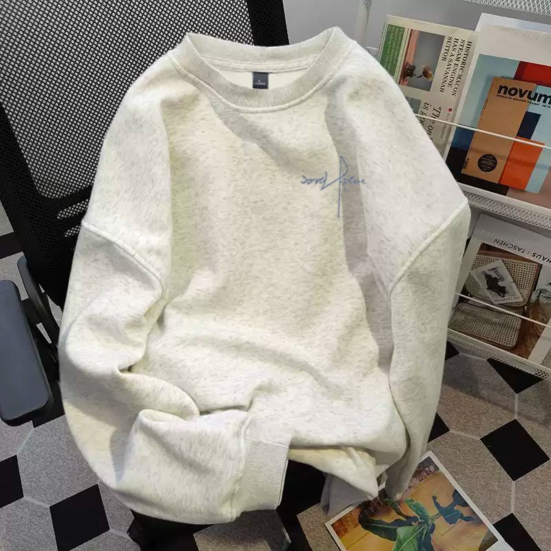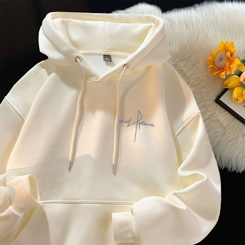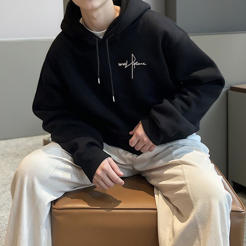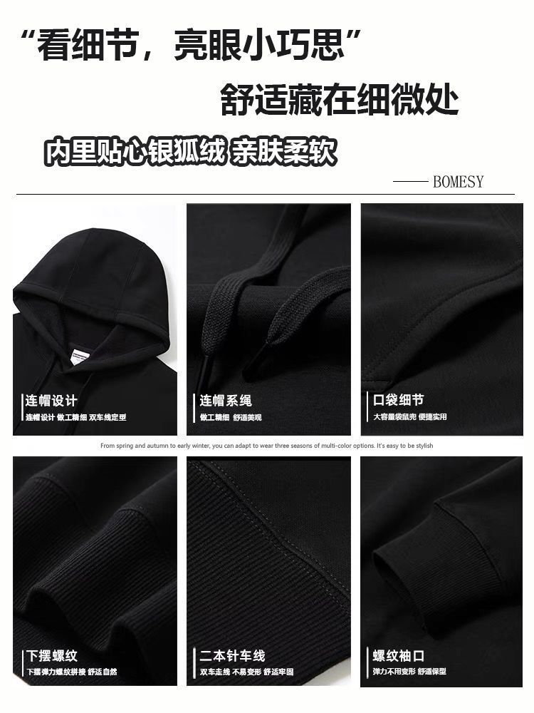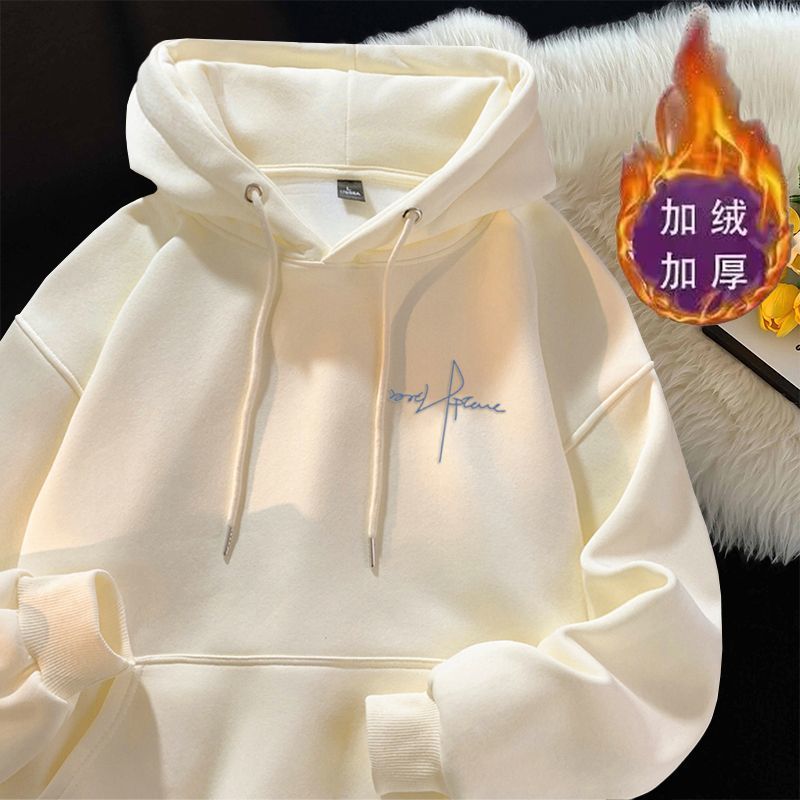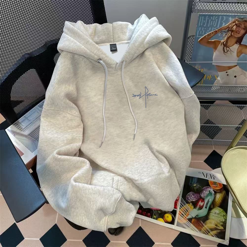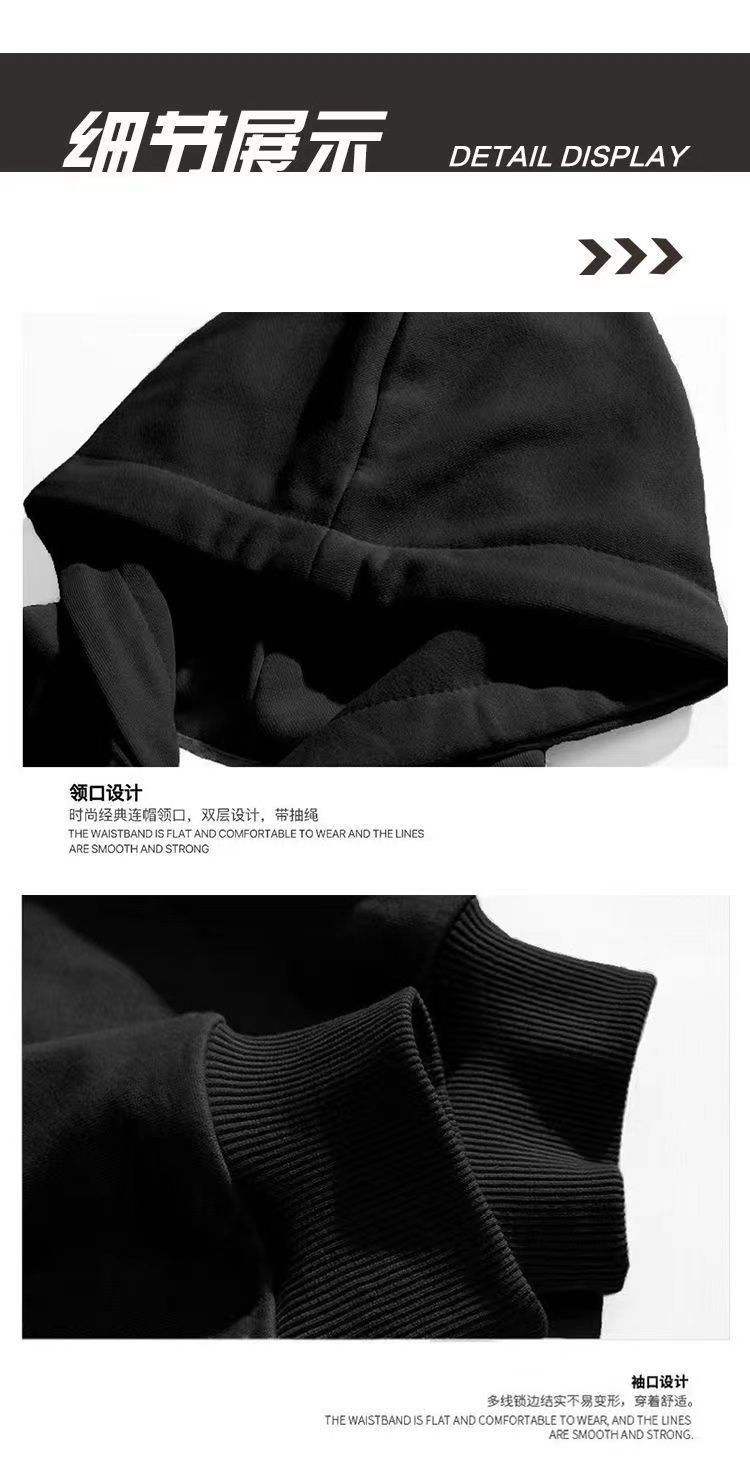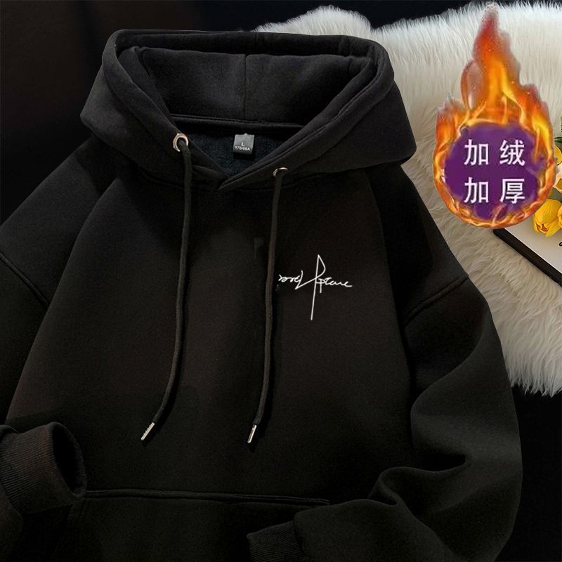 连帽卫衣男款秋冬季加绒加厚百搭潮牌灰色字母美式上衣服外套男士