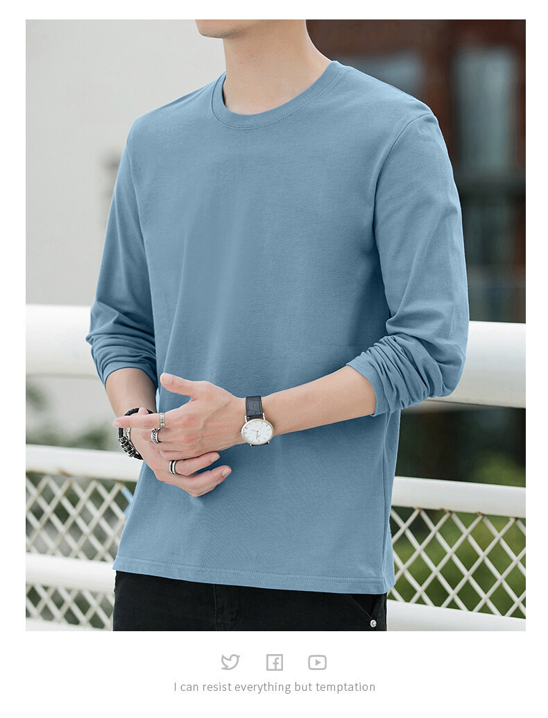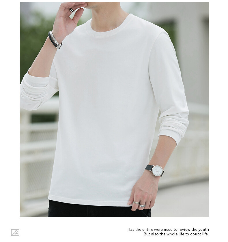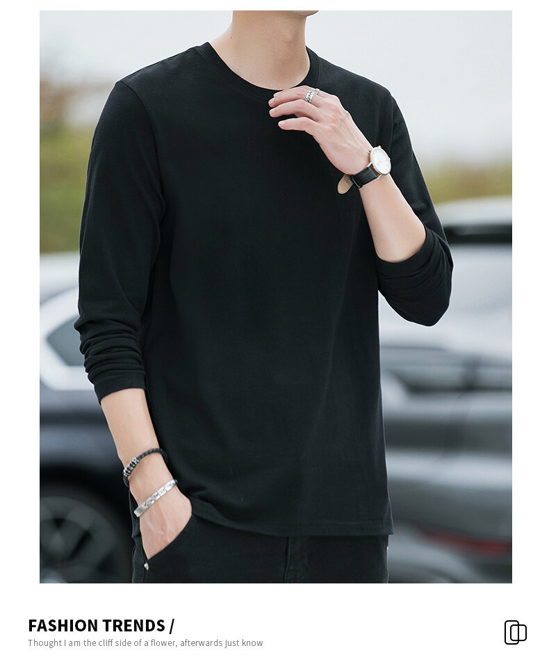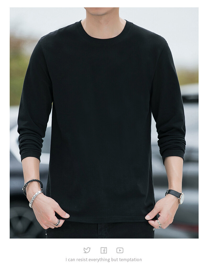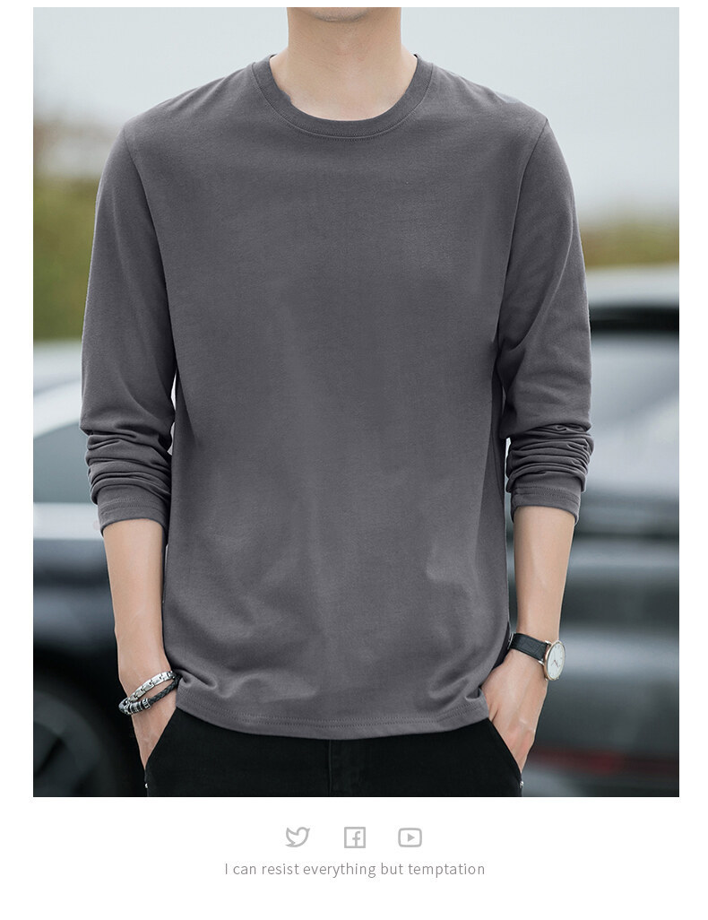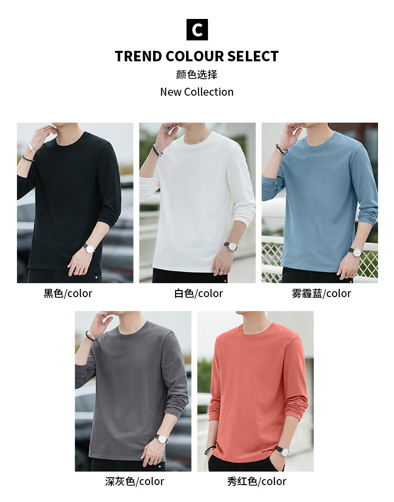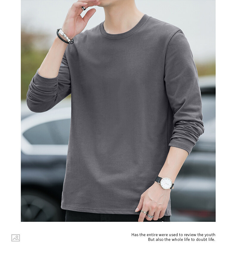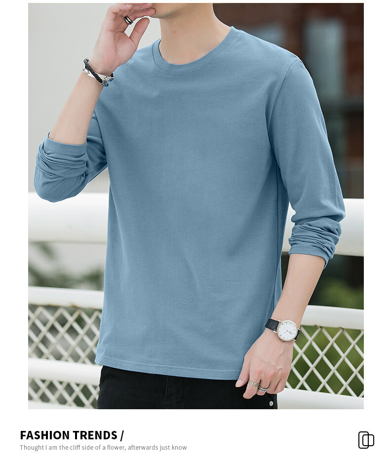 新品纯棉长袖T恤男士秋季休闲圆领内搭上衣体恤薄款打底衫卫衣