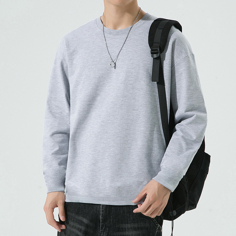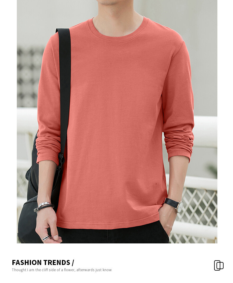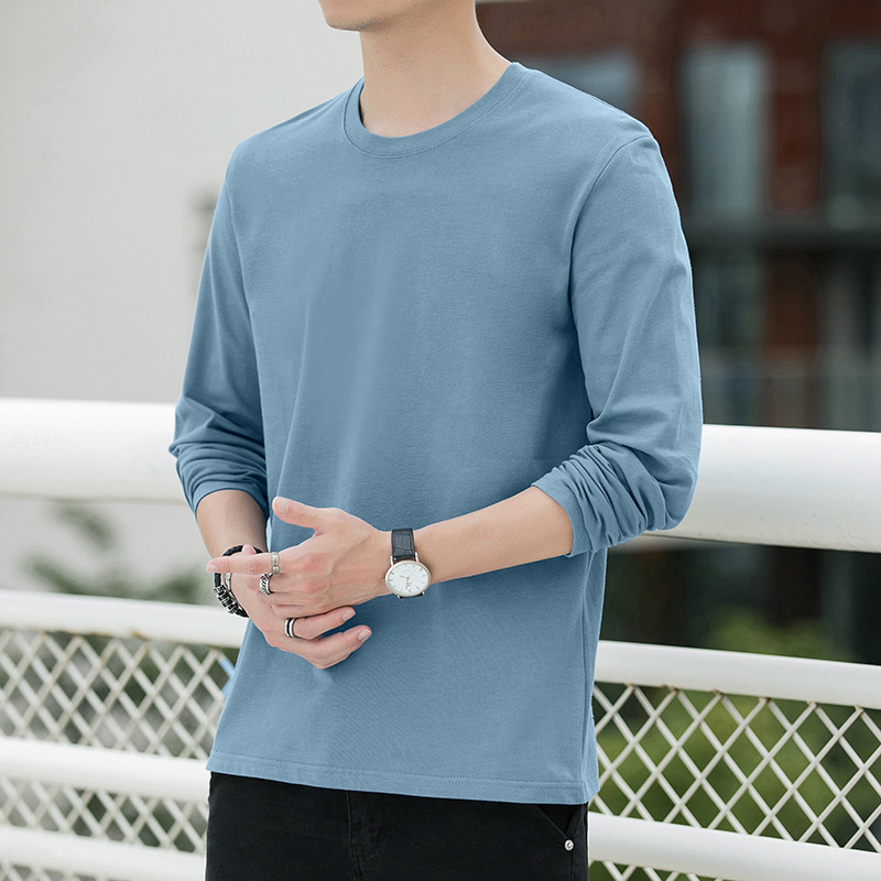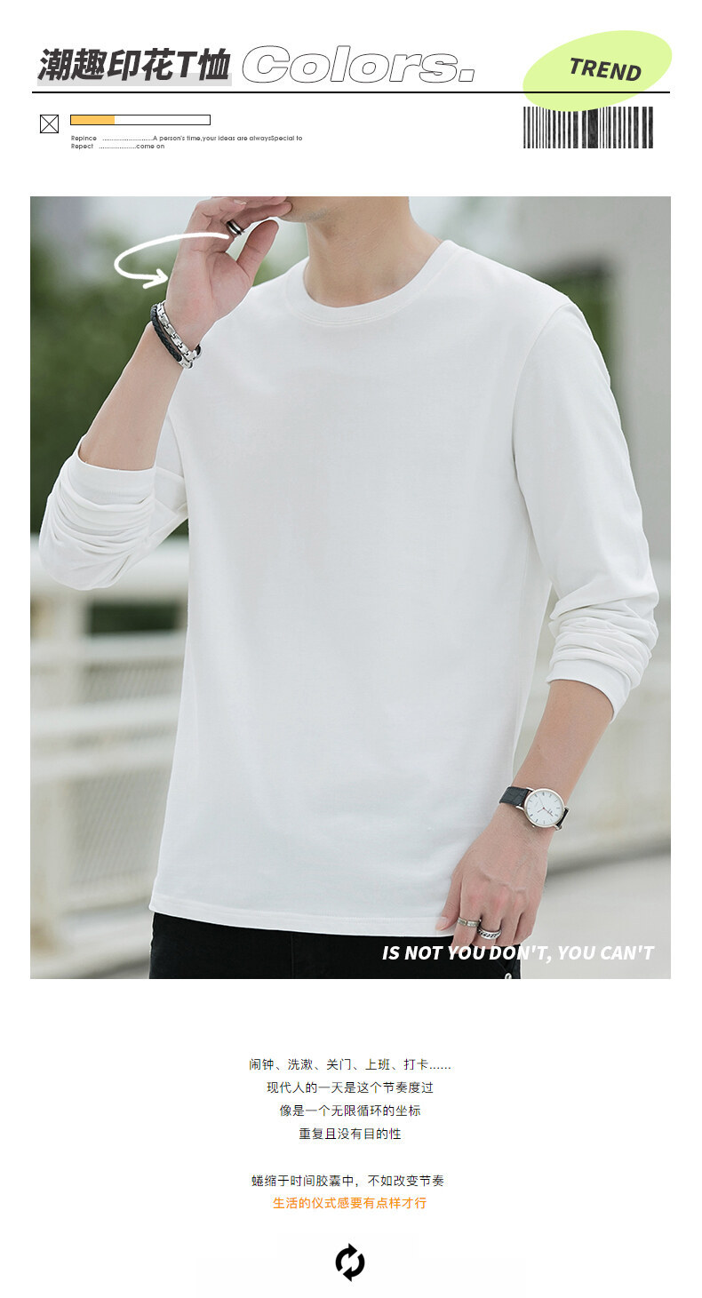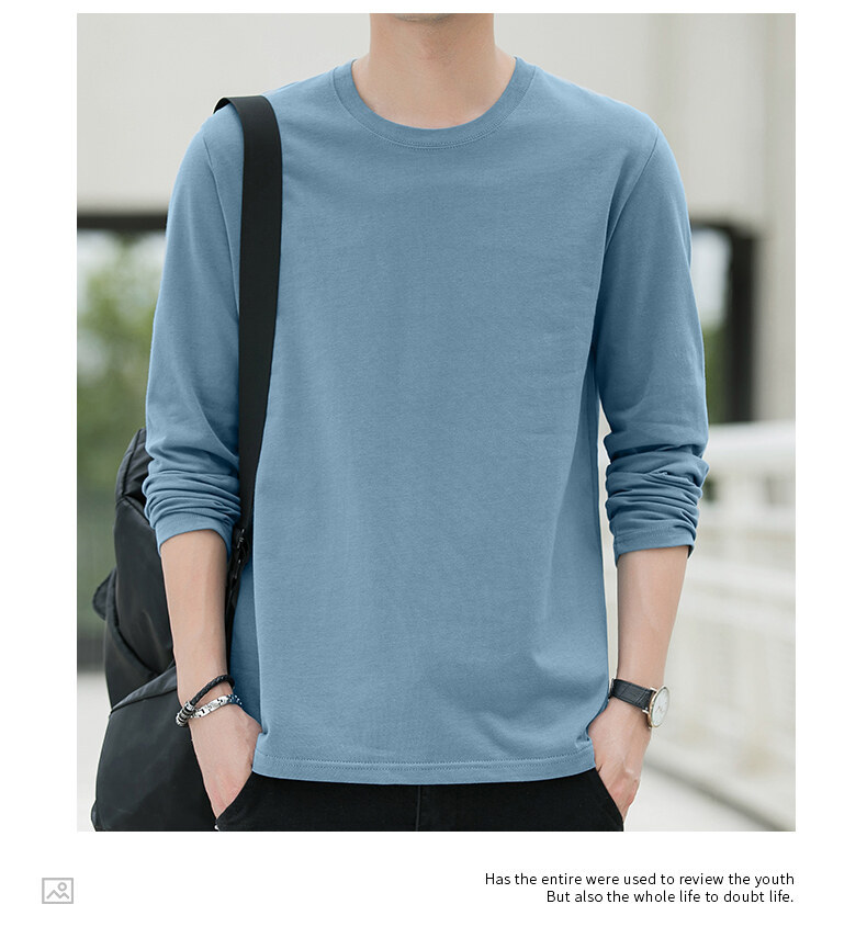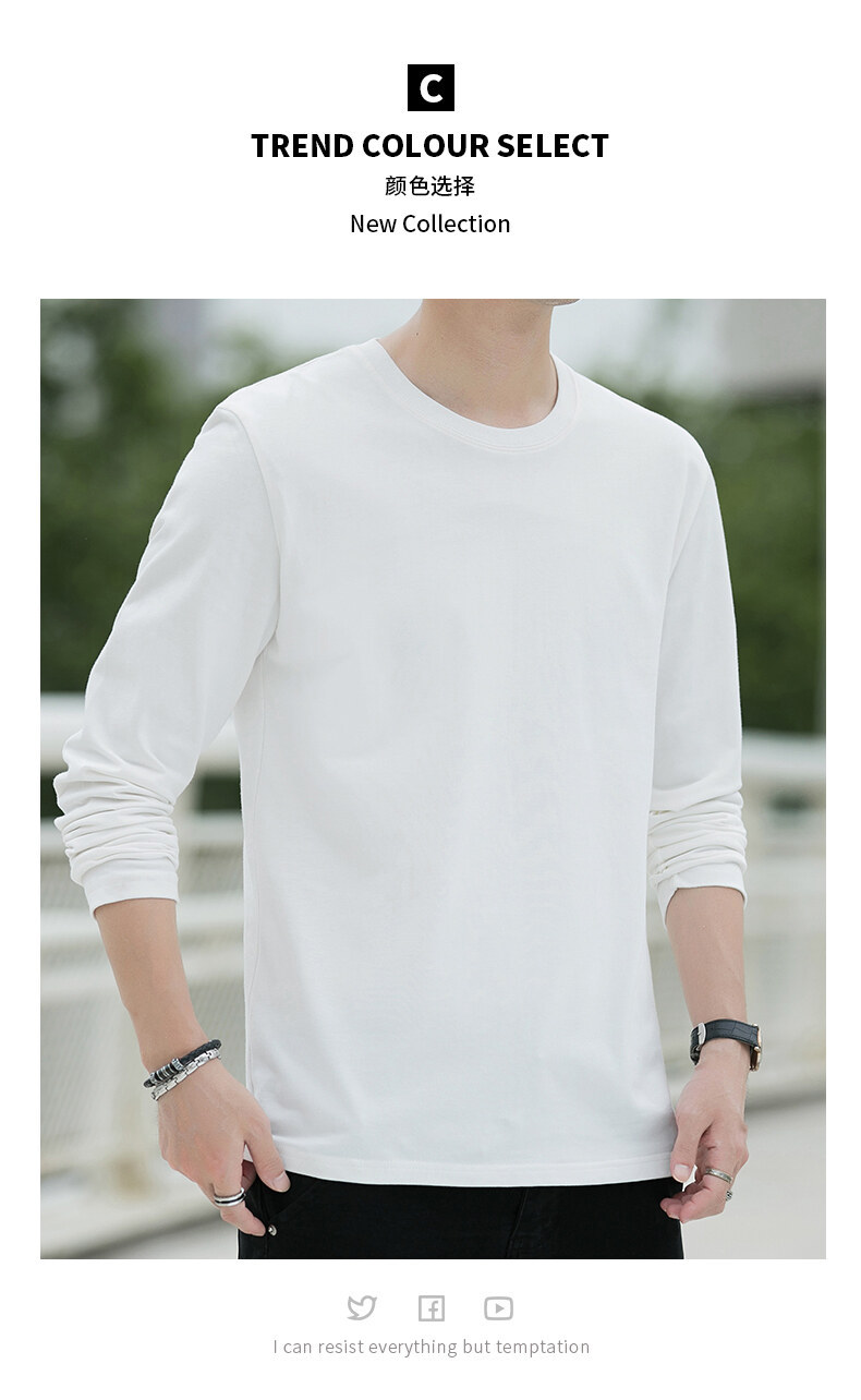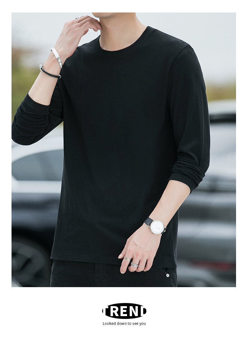 新品纯棉长袖T恤男士秋季休闲圆领内搭上衣体恤薄款打底衫卫衣