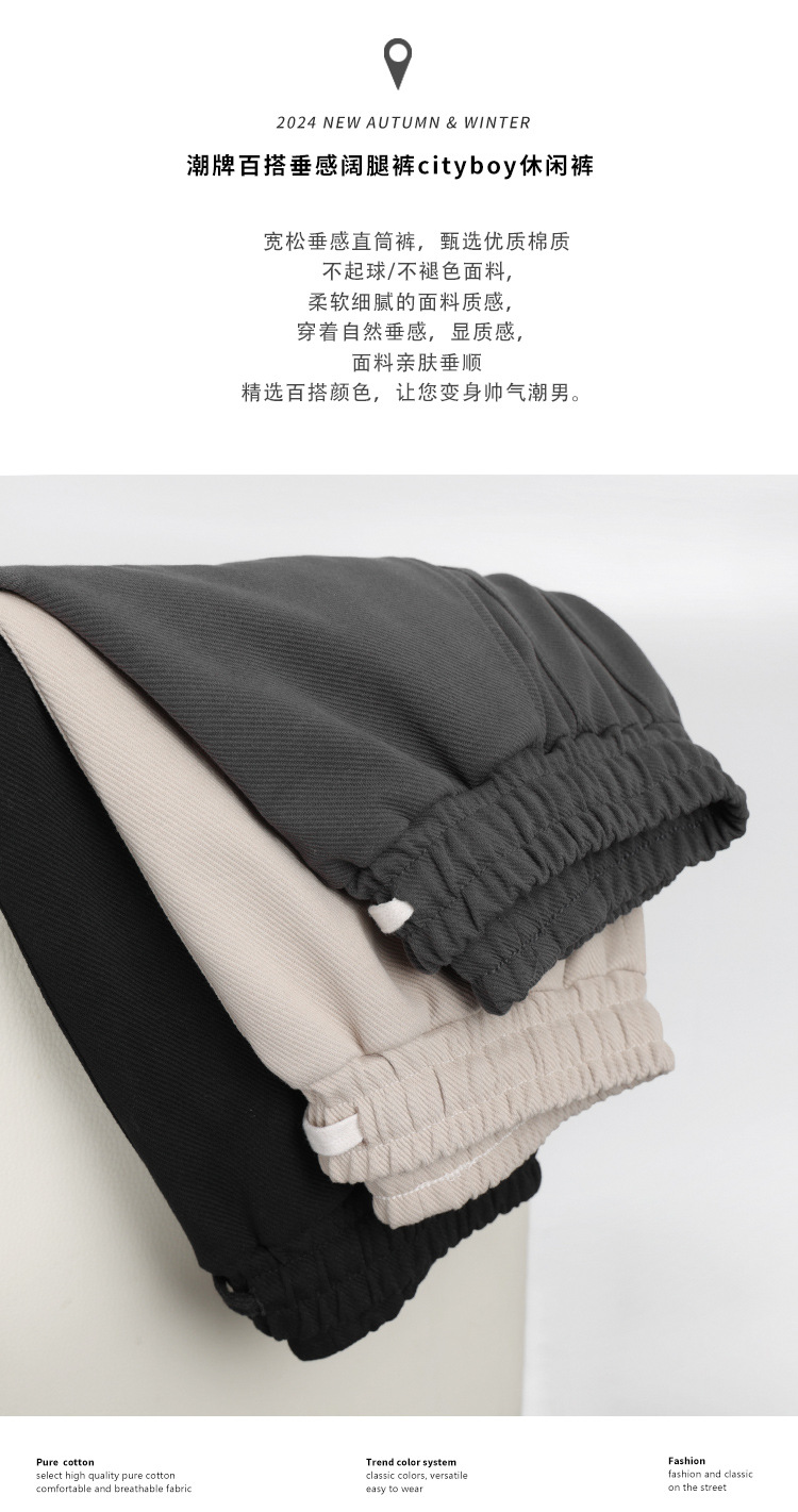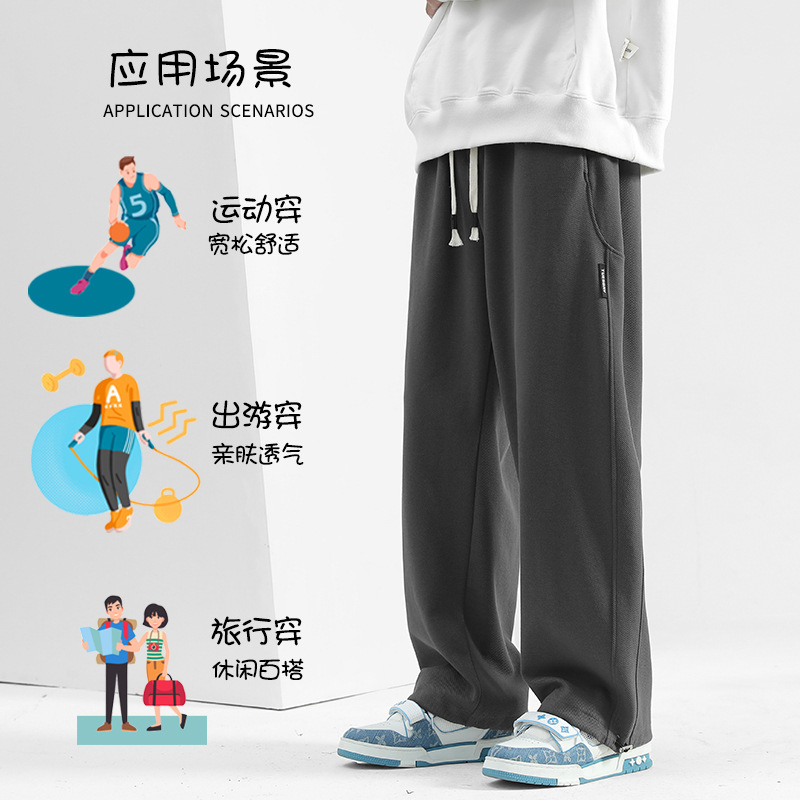 320G美棉直筒裤男秋季垂感男生裤子宽松休闲裤阔腿运动裤男款卫裤