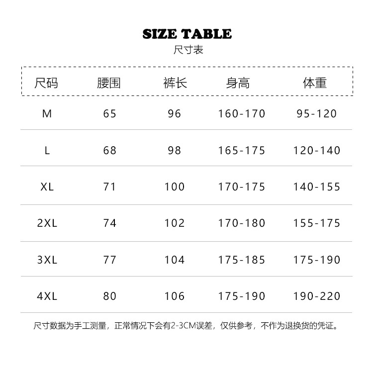 | 3XL 155至175斤可穿 | USD $7.54 | 9959 piece available |