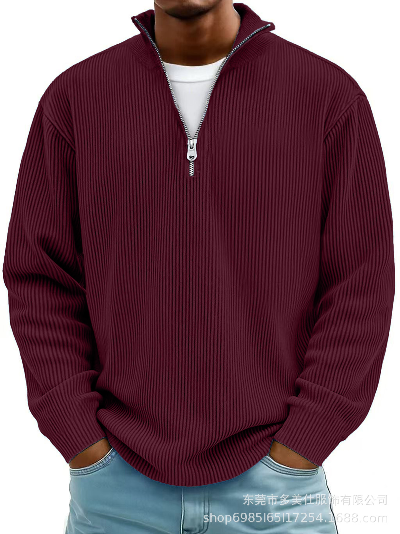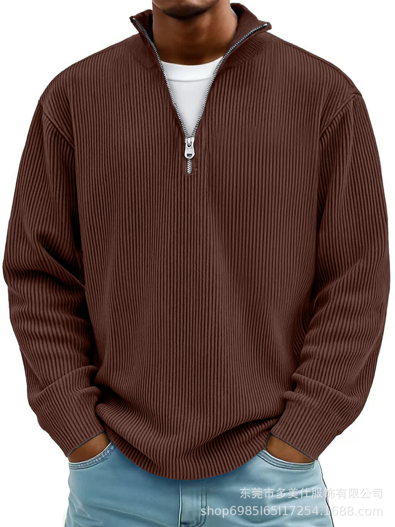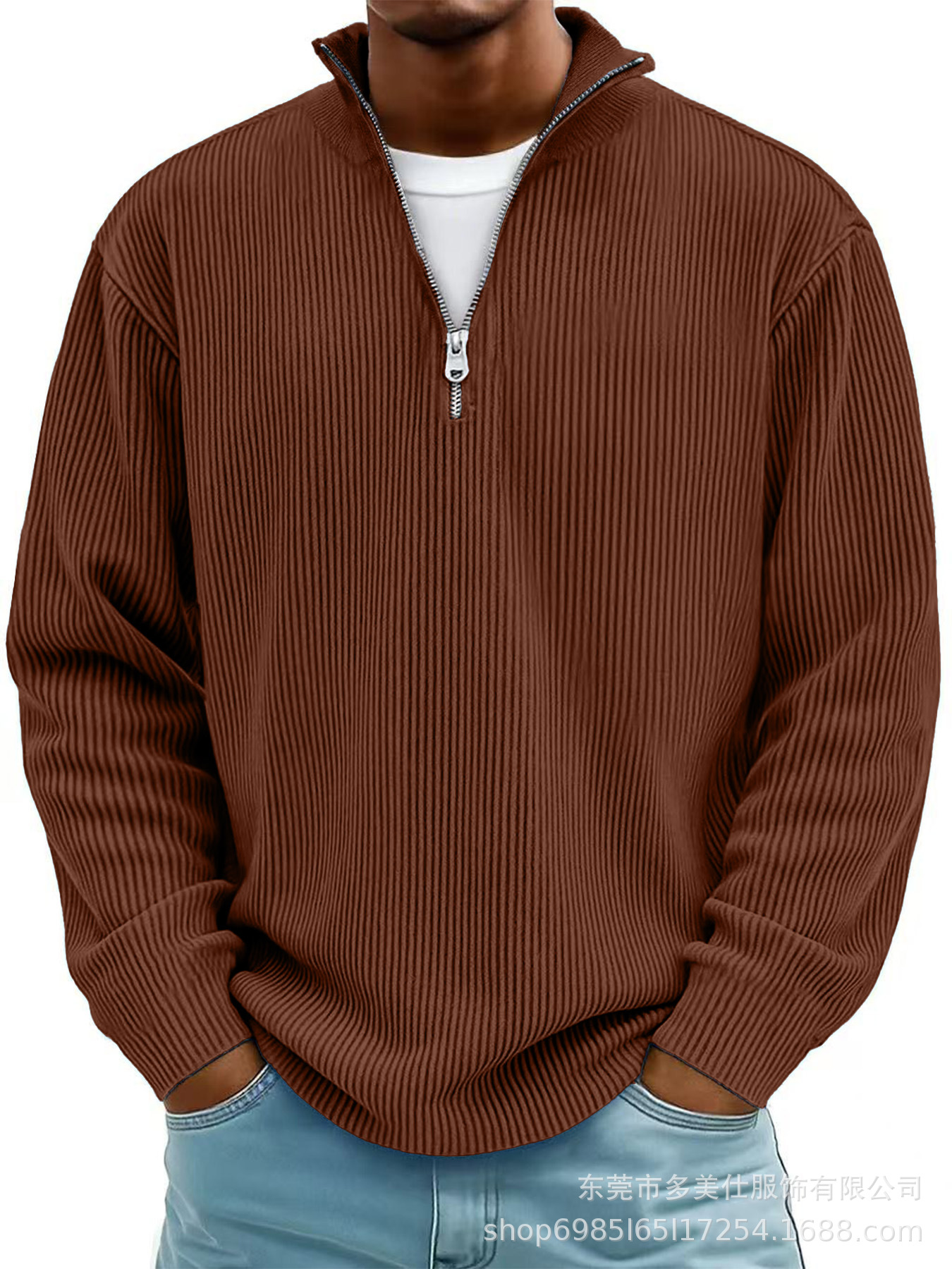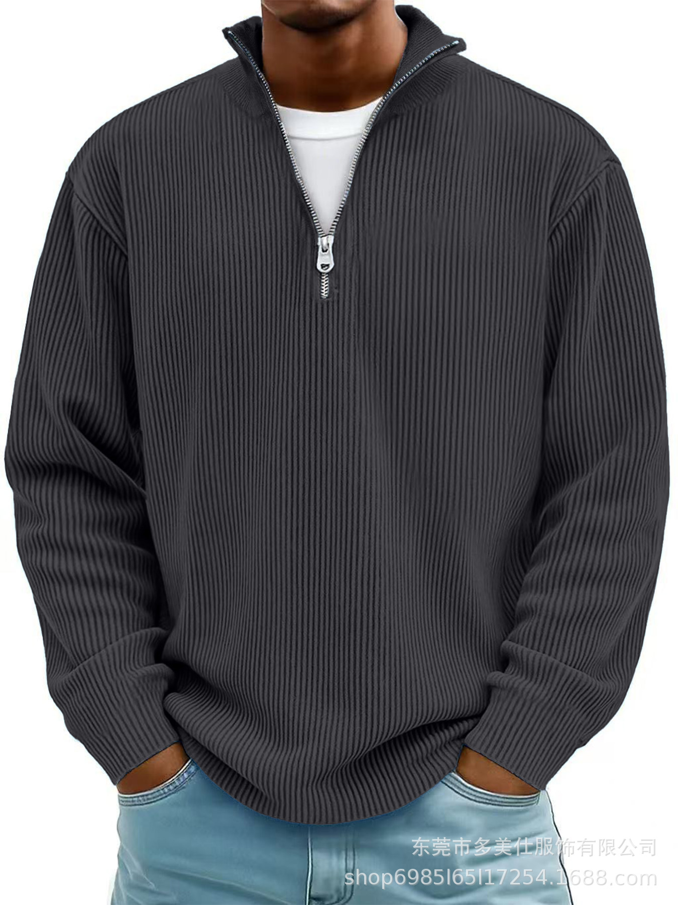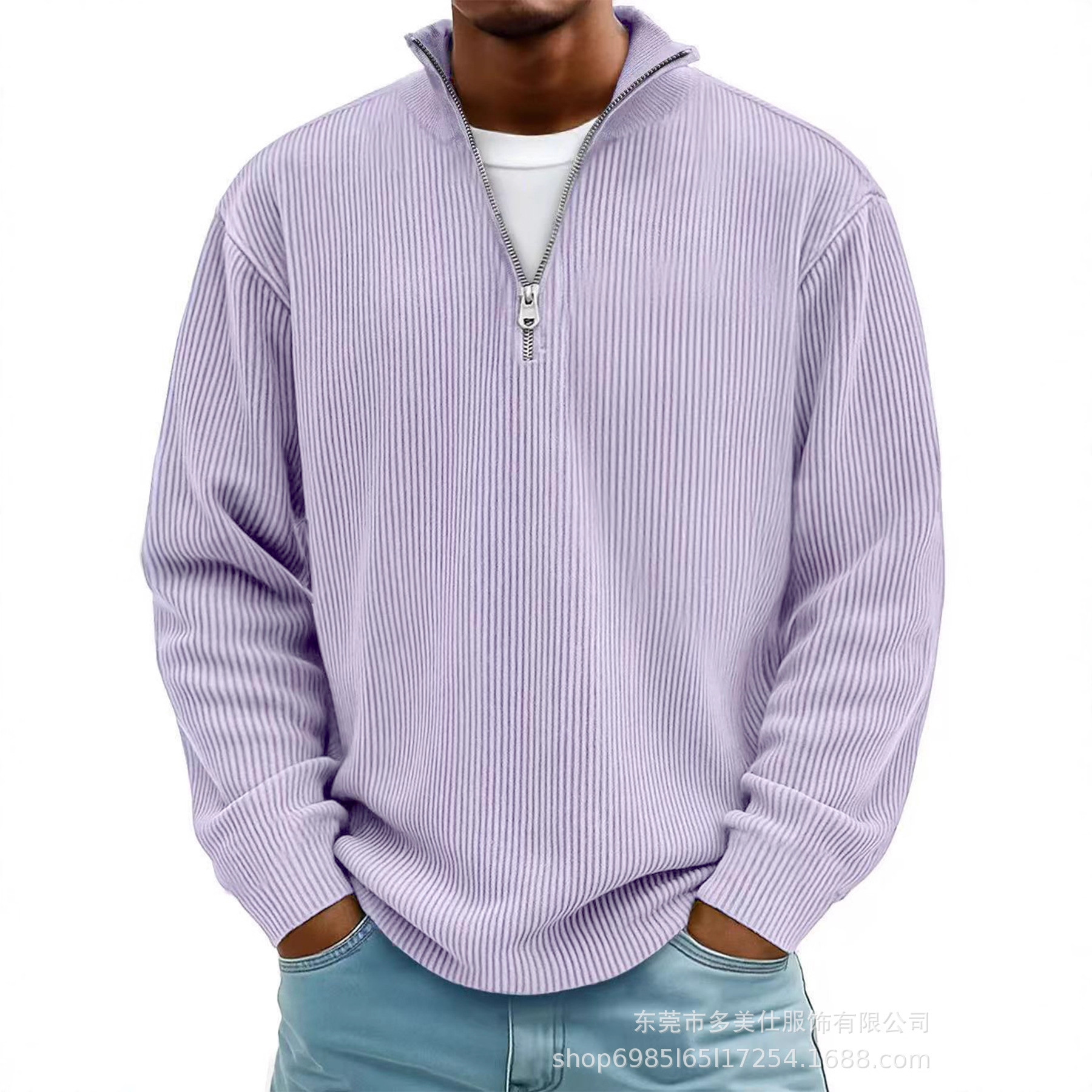 2025欧美秋季新款套头男装休闲上衣立领拉链灯芯绒长袖男士polo衫