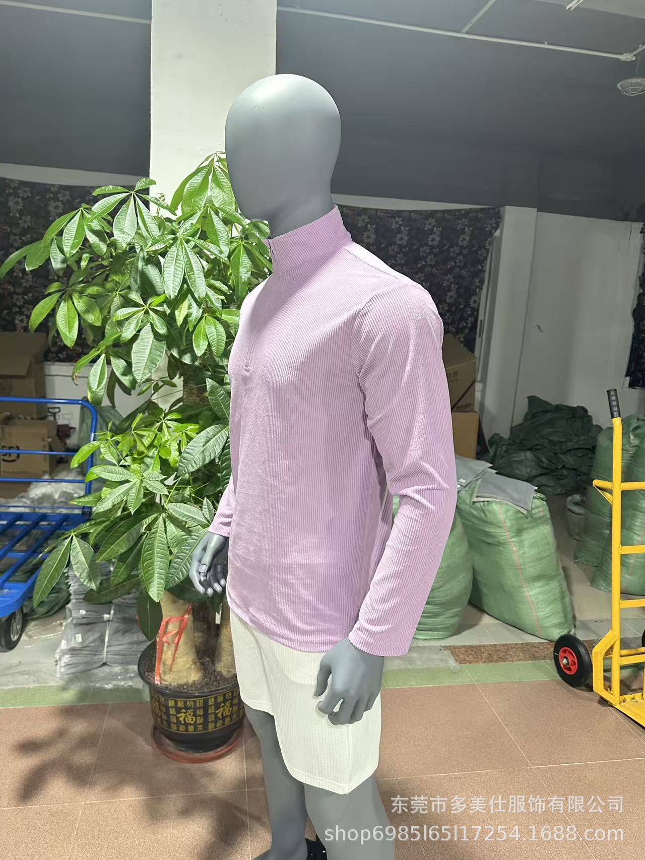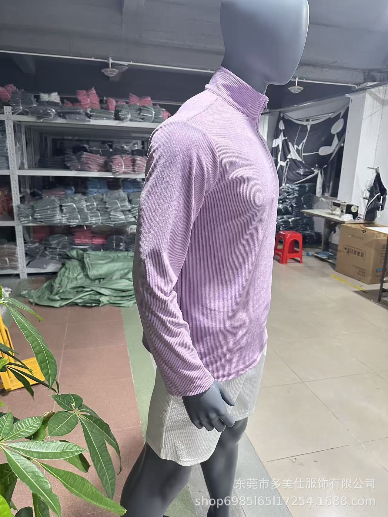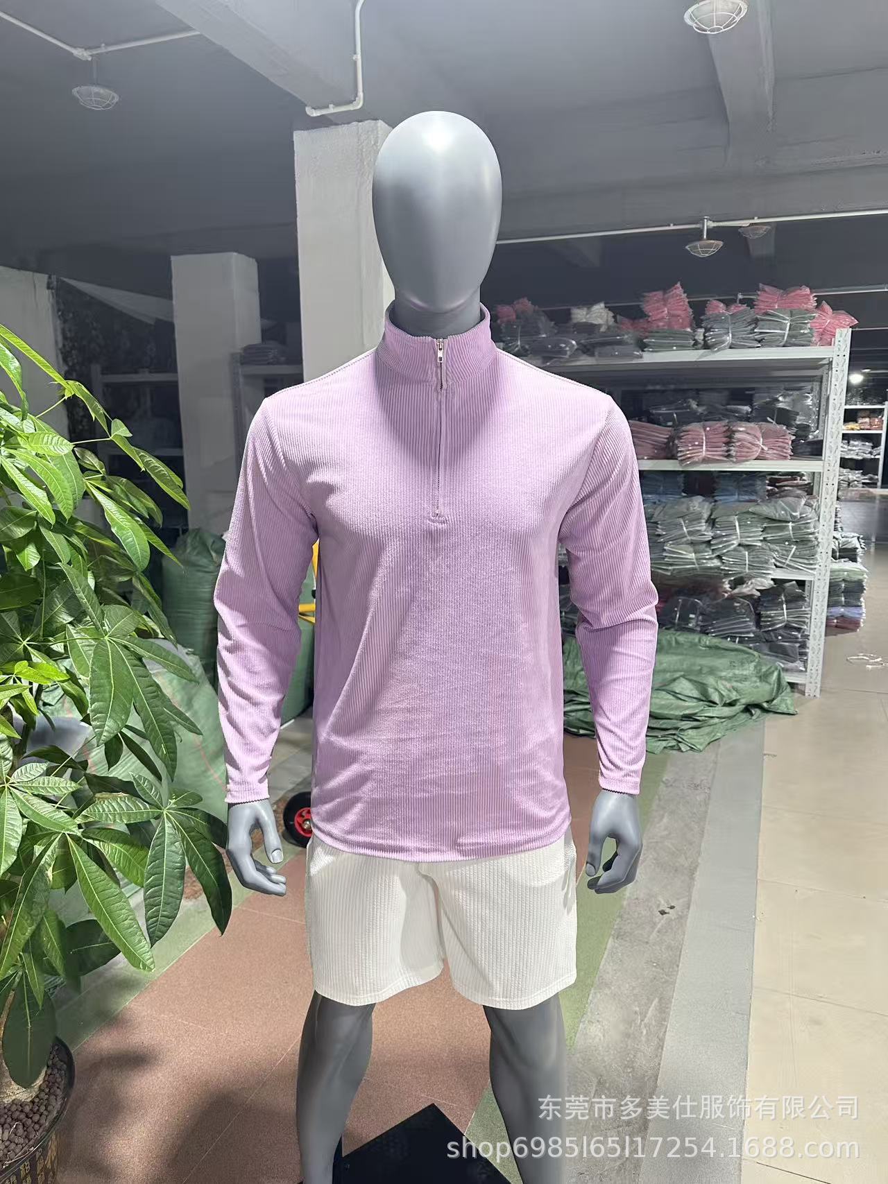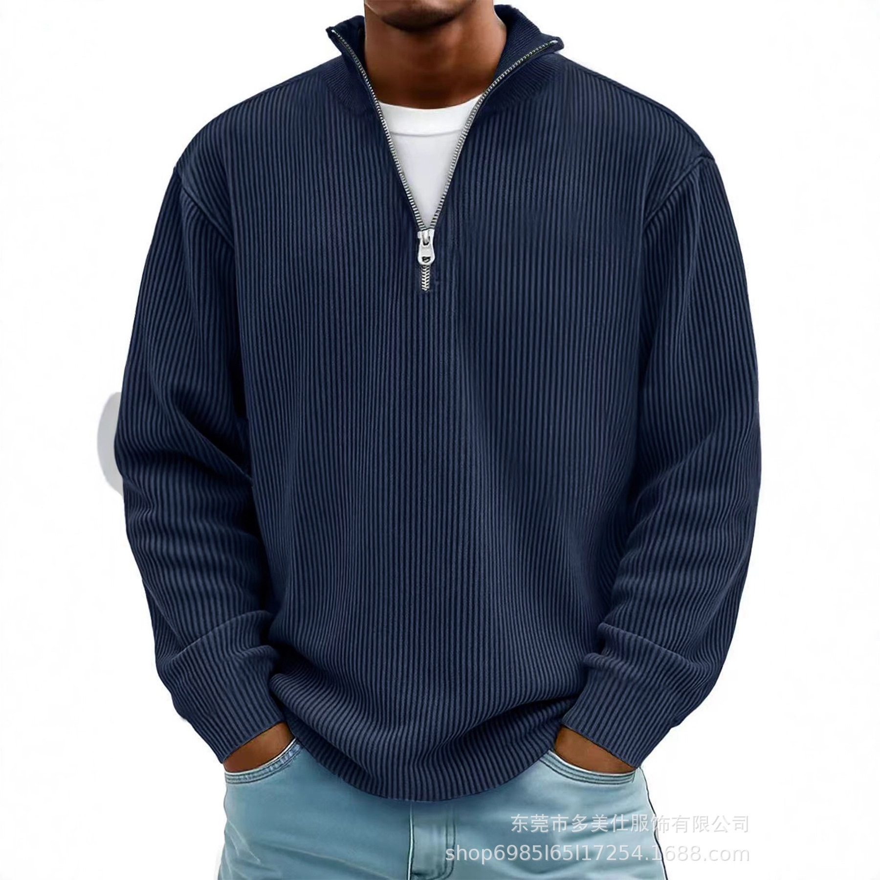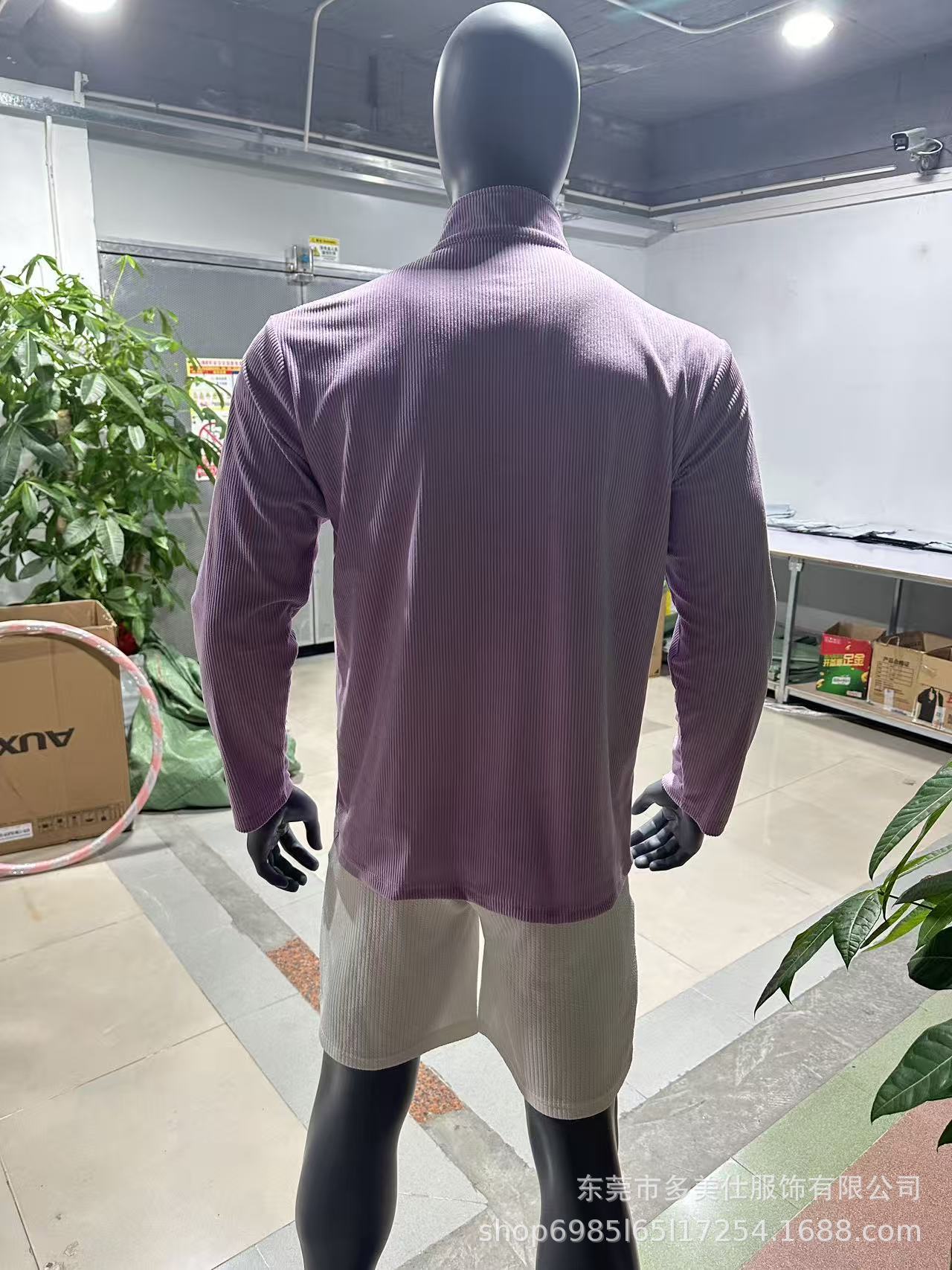 2025欧美秋季新款套头男装休闲上衣立领拉链灯芯绒长袖男士polo衫