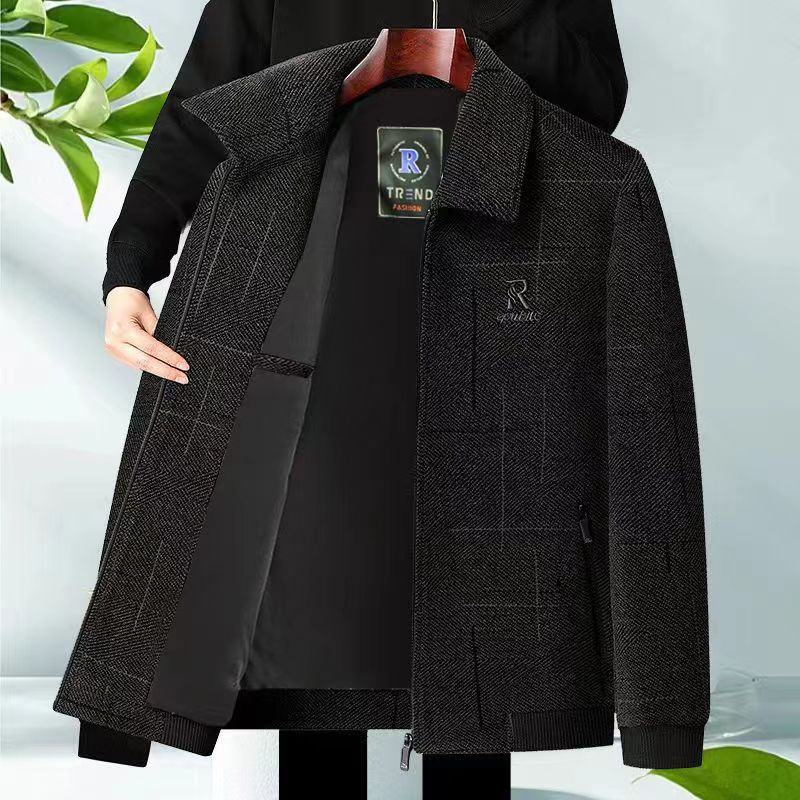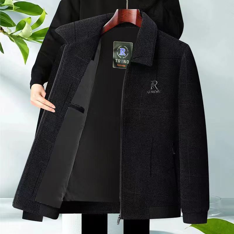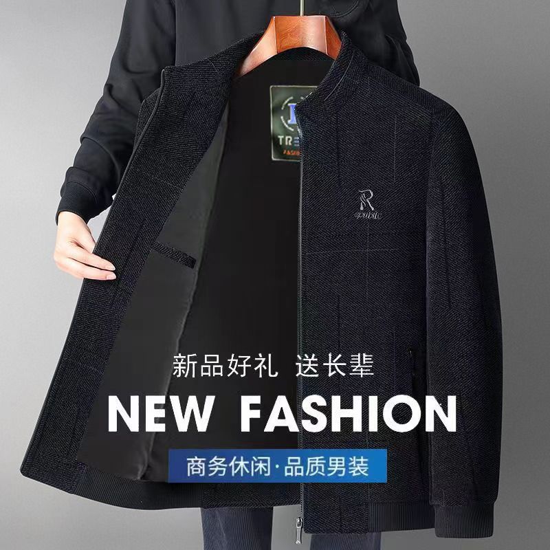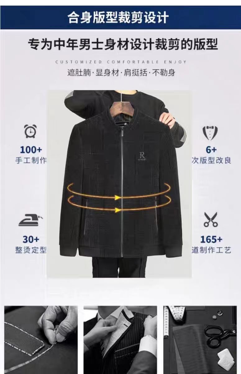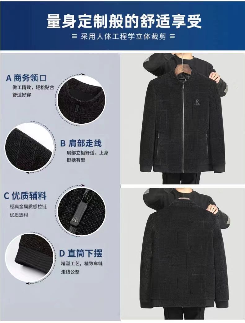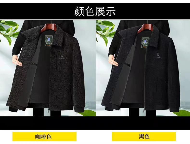 雪尼尔中年夹克50到60岁爸爸春秋款中年男士外套老人宽松加厚外套