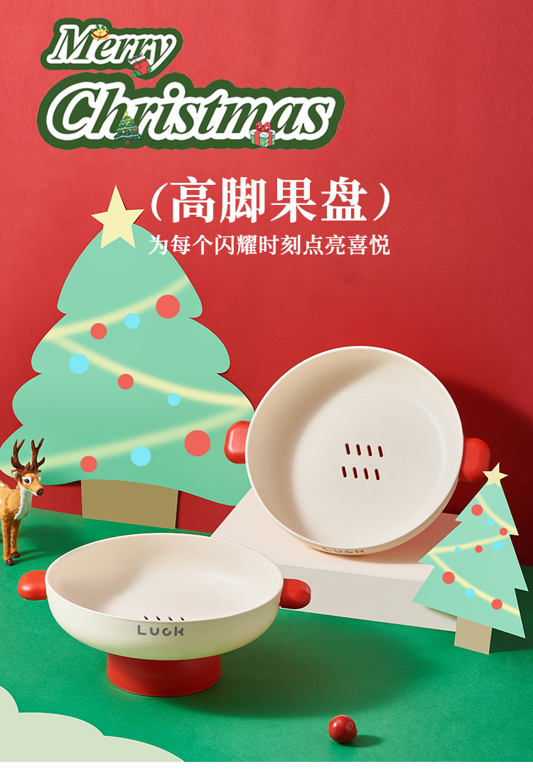 高脚水果盘客厅家用茶几零食摆放盘圣诞沥水果盆轻奢高颜值糖果盘