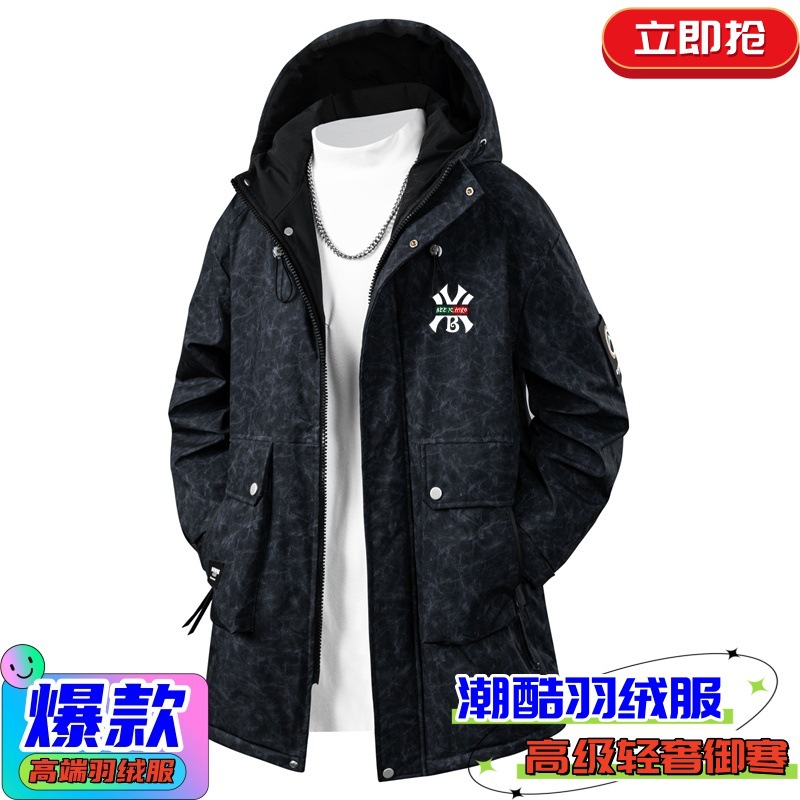 高端潮牌超好看男装冬季新款长款大码羽绒服连帽宽松保暖防寒外套