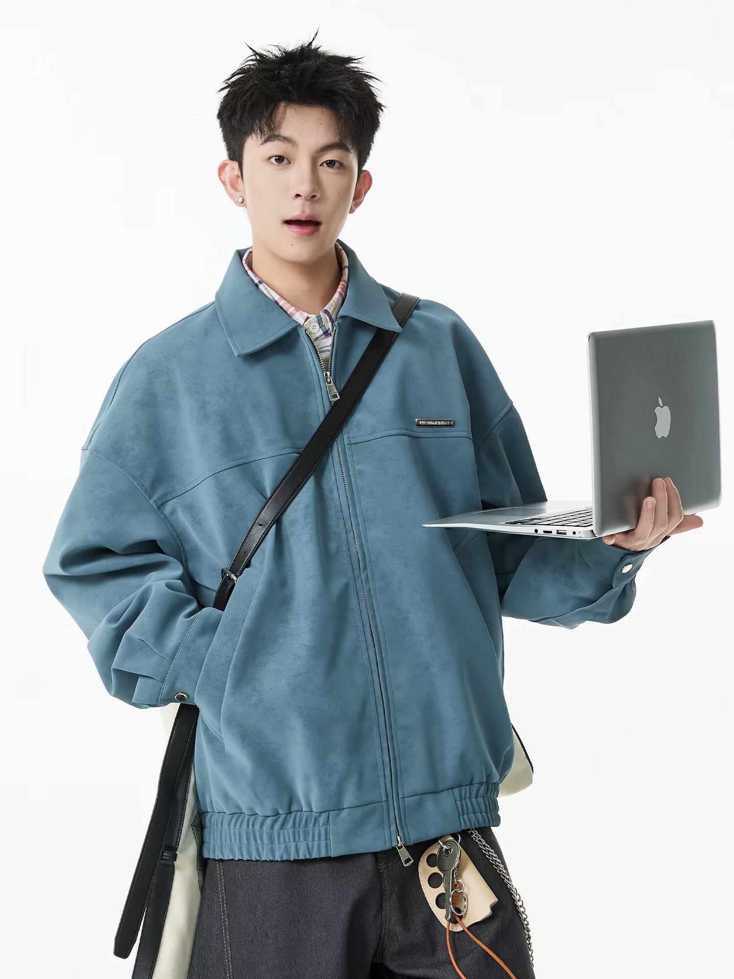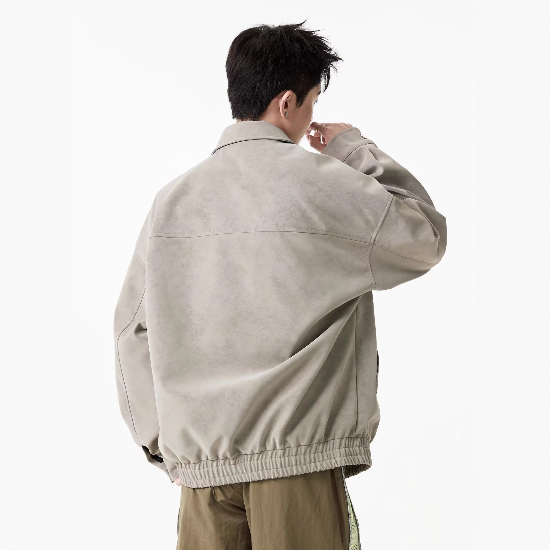 美式复古翻领皮衣外套男士潮流春秋季新款休闲百搭宽松工装皮夹克