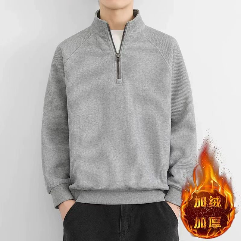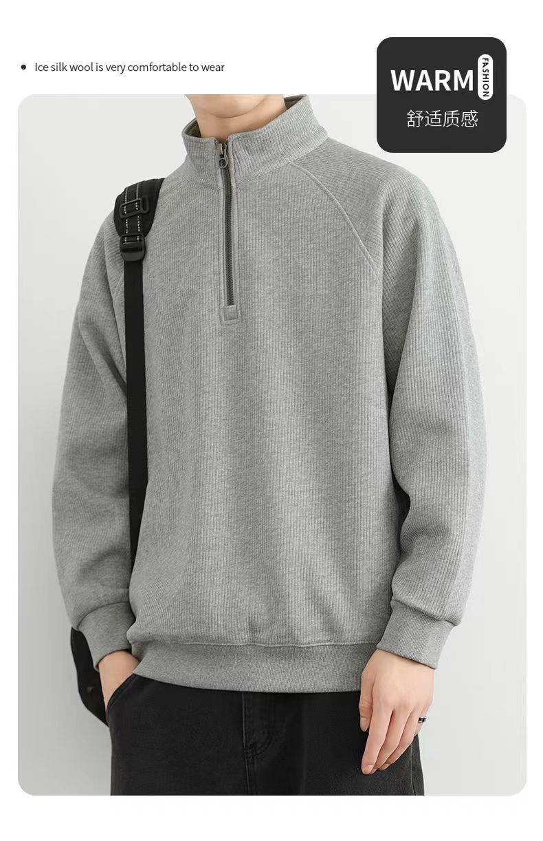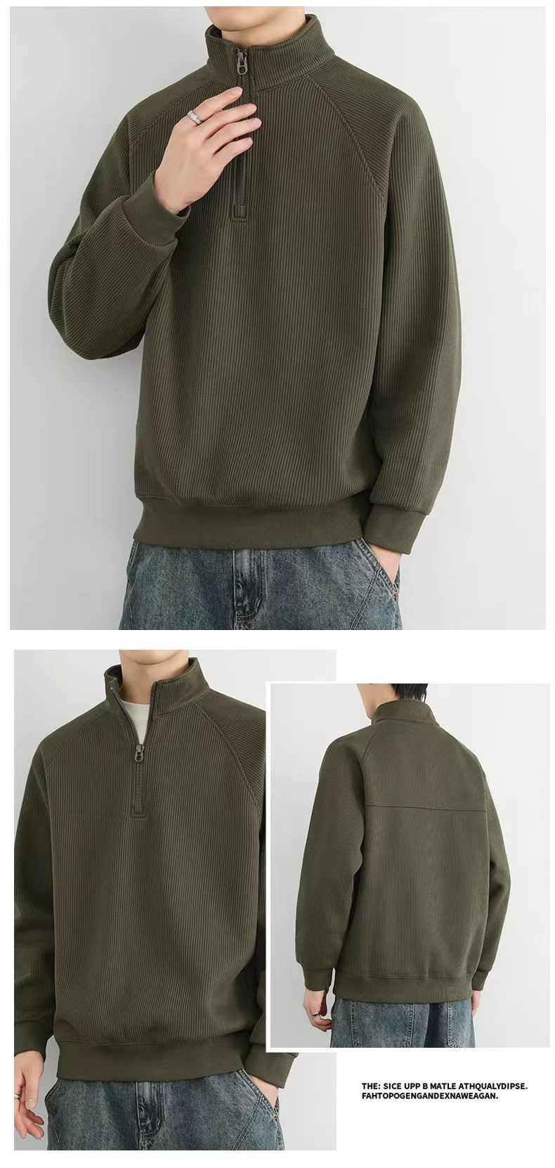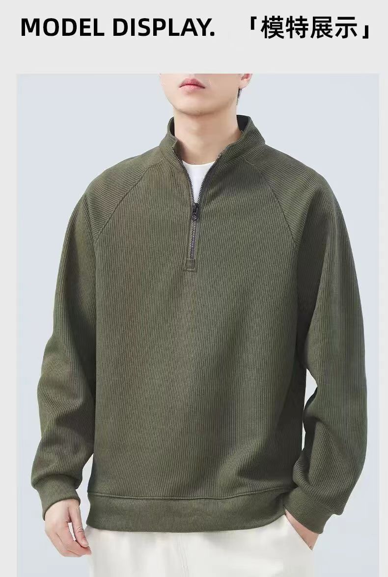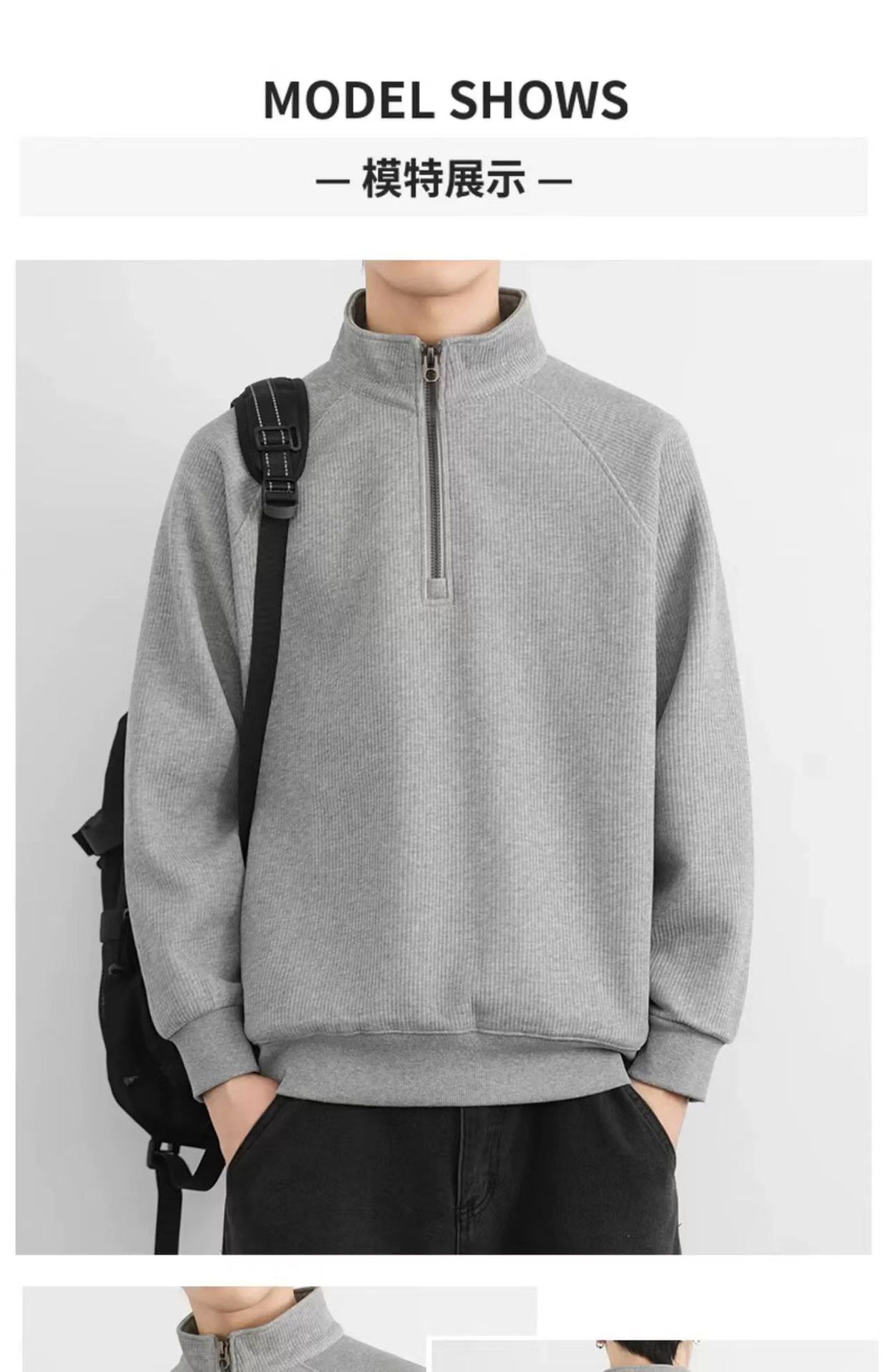 半拉链立领卫衣男士2025年冬季美式复古宽松纯色打底衫外穿休闲外