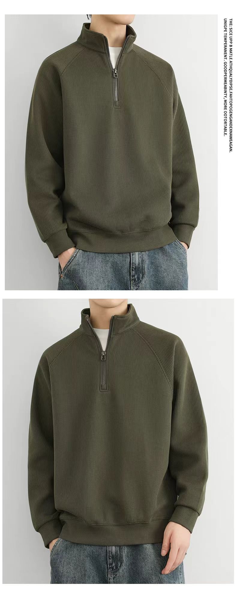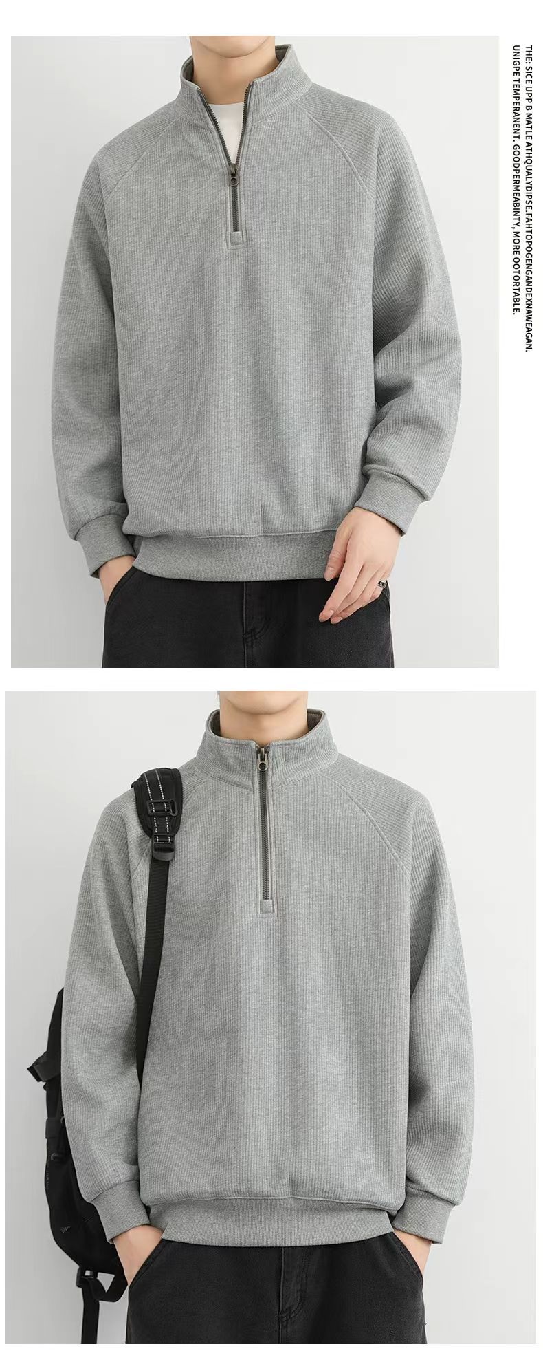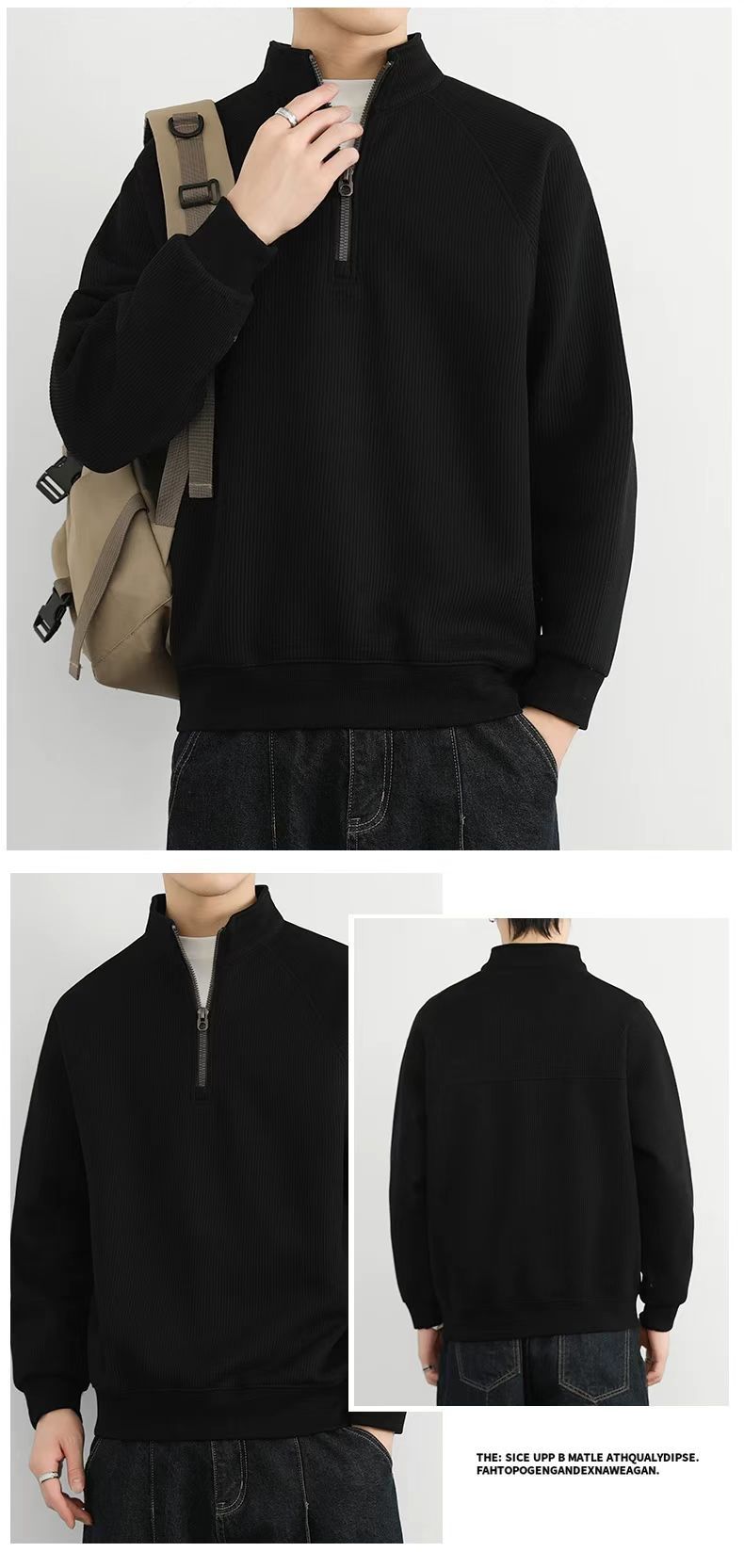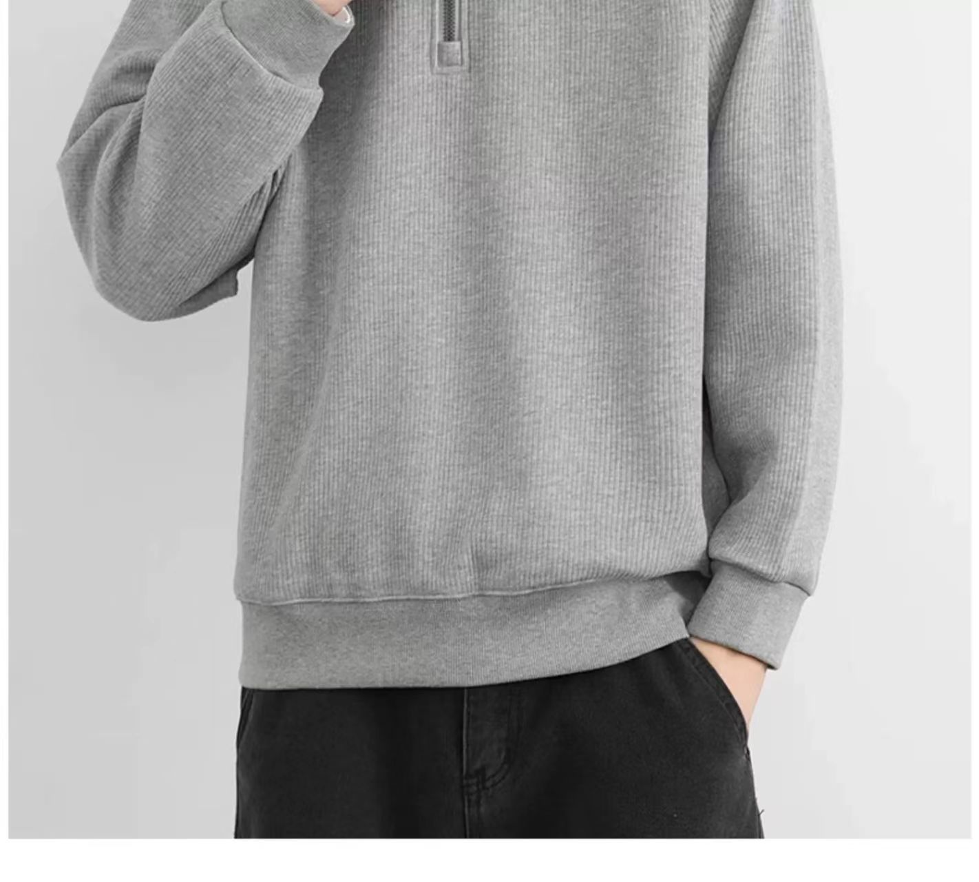 半拉链立领卫衣男士2025年冬季美式复古宽松纯色打底衫外穿休闲外