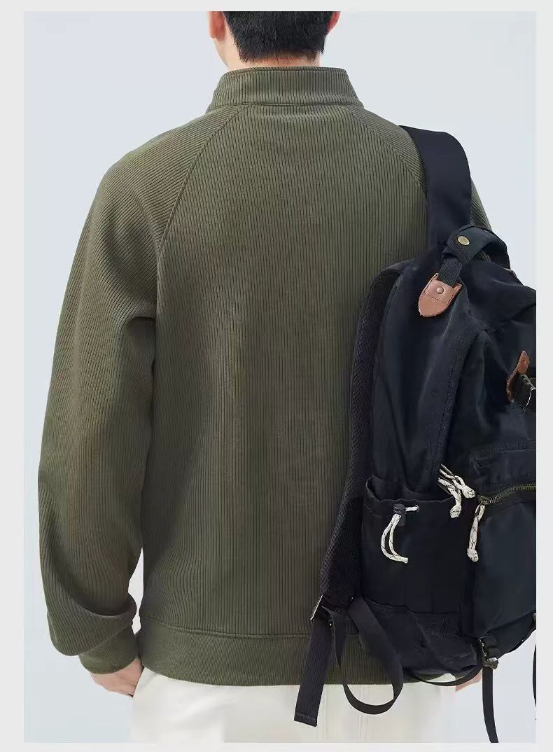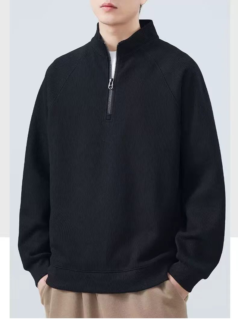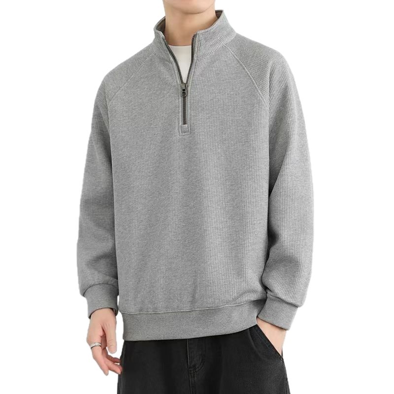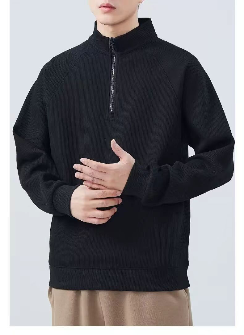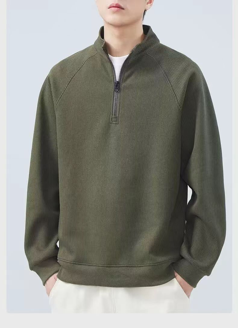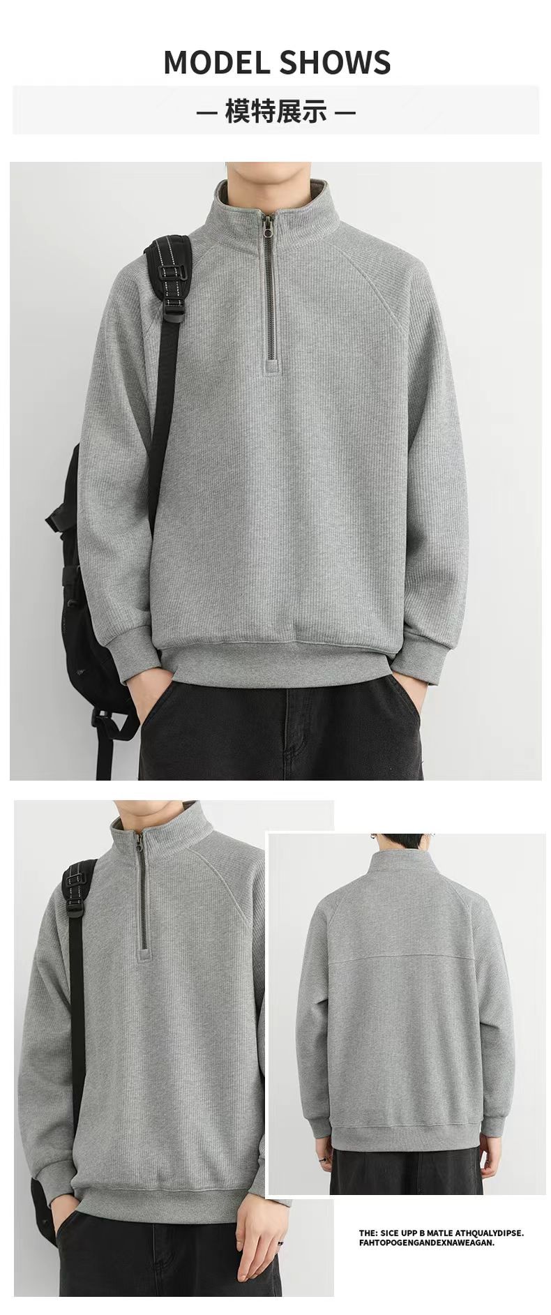 半拉链立领卫衣男士2025年冬季美式复古宽松纯色打底衫外穿休闲外