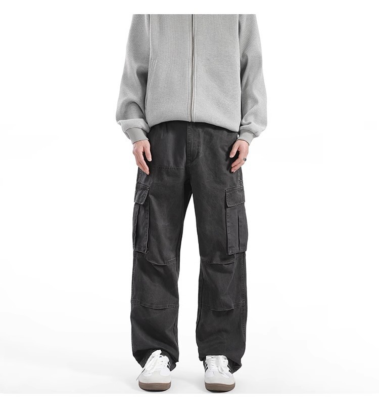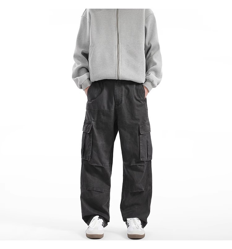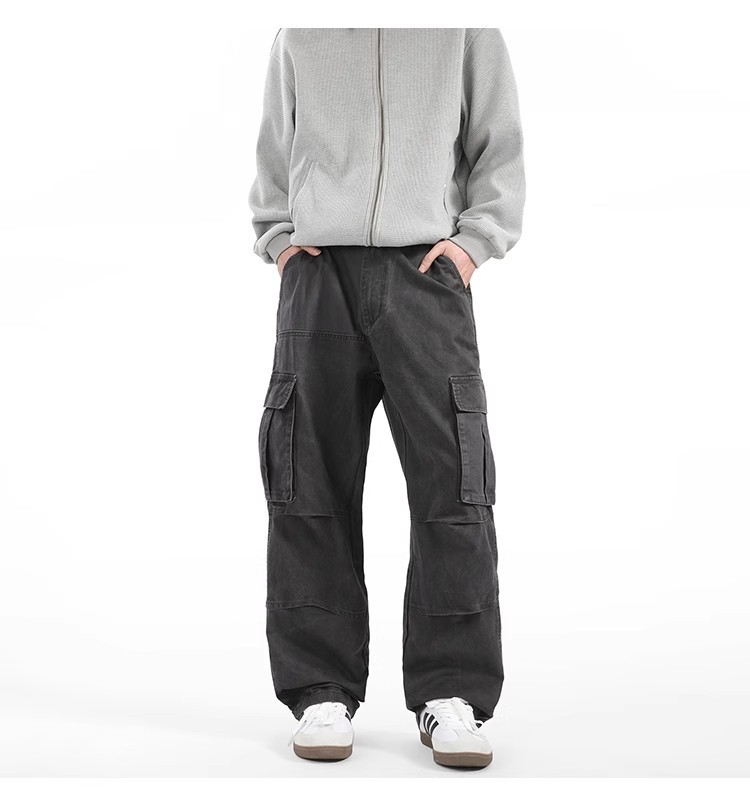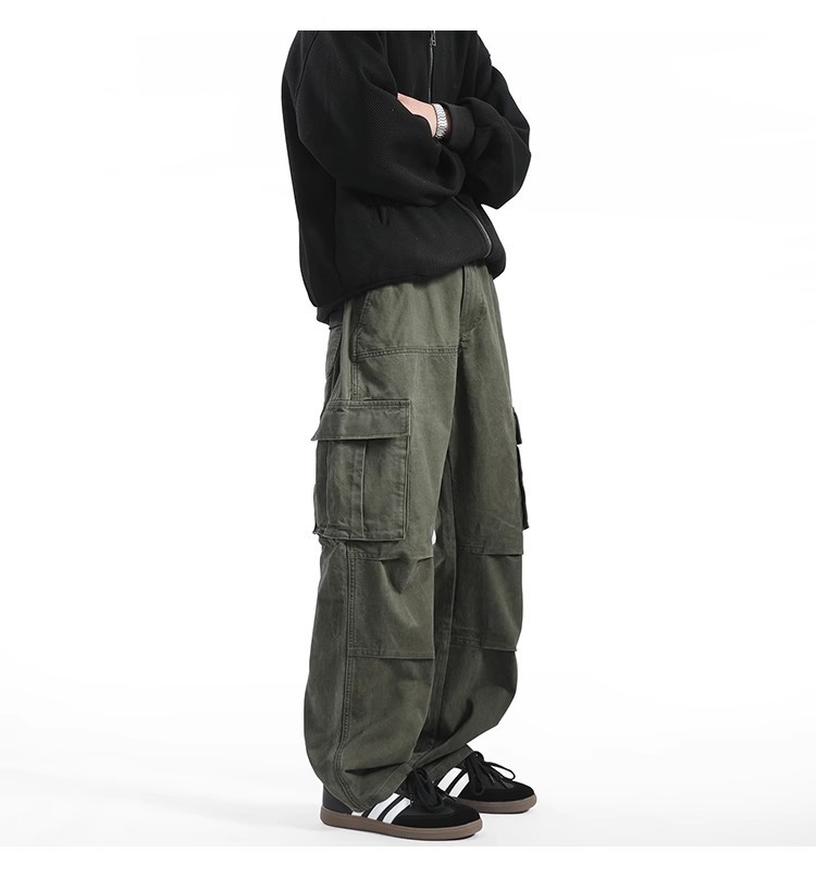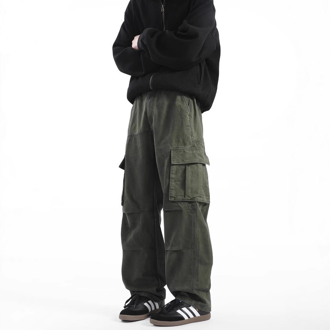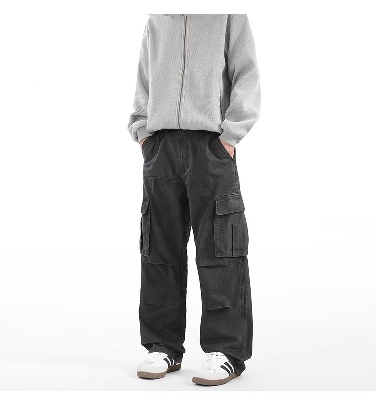 2025春秋新款工装裤男美式复古多口袋重磅痞帅宽松直筒休闲长裤子