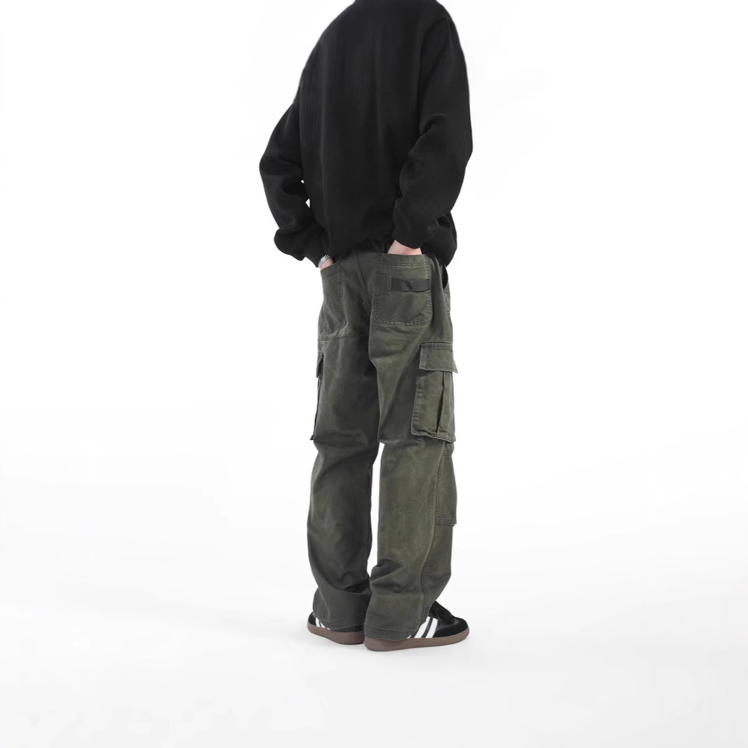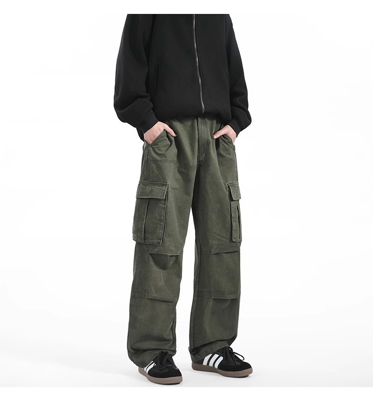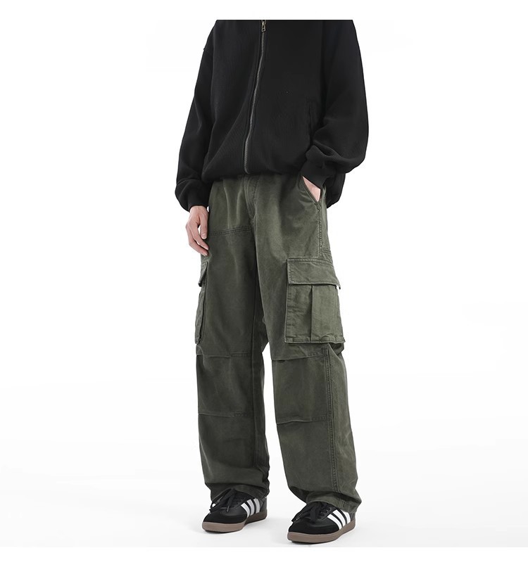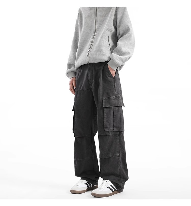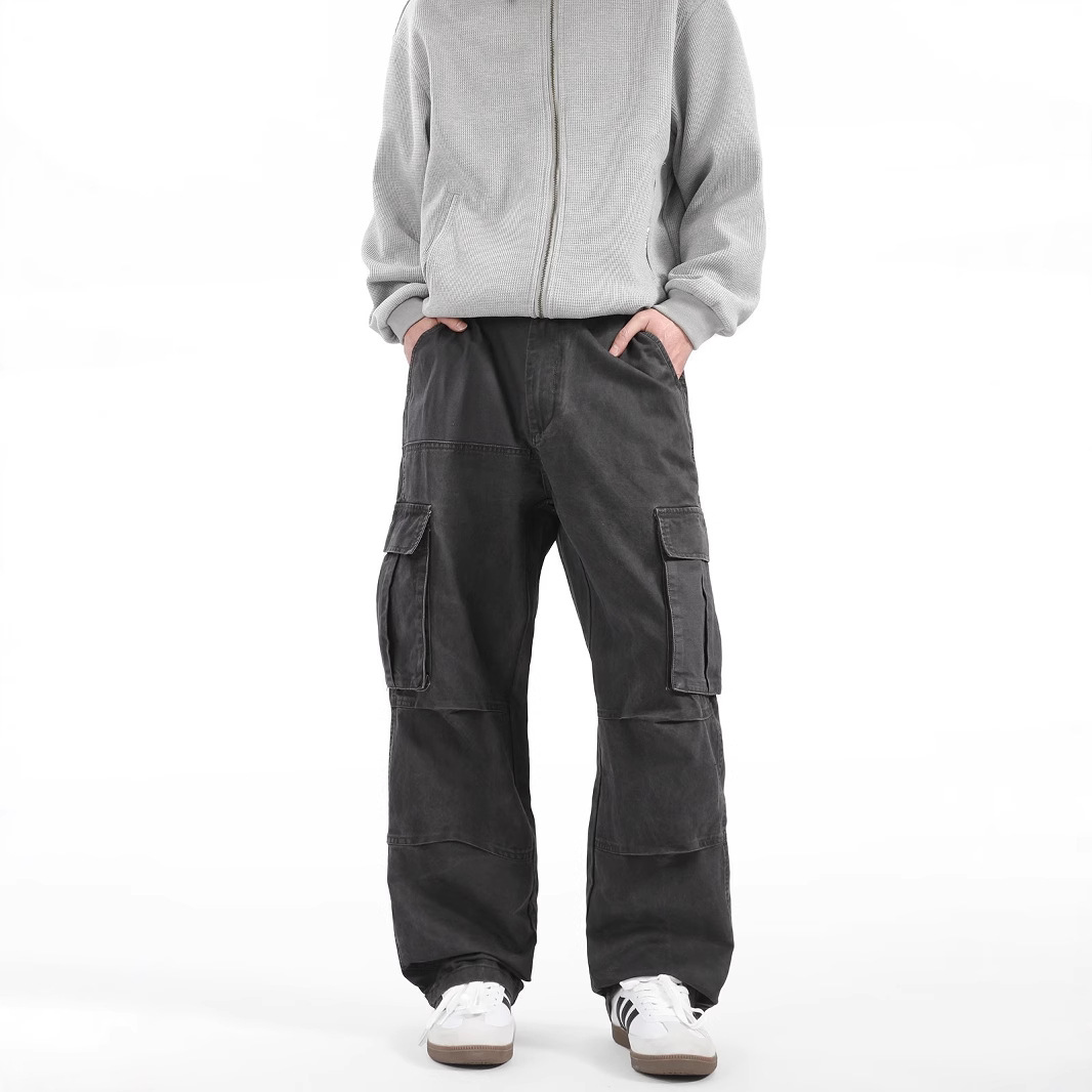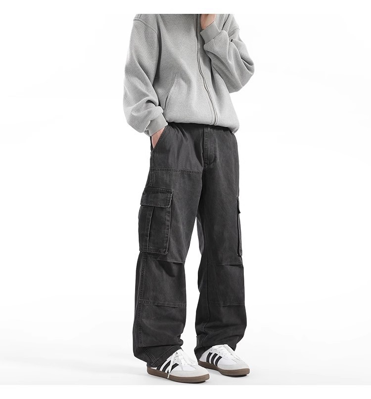 2025春秋新款工装裤男美式复古多口袋重磅痞帅宽松直筒休闲长裤子